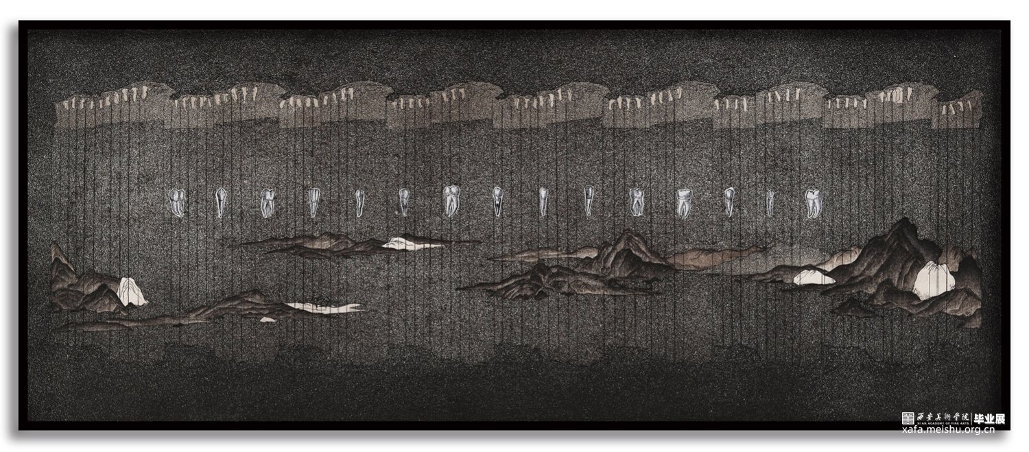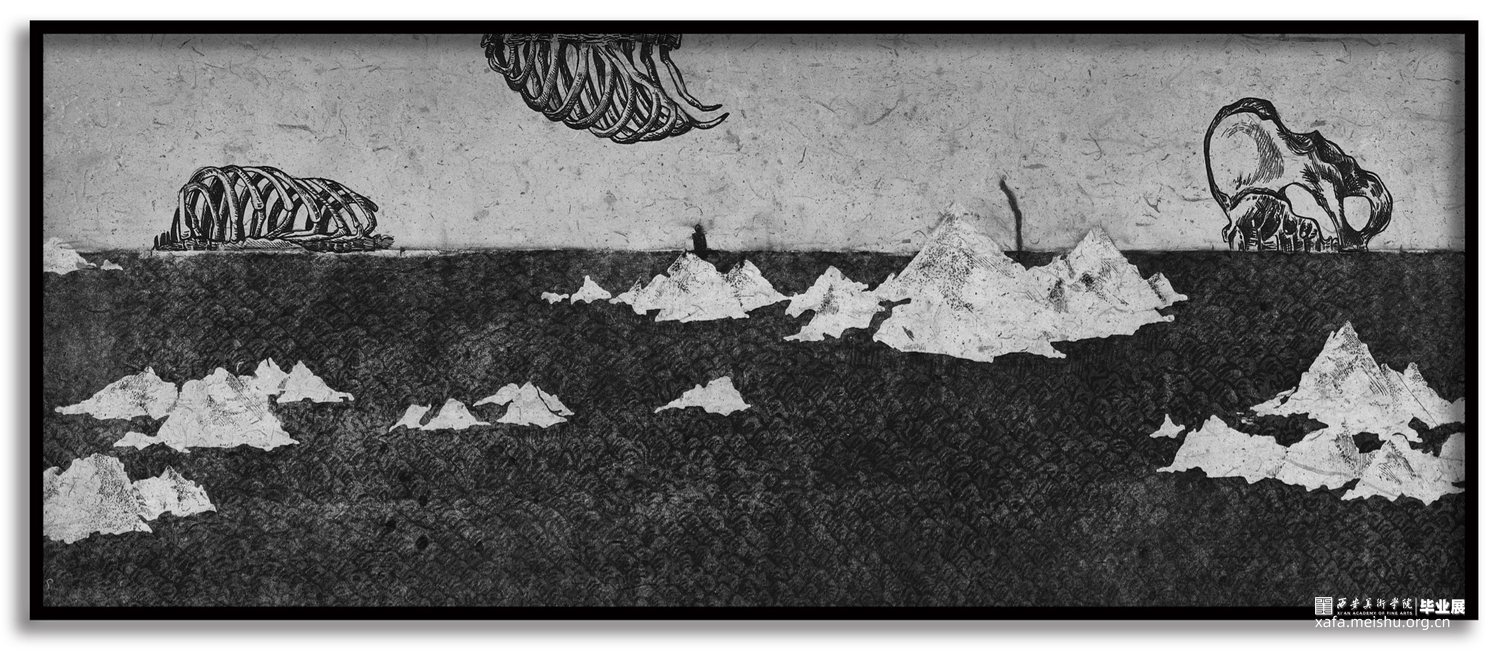 我去山中拍摄了许多照片,发现一些山石和土层堆砌形成的肌理,有一些是树枝组成的,有一些是土层堆砌的,有一些是流水冲刷的。在这些山石沉睡的生命中,这些印记都是时间带来的馈赠。所以我将它们做成了一本书籍,这本书籍的纸张都是我自己制作的,是将在山上捡到的纸张树叶做成纸浆,再捞出晾干,最后再做成这本书籍。