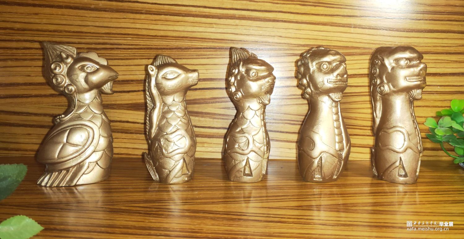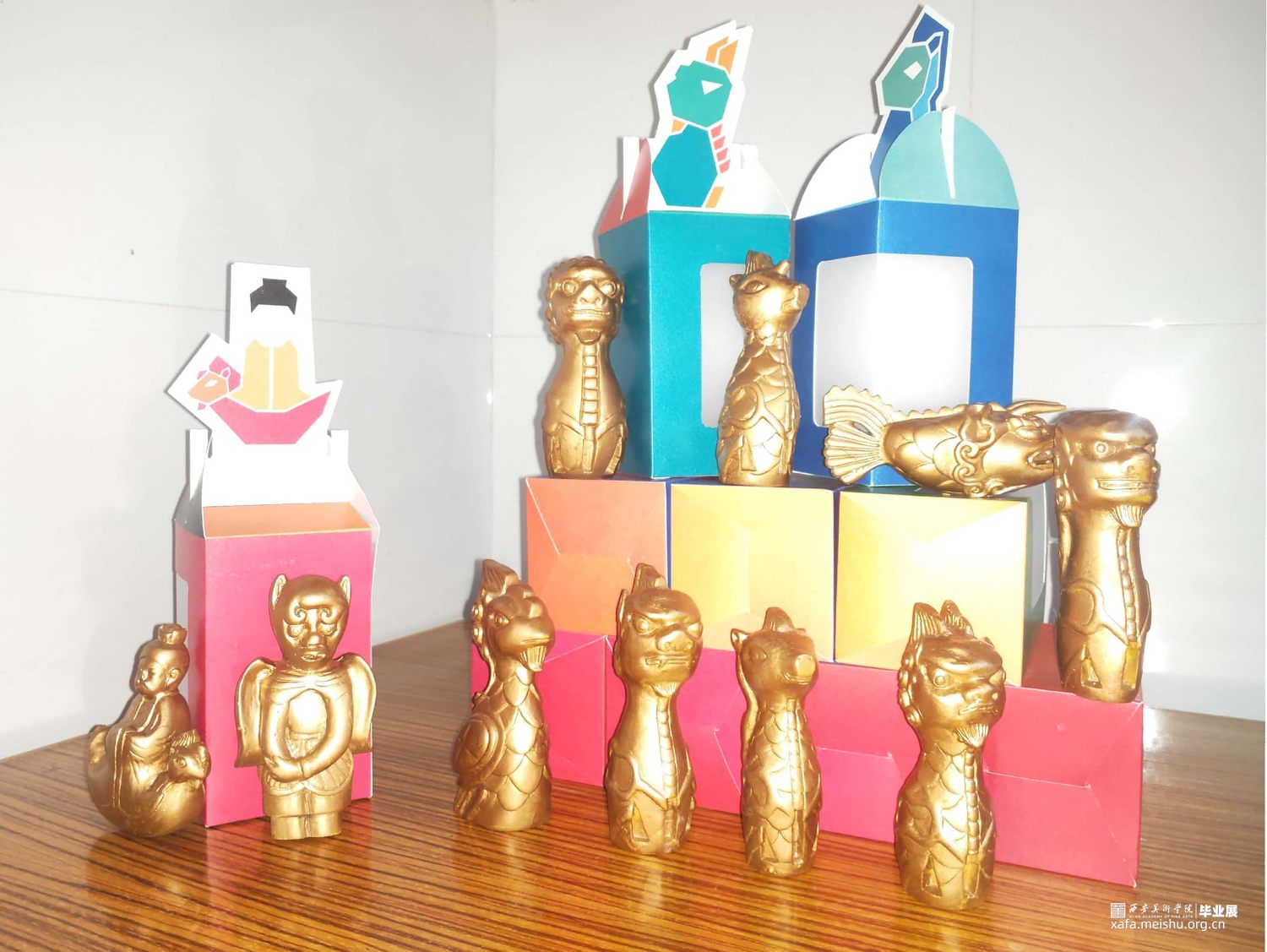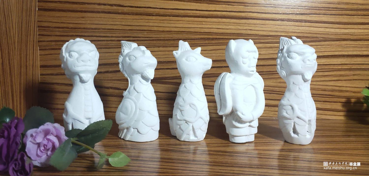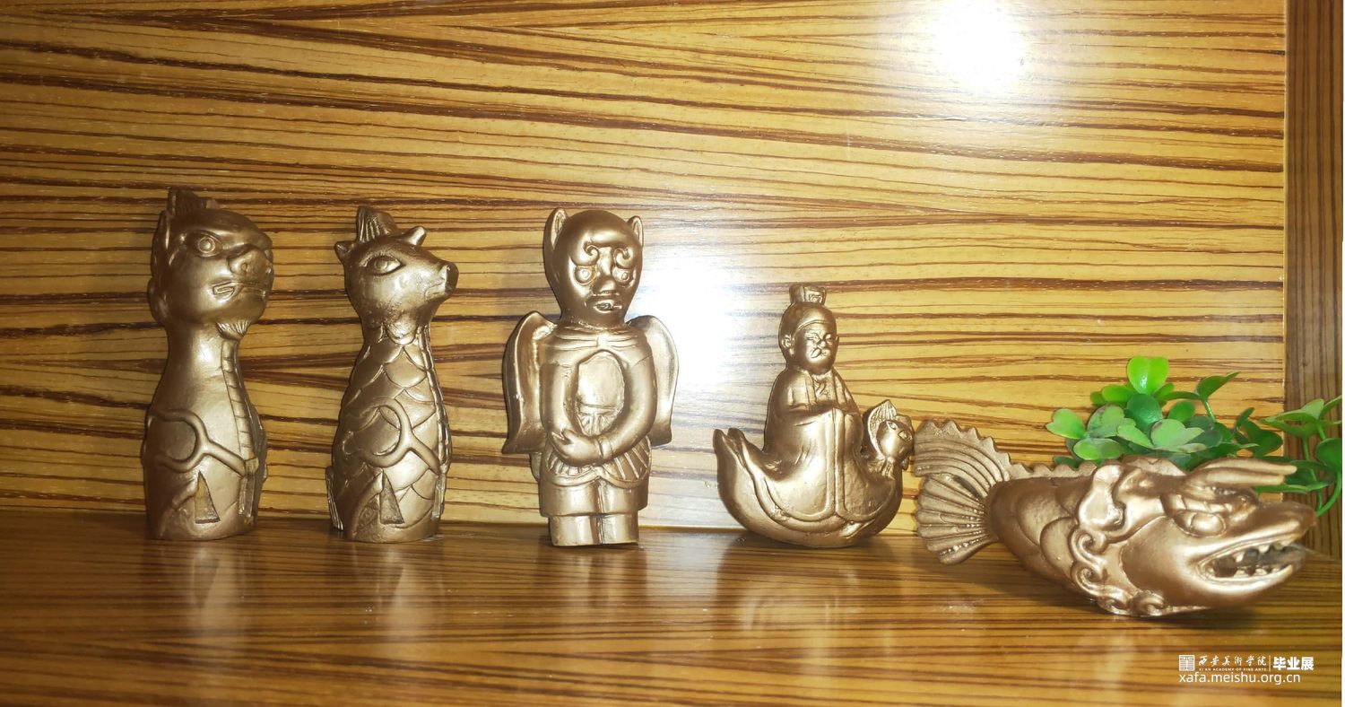 在创作中,不会完全遵照五脊六兽在人们认知中模样狰狞、呲牙咧嘴的形象,会有所美化,并夸大其作为屋脊兽特有的吉祥、装饰美和镇宅三重功能,挑选骑凤仙人、鸱吻(chiwen)、狮子、凤、海马、狻猊(suanni)、狎鱼、獬豸(xiezhi)、斗牛、行什十个神兽进行形象再设计,以十张神兽形象插画为设计主体展现其艺术魅力。