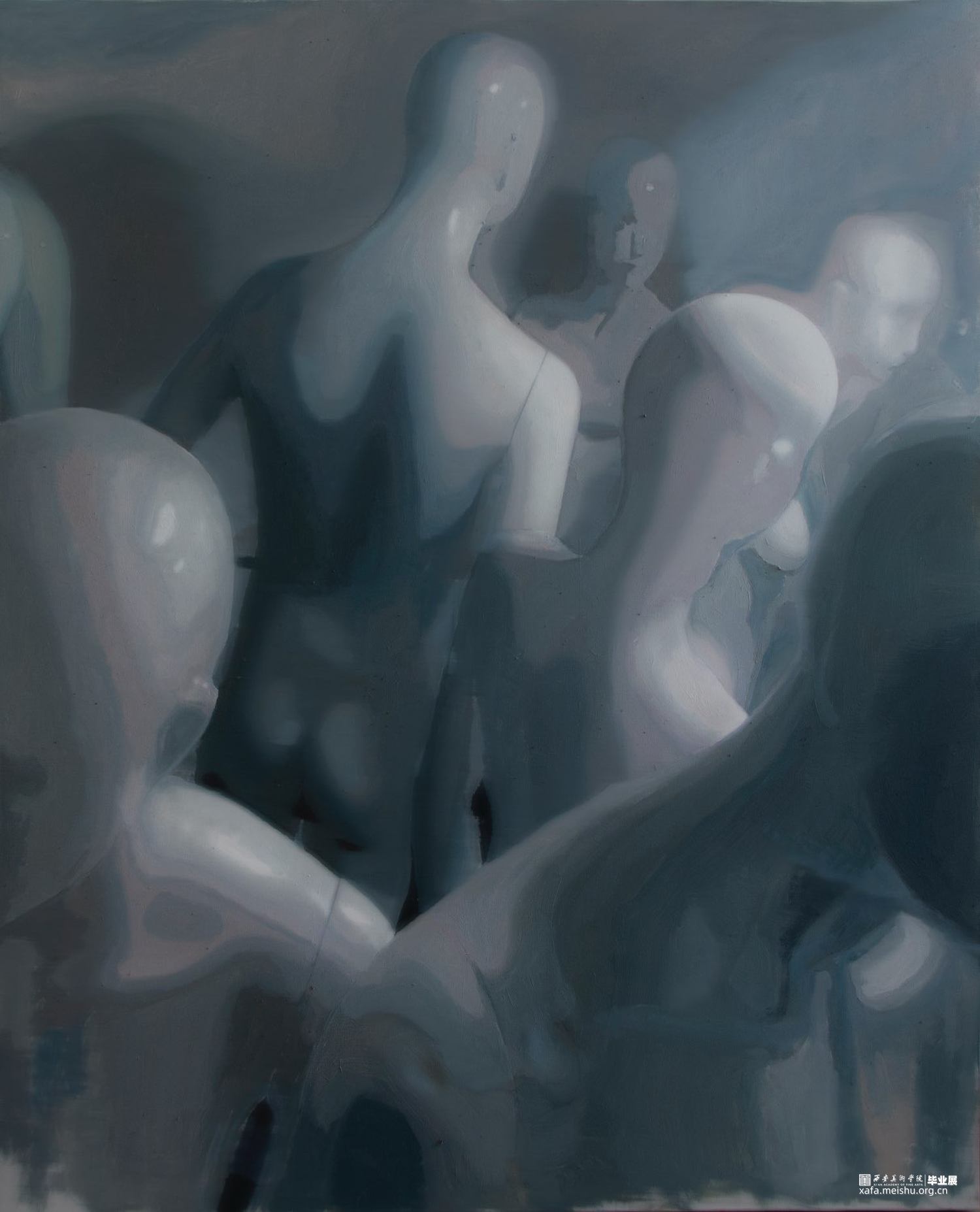 通过写实模特表现工业氛围,表现出群体低饱和处境。