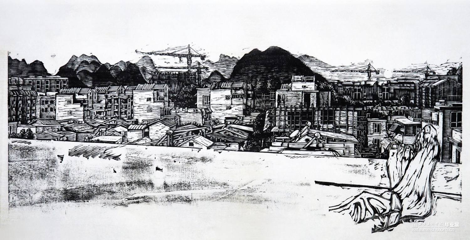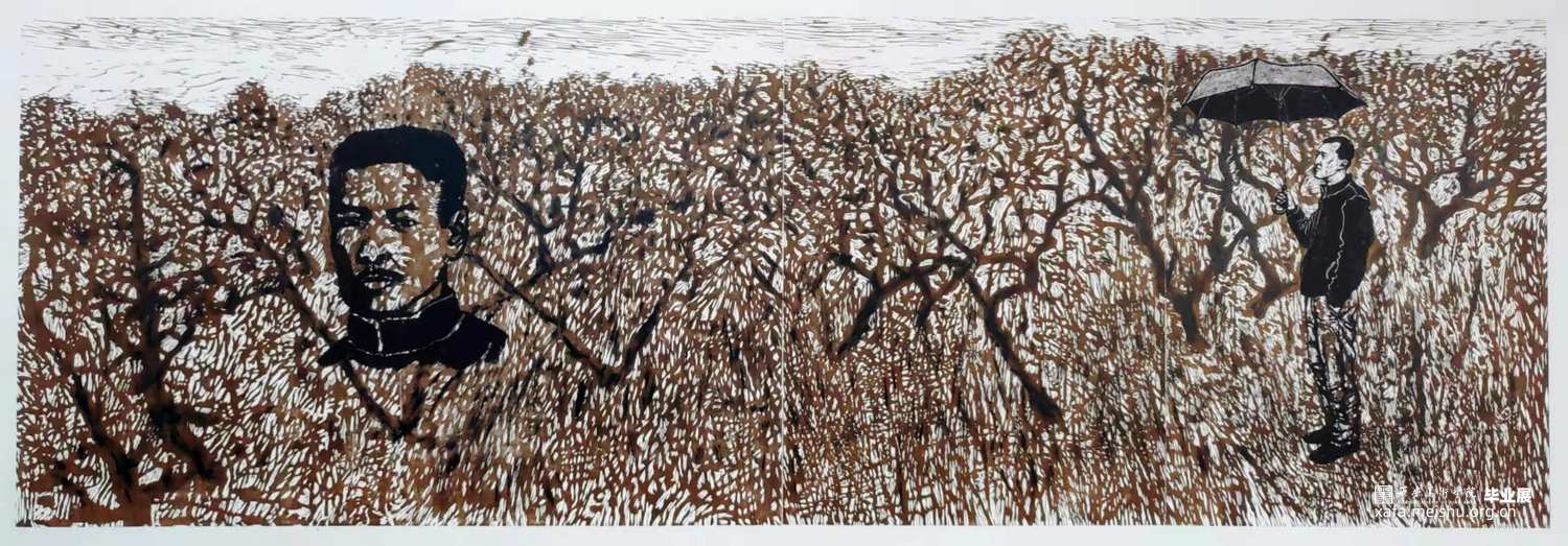 人在社会生活当中的生存处境与存在变化是艺术家取之不尽的创作源泉,艺术家也正是亲历这种变化的人。《风景中的肖像》系列作品试图通过木刻版画语言的直接性来表现人与自然的关系、人与社会的关系。作品通过对风景与人物符号化的处理,将人置身于特定的情境当中,试图揭示人对诗意栖息之地的理解与回应。