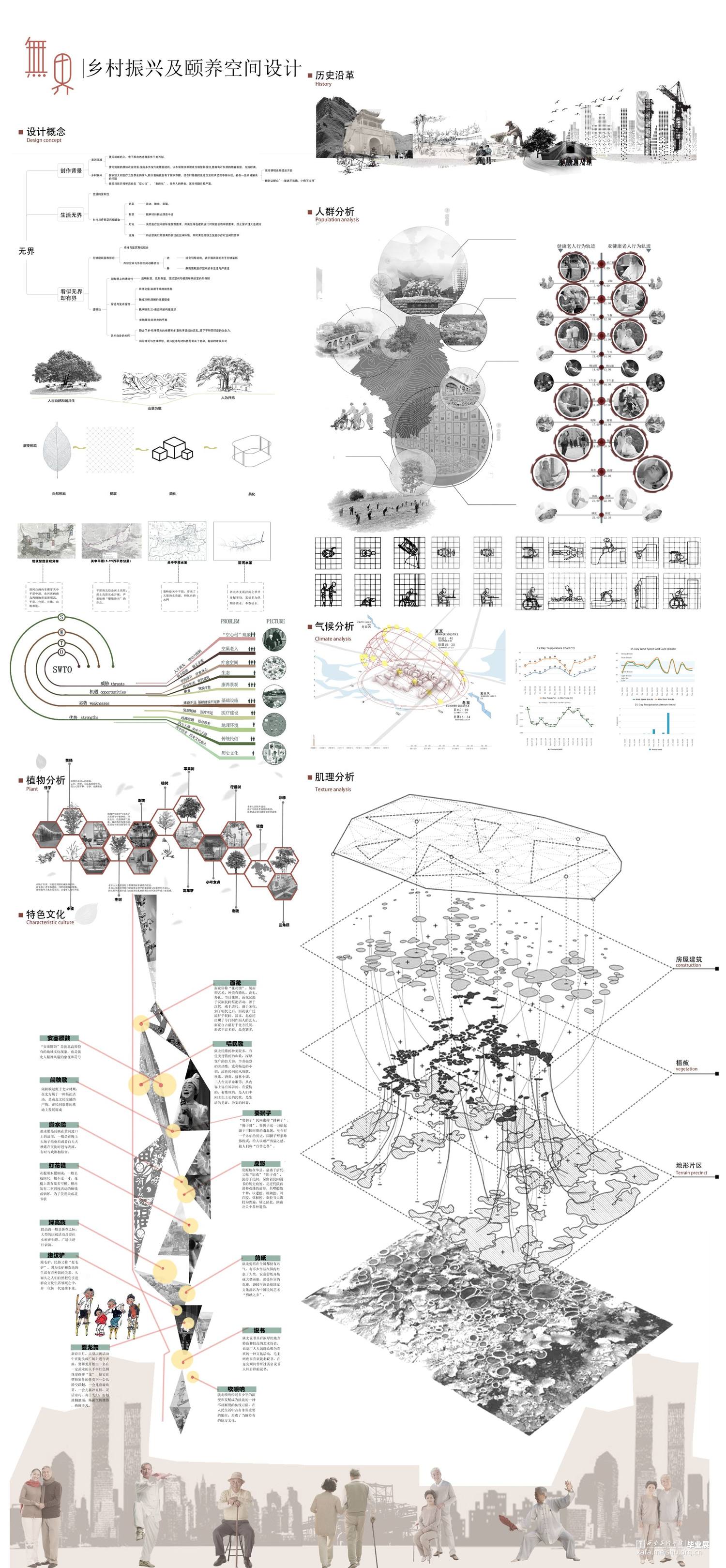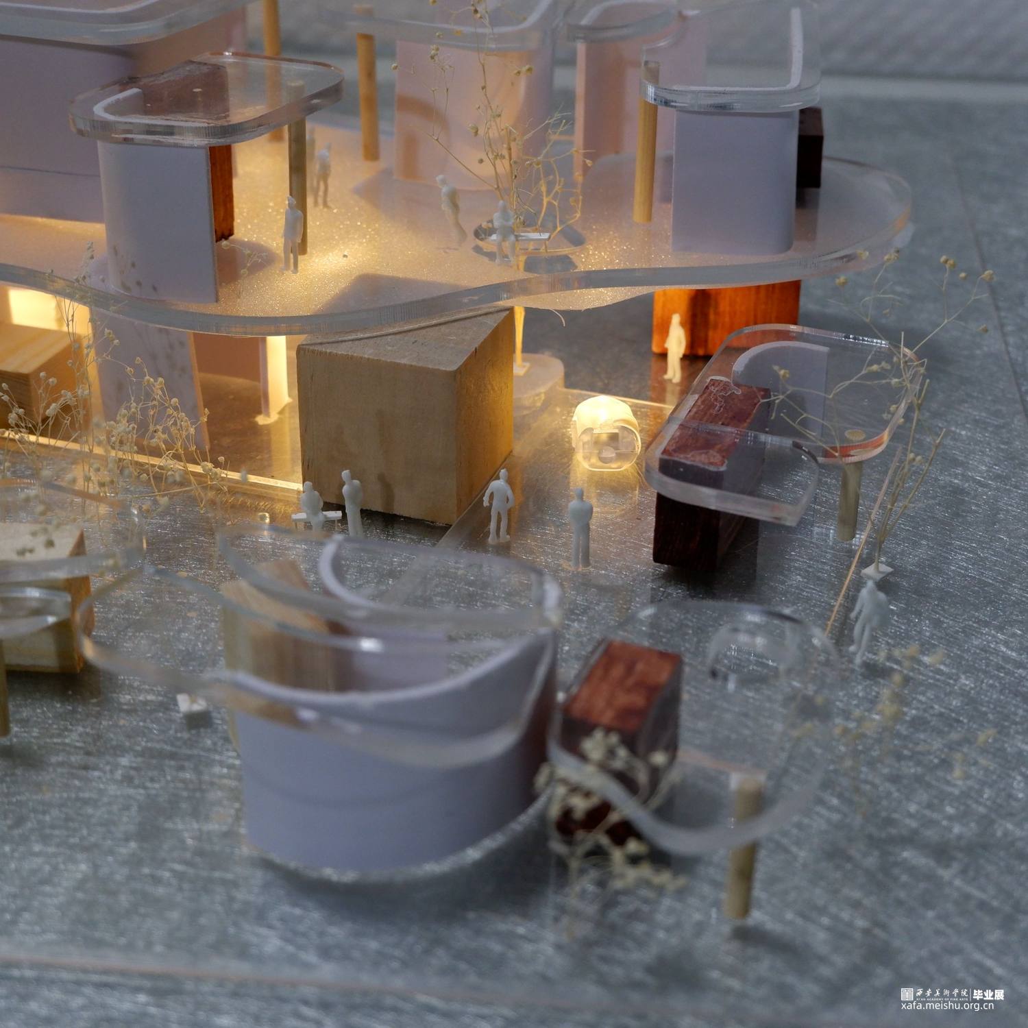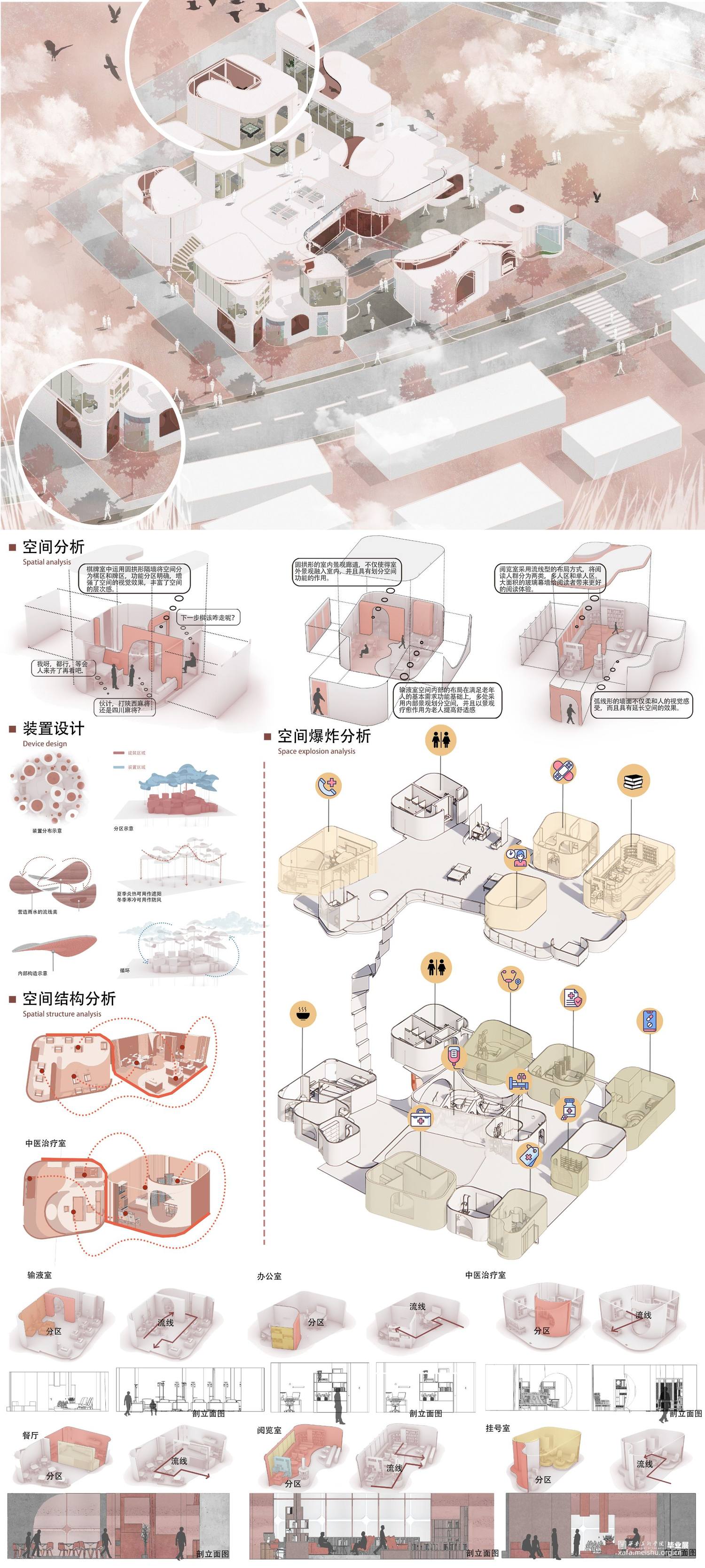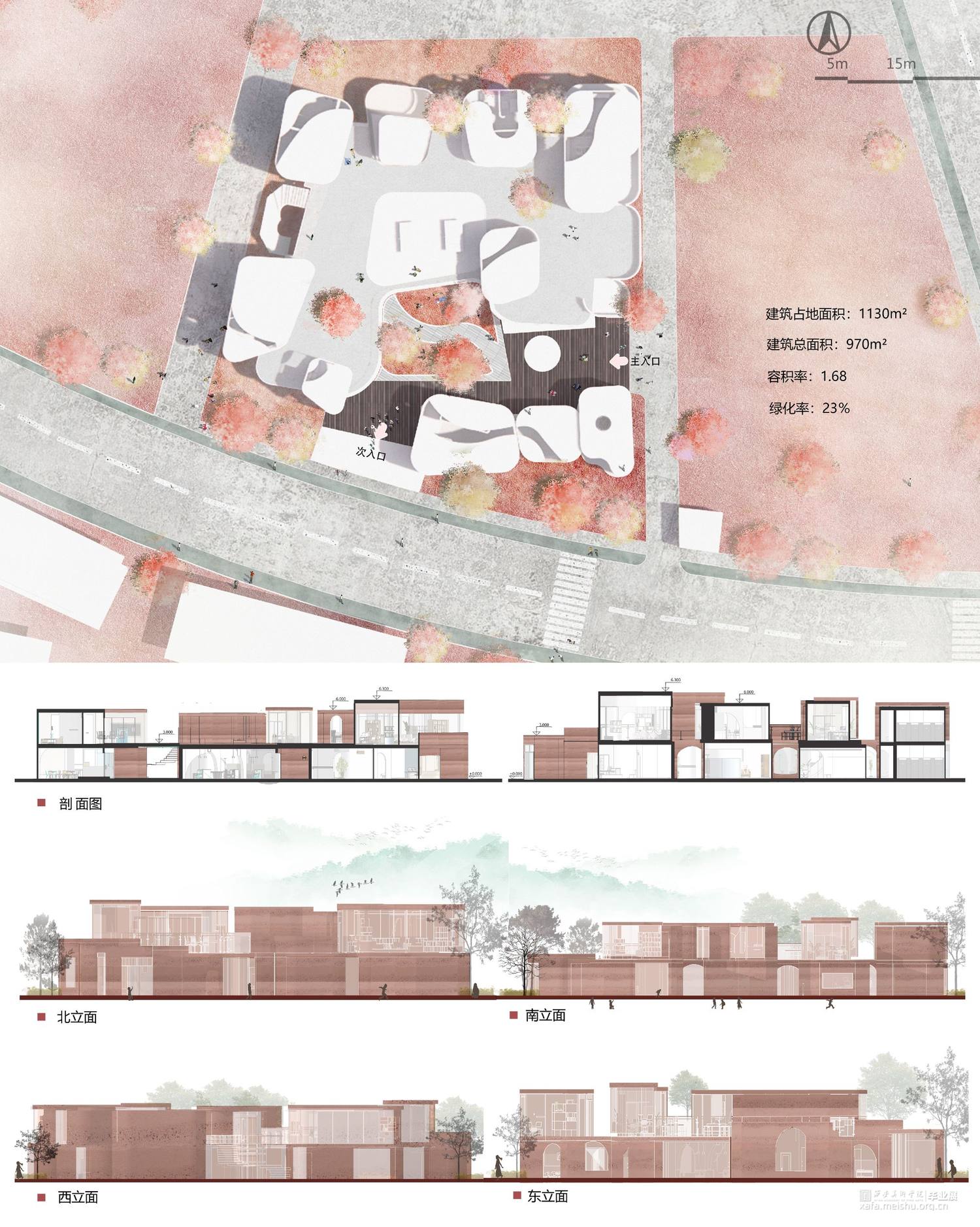 项目选址于陕西省延安市延川县永坪镇,立足乡村振兴以“无界”为主题,通过拆除时间、空间层面的边界,使空间试图赋予更多的乡村老人以接触便利。结合农村老年人生活环境及行为特征,创造出符合老人心理需求的人性化生活环境,为老人提供有归属感的空间。建筑主体将空间点状分布,拱形元素与方形结合,建筑体块因地制宜就地取材打造便利和谐新建筑。形成的拱形空间又有通透的效果来呼应无界的主题,剪切,重新组合,展现出不同的空间结构,为当地老人提供适应当地的环境,同时,适应西北窑洞地方特色,将周围环境与建筑结合形成一体化。将建筑,环境,生态三者相统一,形成新的环境空间相互穿套叠加。