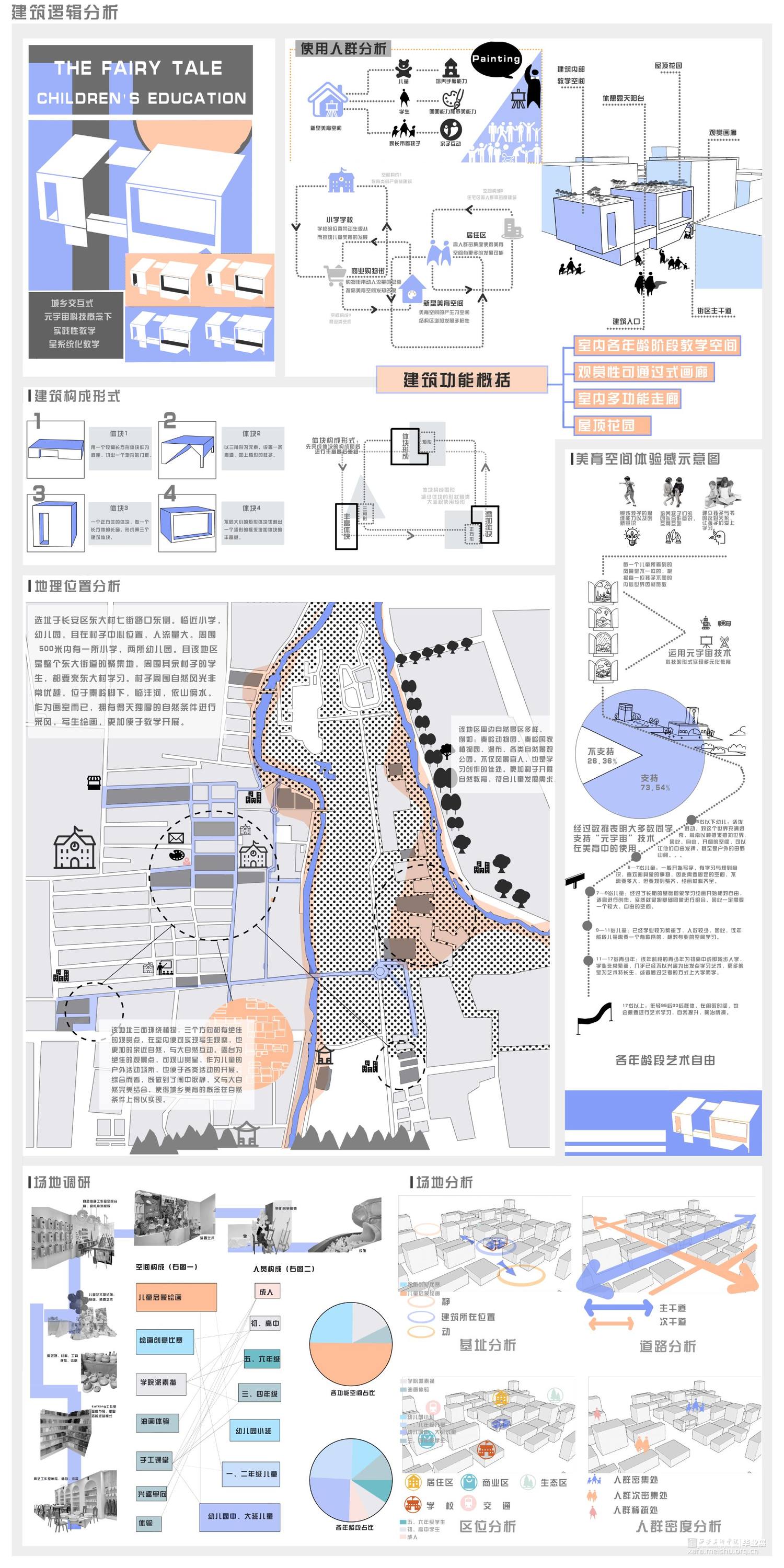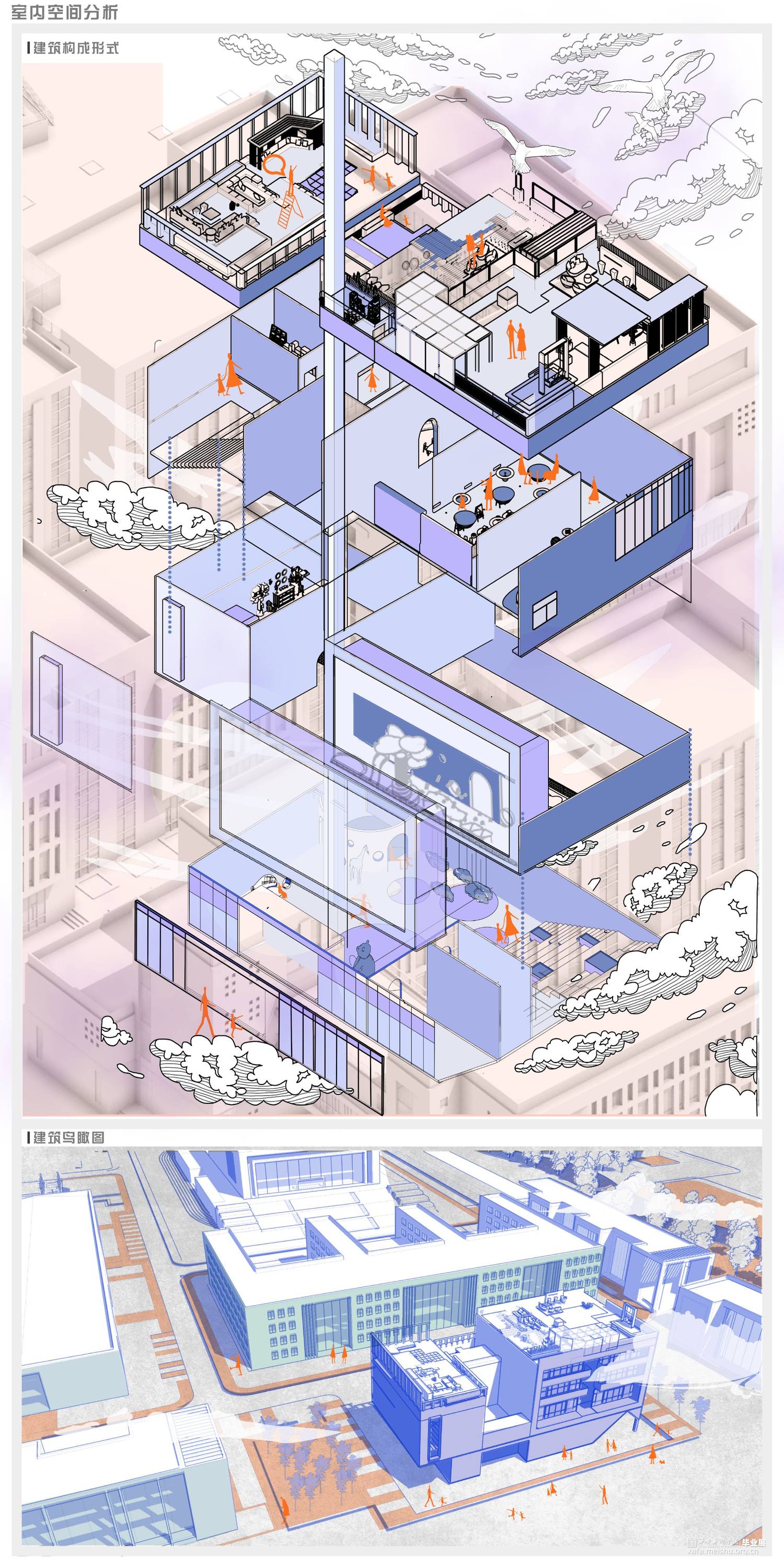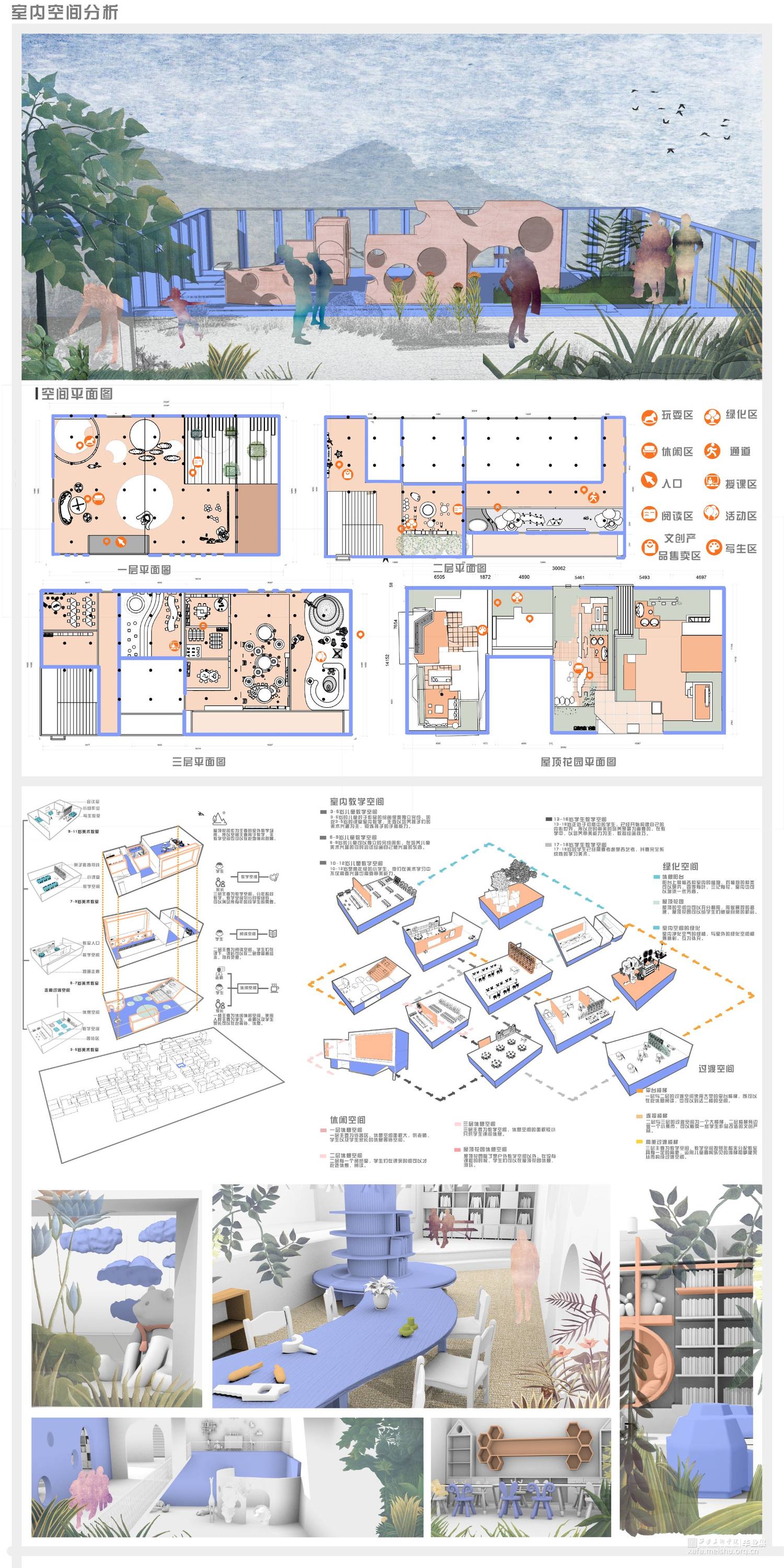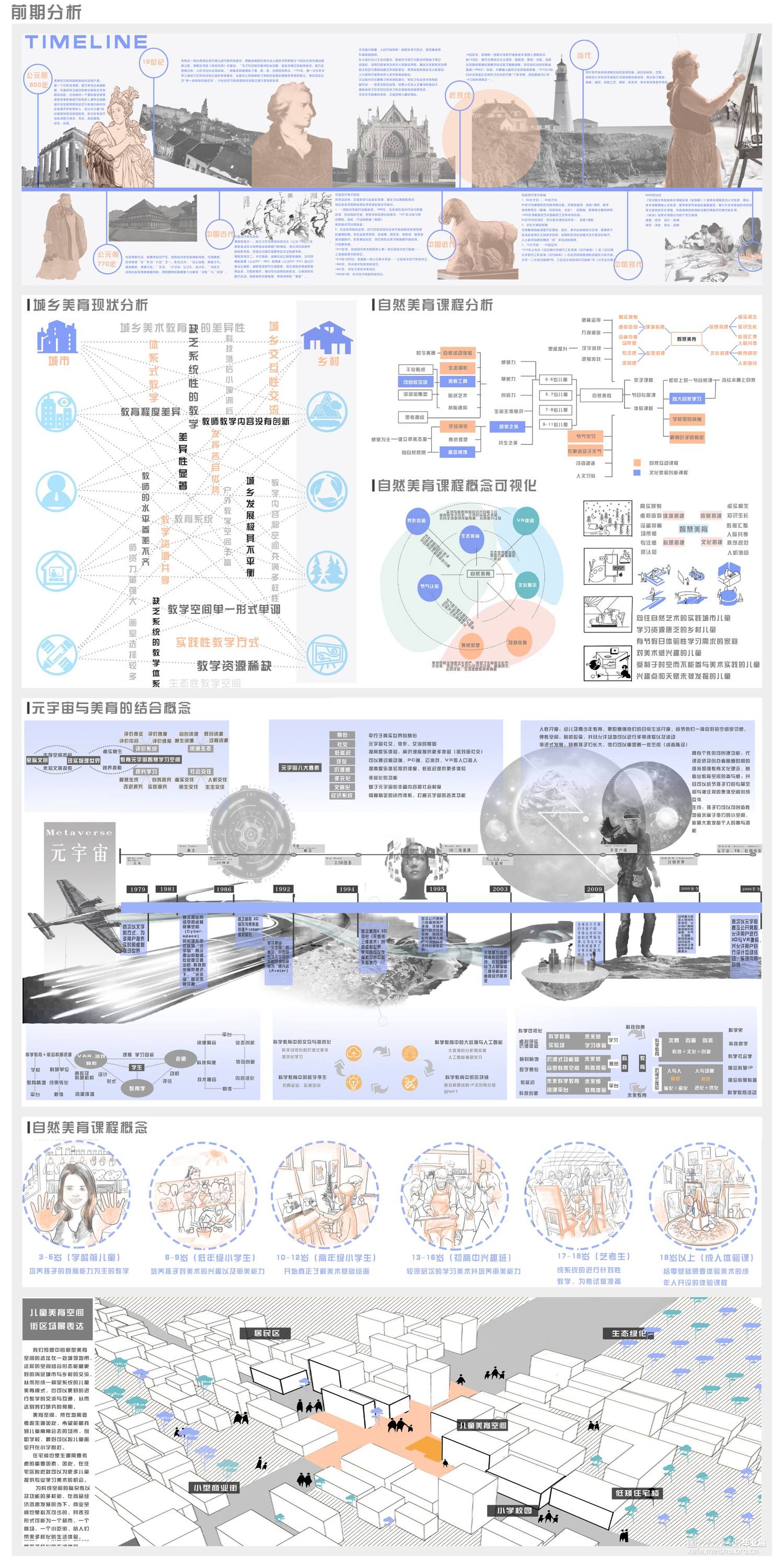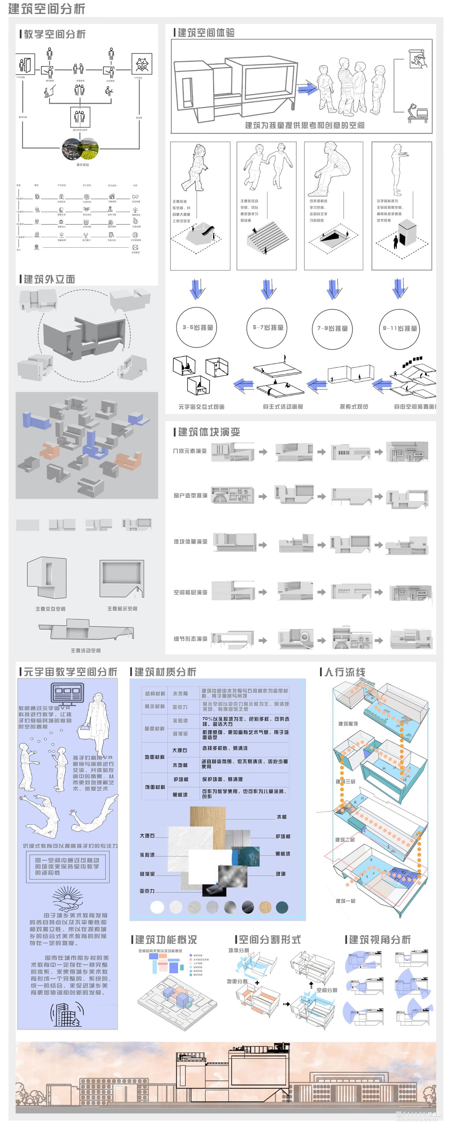 根据在城乡结合处一个单独建筑的实际改造项目,并汲取以往美育经验的逻辑,和对元宇宙空间下新型美育空间的期盼,运用与科技结合的改造手段,形成一种新型美育教学逻辑并以此进行对建筑内部空间与外部场地的改造,为新型空间赋予新的功能,并且为城乡有机结合提供一份思路。设计围绕虚拟现实科技下美育空间的新可能是什么?空间元素如何搭建?新型美育空间的意义?等方面展开,力求在承接已有的旧美育空间的基础上,打造出新型现代化的美育场所的设计。