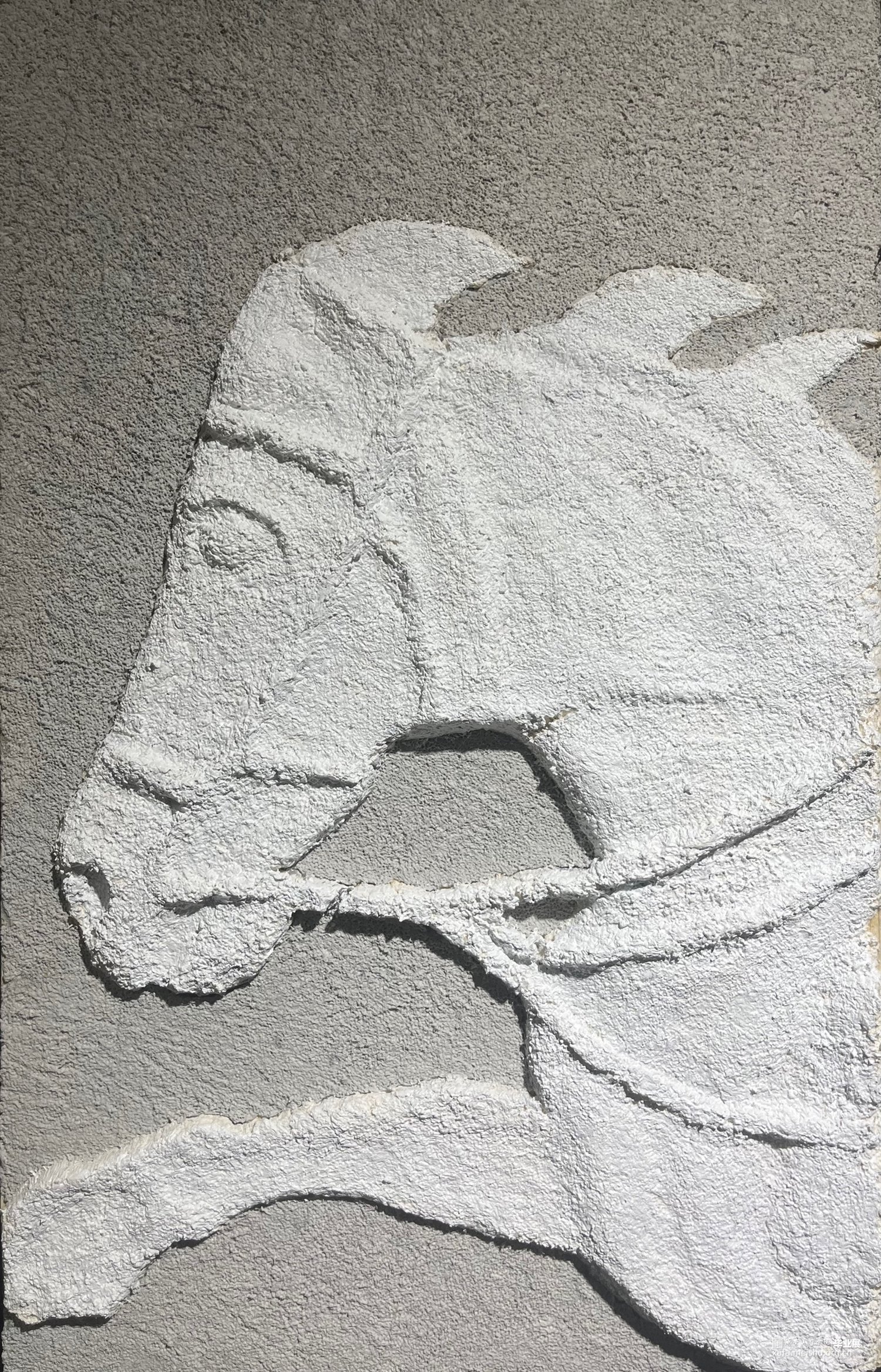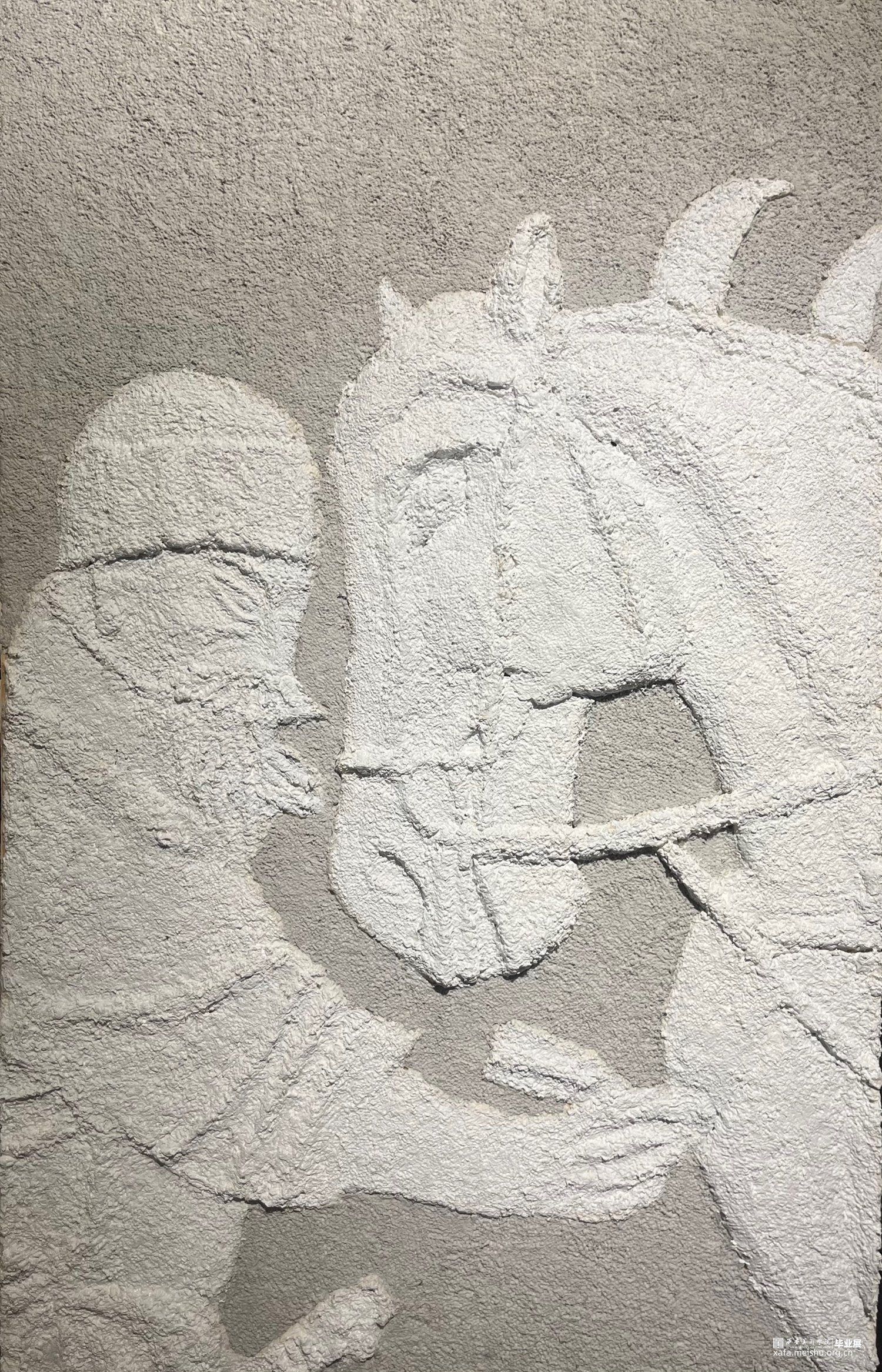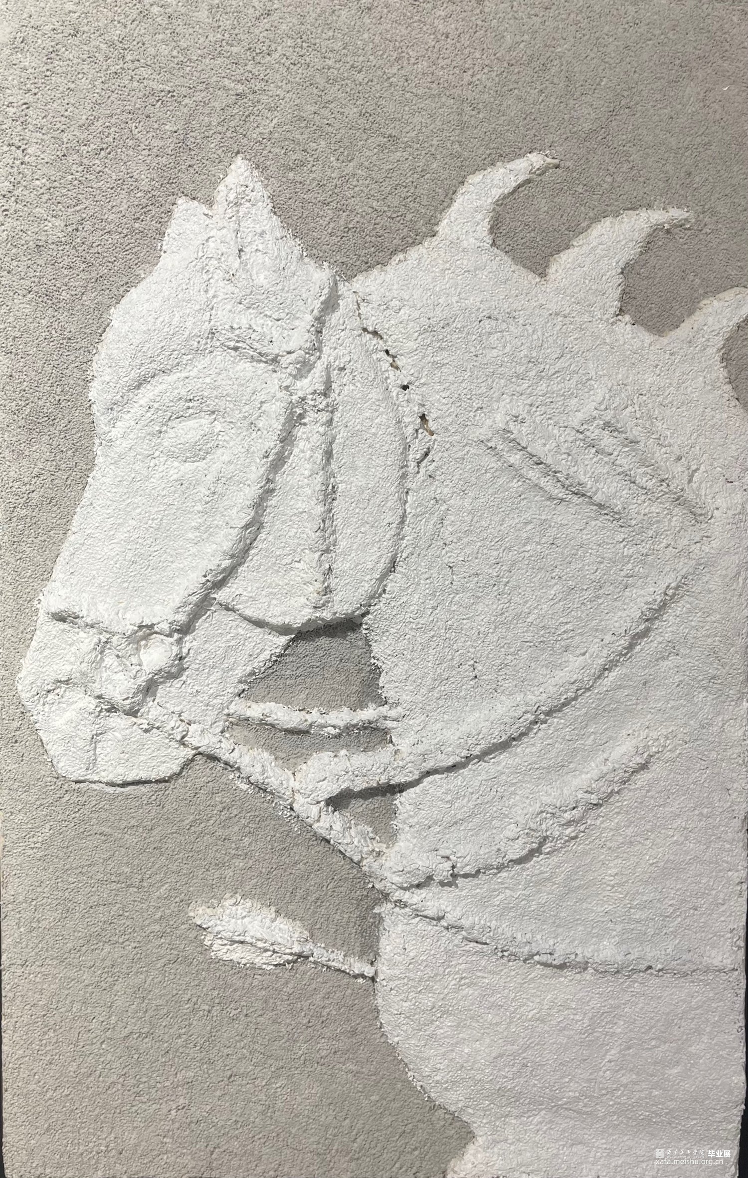 作品以唐太宗李世民的昭陵六骏为题材,运用简洁浑厚的线条,力求打造栩栩如生的造型,高度逼真地还原六骏昔年的风采。在马儿一静一动的动静结合中,将静若处子动若脱兔的风貌给体现出。运用纸本纸浆,以白色为主色调,烘托出骏马的高洁与风神雅逸,带领观众们仿佛身临其境,去细细品味这里中的毫妙之巅。