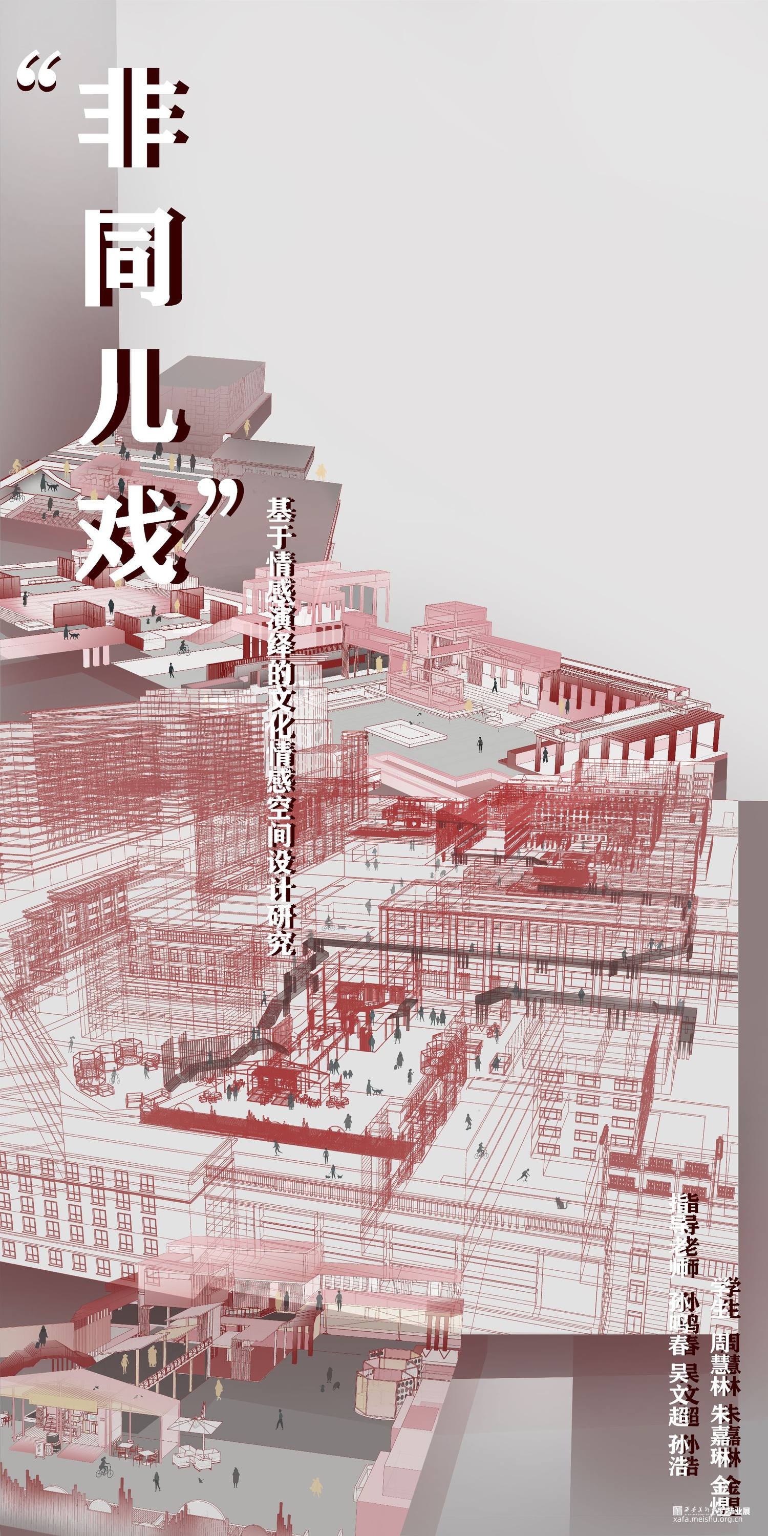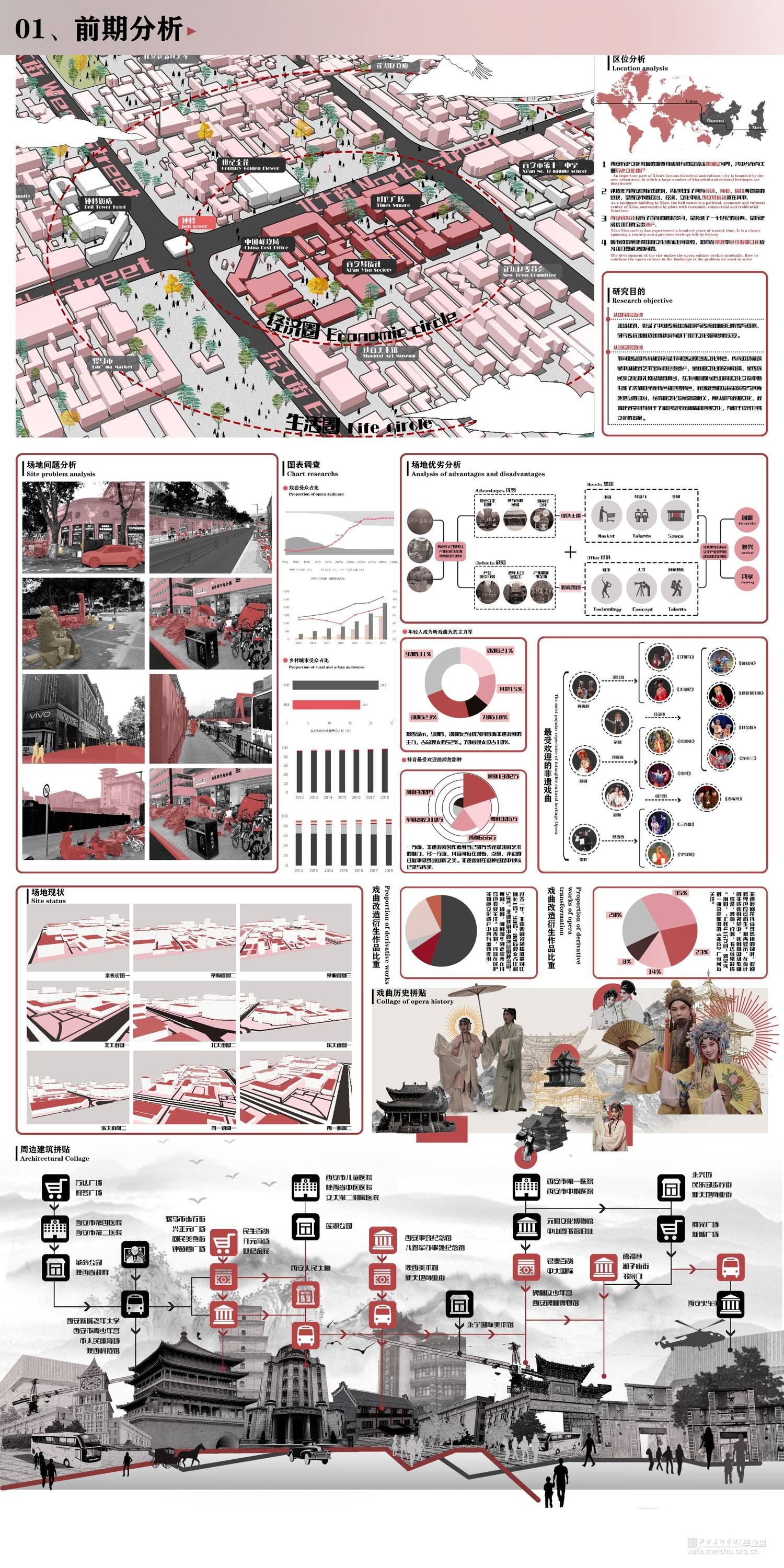 从秦腔的传统文化复兴保护角度进行考虑,进行西安易俗社历史街区改造设计。将戏曲中的五感运用到场地设计中,以点的方式在场地里进行设计,以线的方式将其串联从而激活整个场地。将戏曲元素星星点点的点缀在场地中,将戏曲精神文化融入特色建筑中,以点向面,从局部到全面的展现戏曲精神 ,以期在钟楼地段展现出自己的特色,真正做到以特色文化激活场地活力,带动地区消费。同时更好的宣扬中国传统戏曲文化,让传统文化与新时代结合更进一步,在新的时期迸发出新的活力,带领新一代的年轻人认识中国特色。