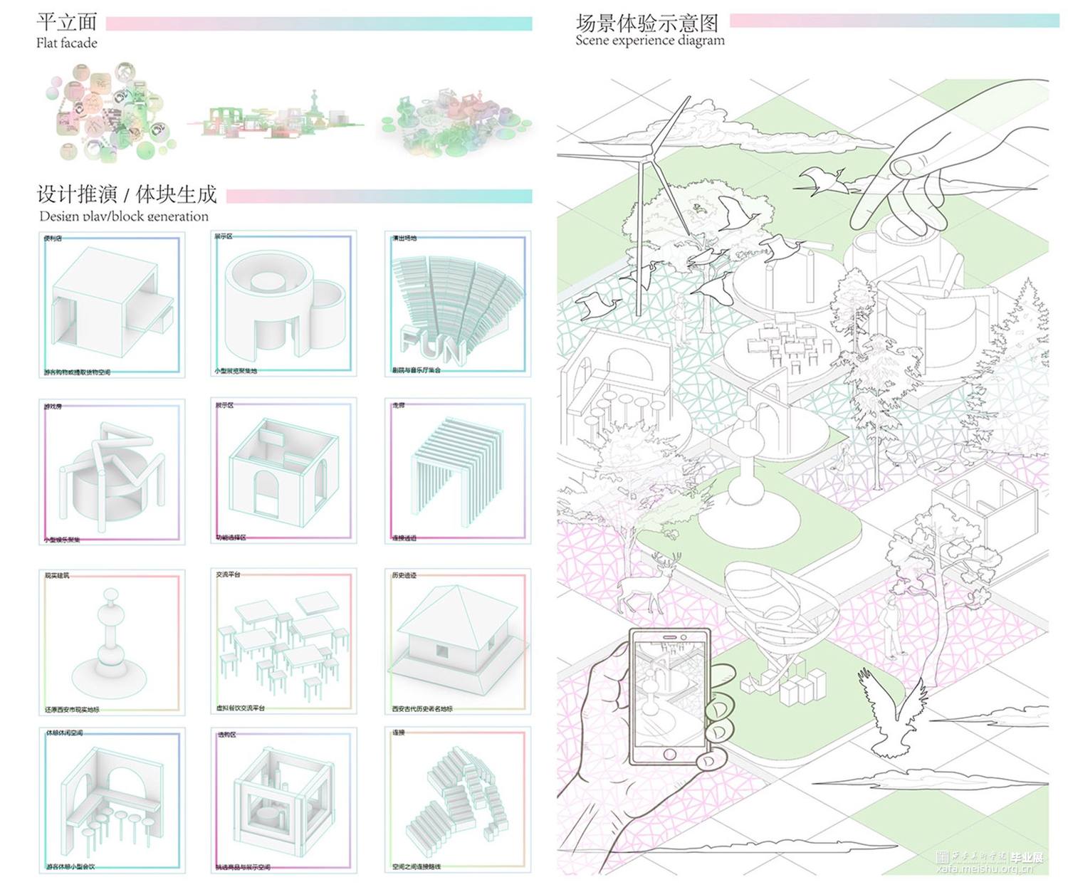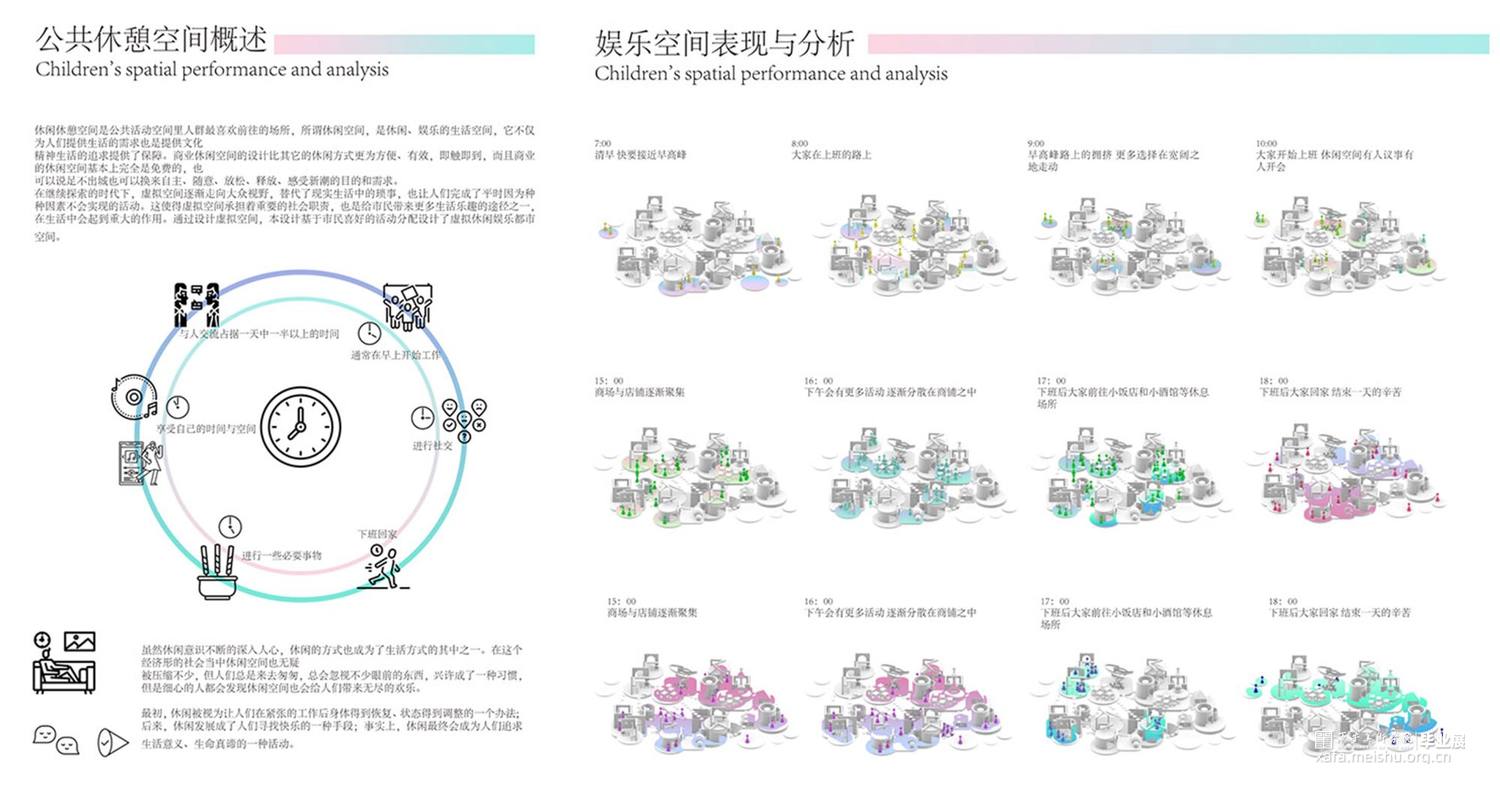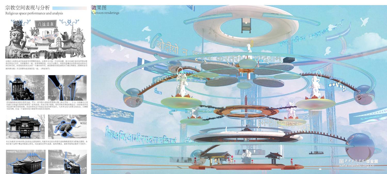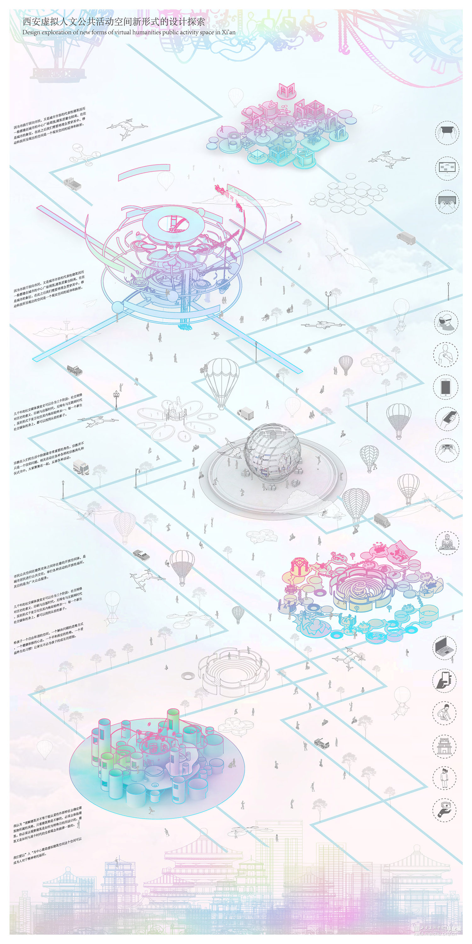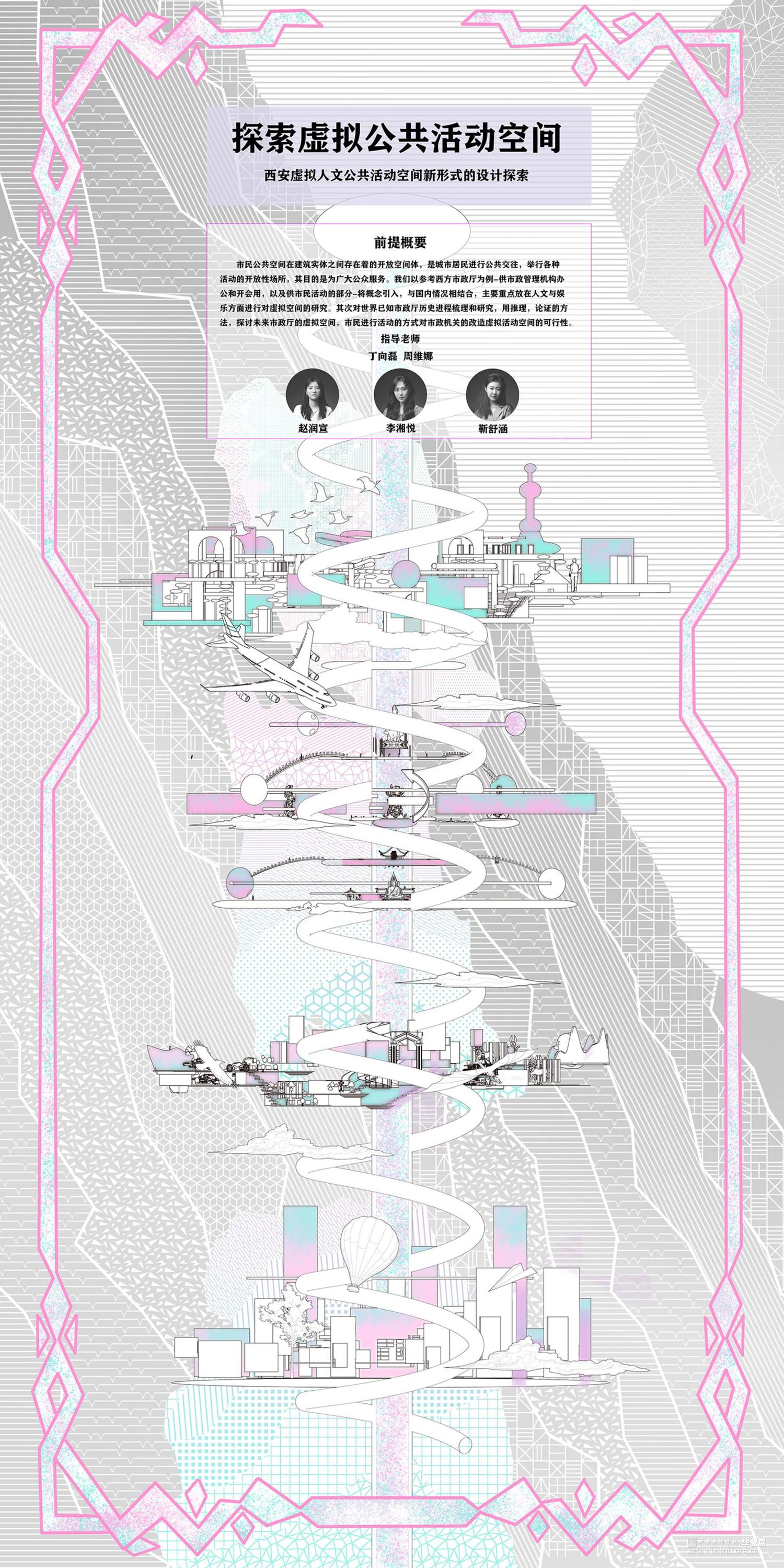 我们通过展现四个方向:宗教空间、信息社交空间、儿童活动空间、娱乐活动空间,来表达人与空间、与社会的紧密关系,结合西安城市特点设计具有城市独立个性的沉浸式虚拟体验空间,为市民定制新型交流场所,联系日常活动、社会文化活动、节日庆典等现实公共活动和虚拟公共空间进行同频设计。在调研过程中,通过搜寻各种人文公共空间的基本效用与试用频率,我们了解到公共活动空间对人们正常生活的重要影响;同时在“元宇宙”概念的兴起下,浅析将人文传统空间引入虚拟世界的必要性。
