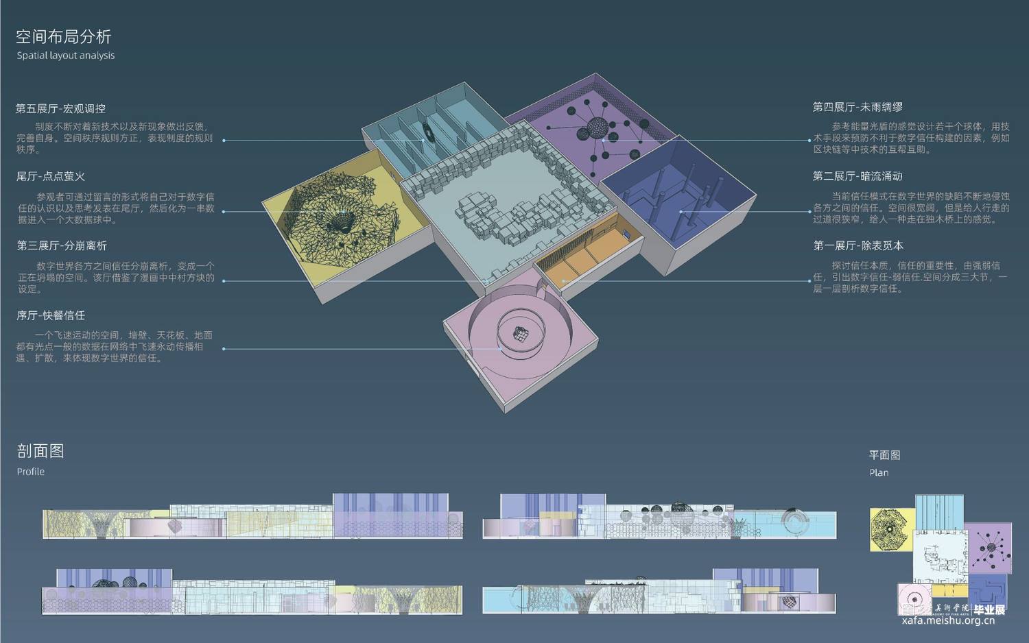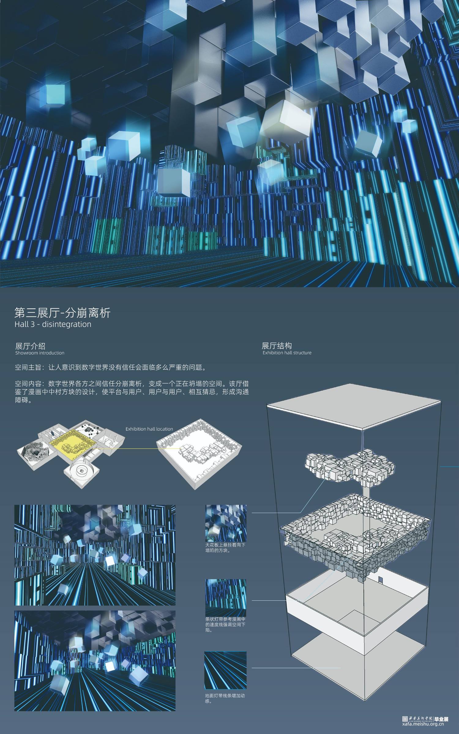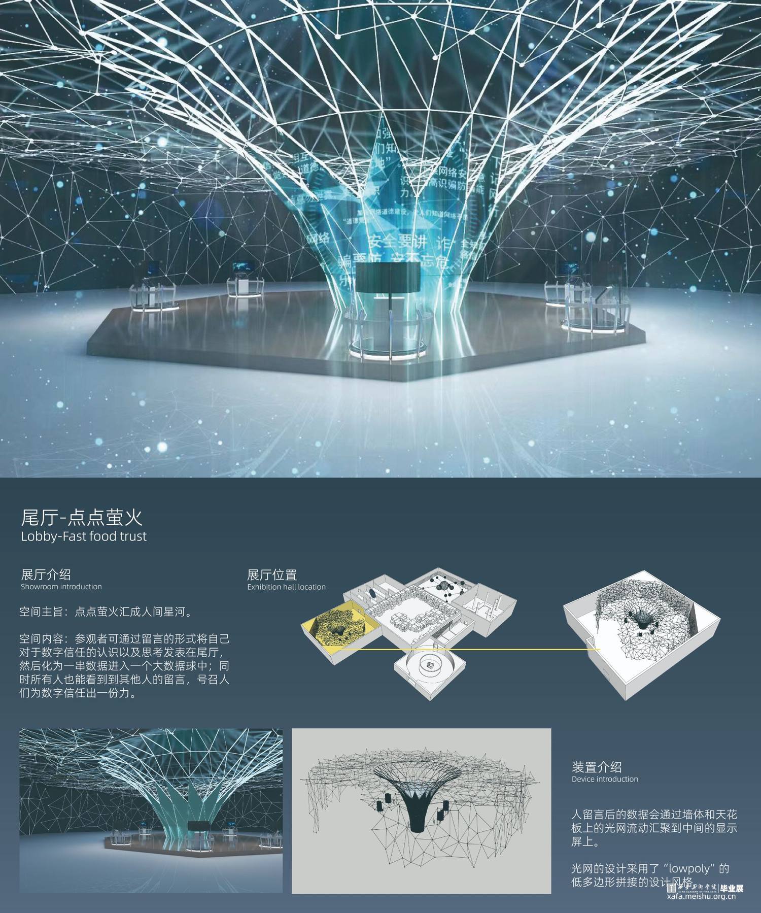 序厅-快餐信任、第一展厅-除表觅本、第二展厅-暗流涌动 、第三展厅-分崩离析、第四展厅-未雨绸缪、第五展厅-宏观调控、尾厅-点点萤火。