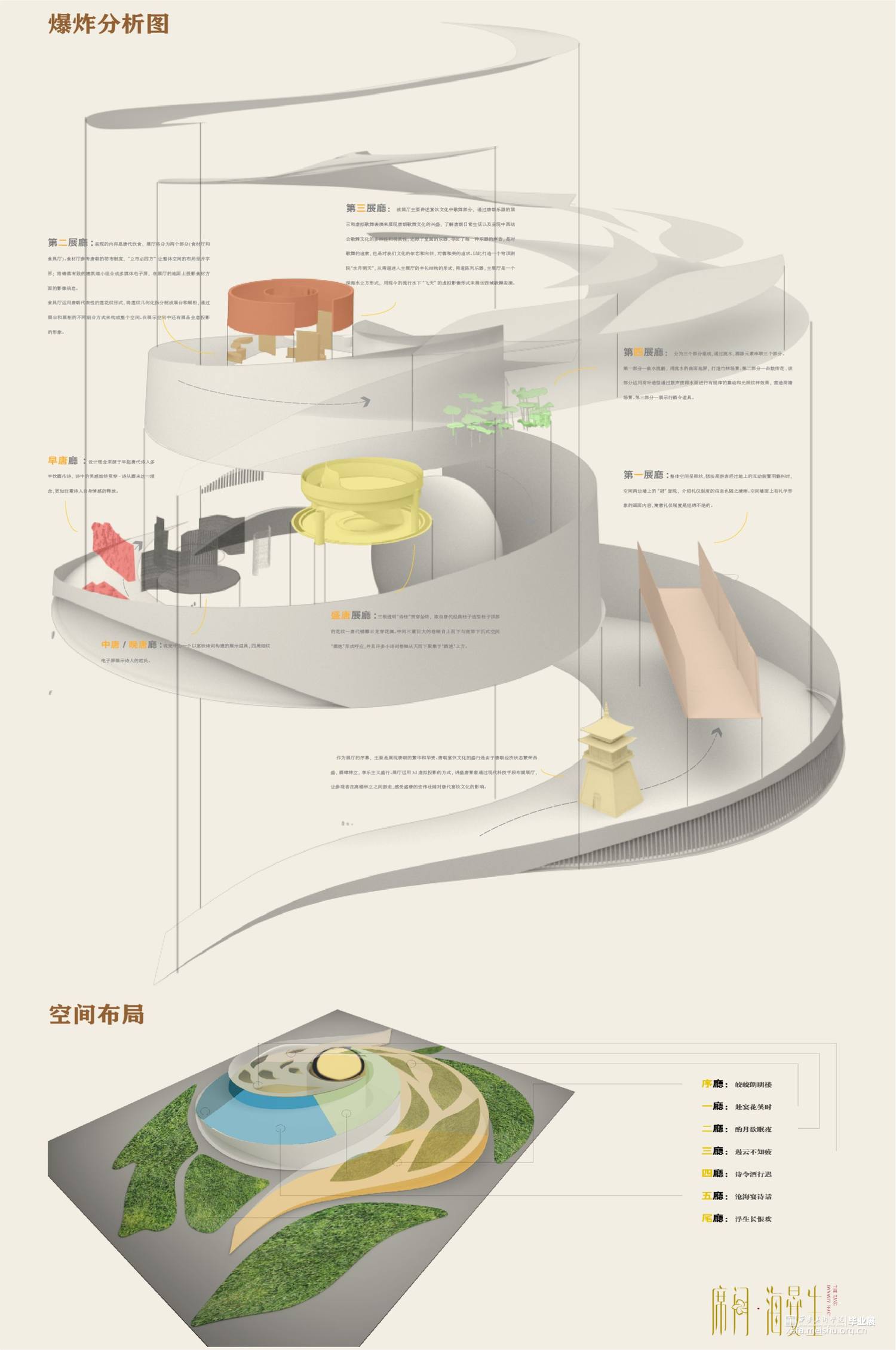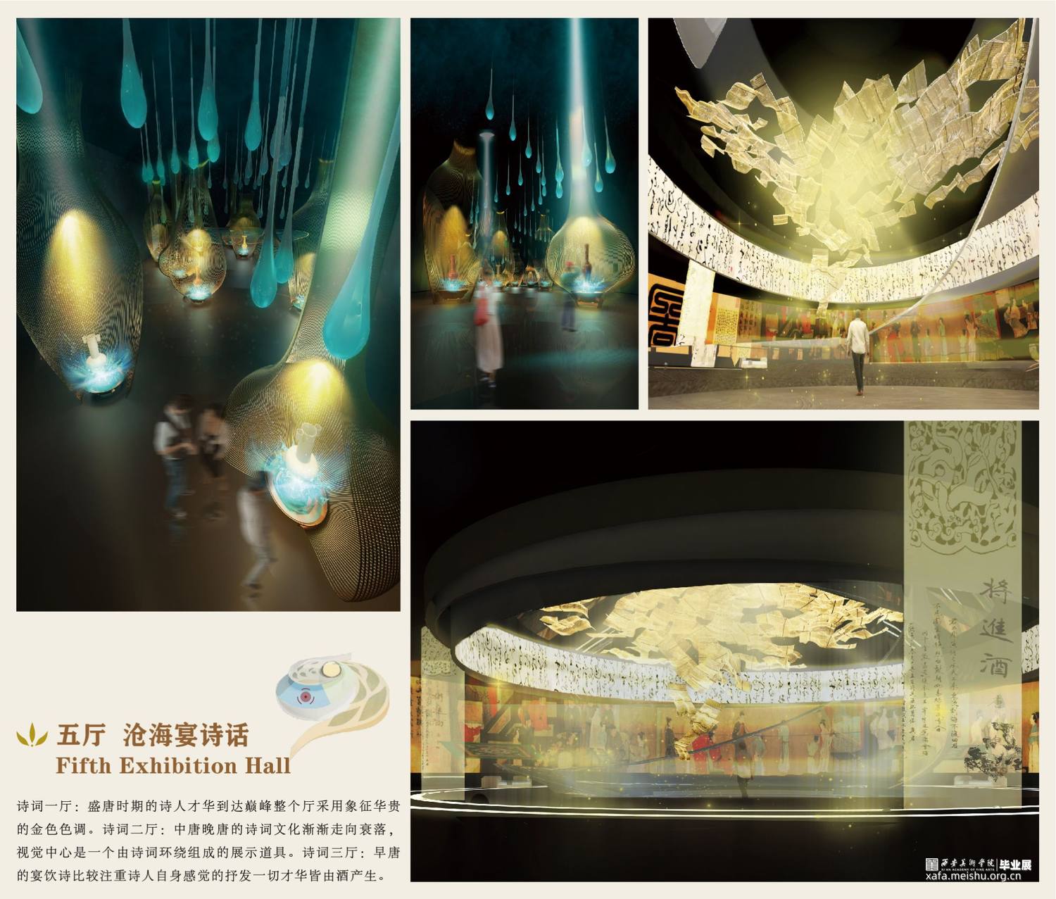 第五展厅以唐朝宴饮诗的兴衰而设计的诗词三部曲。