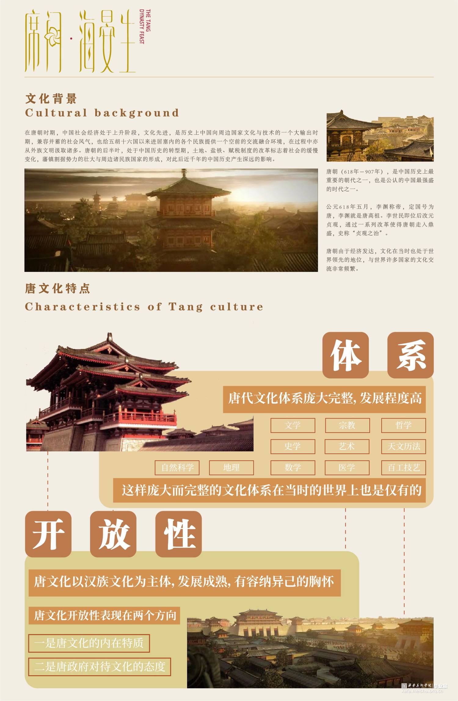 序厅以展现唐朝繁荣与华贵感觉作为序幕拉开,以强烈的视觉冲击力给参观者留下唐代高楼林立的印象。