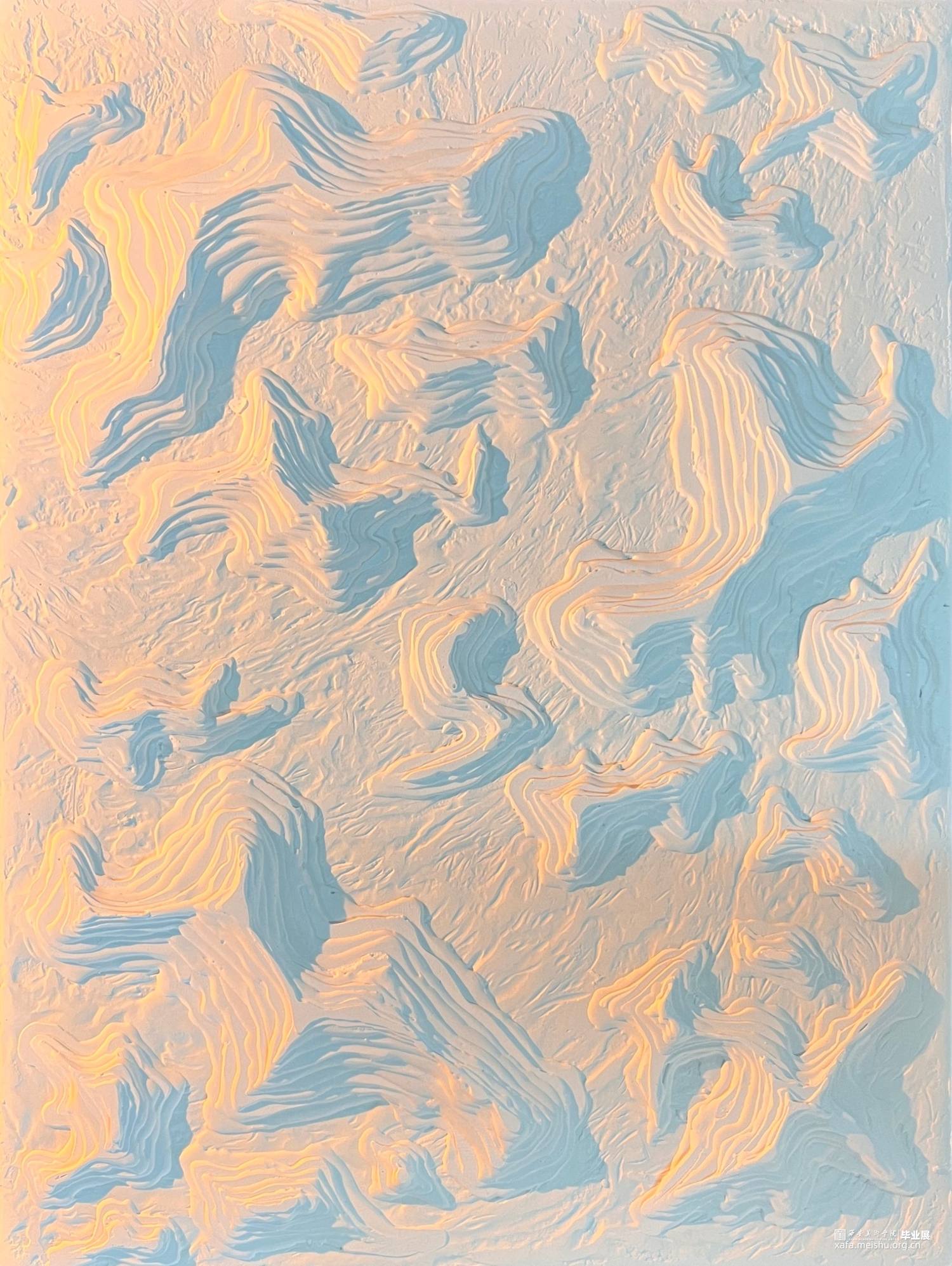 高宁:““苔花如米小,也学牡丹开。”苔花虽如米粒般微小,依然像那高贵的牡丹一样热烈绽放。在这世界上,痕迹虽然无处不在,却是常常被忽略,但它也有自己的迷人之处。作品受到地貌痕迹的启发,用材料进行一层层的叠加、等干、打磨、刻画,随之不断的丰富起来,作品最后呈现的效果不仅仅是表达经过时间的叠加而产生的痕迹,也是在创作过程中不断寻找内心的一片净土。”