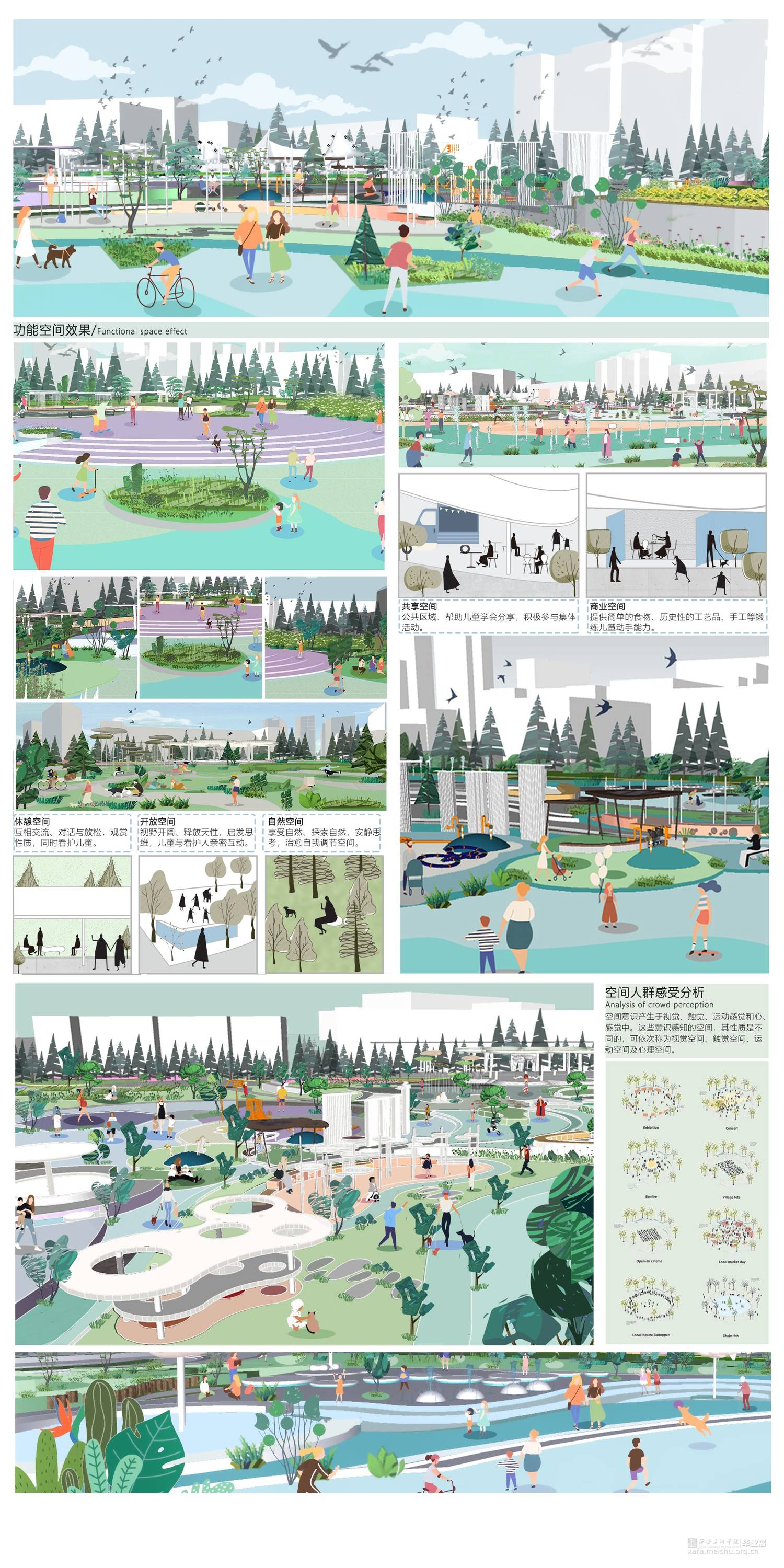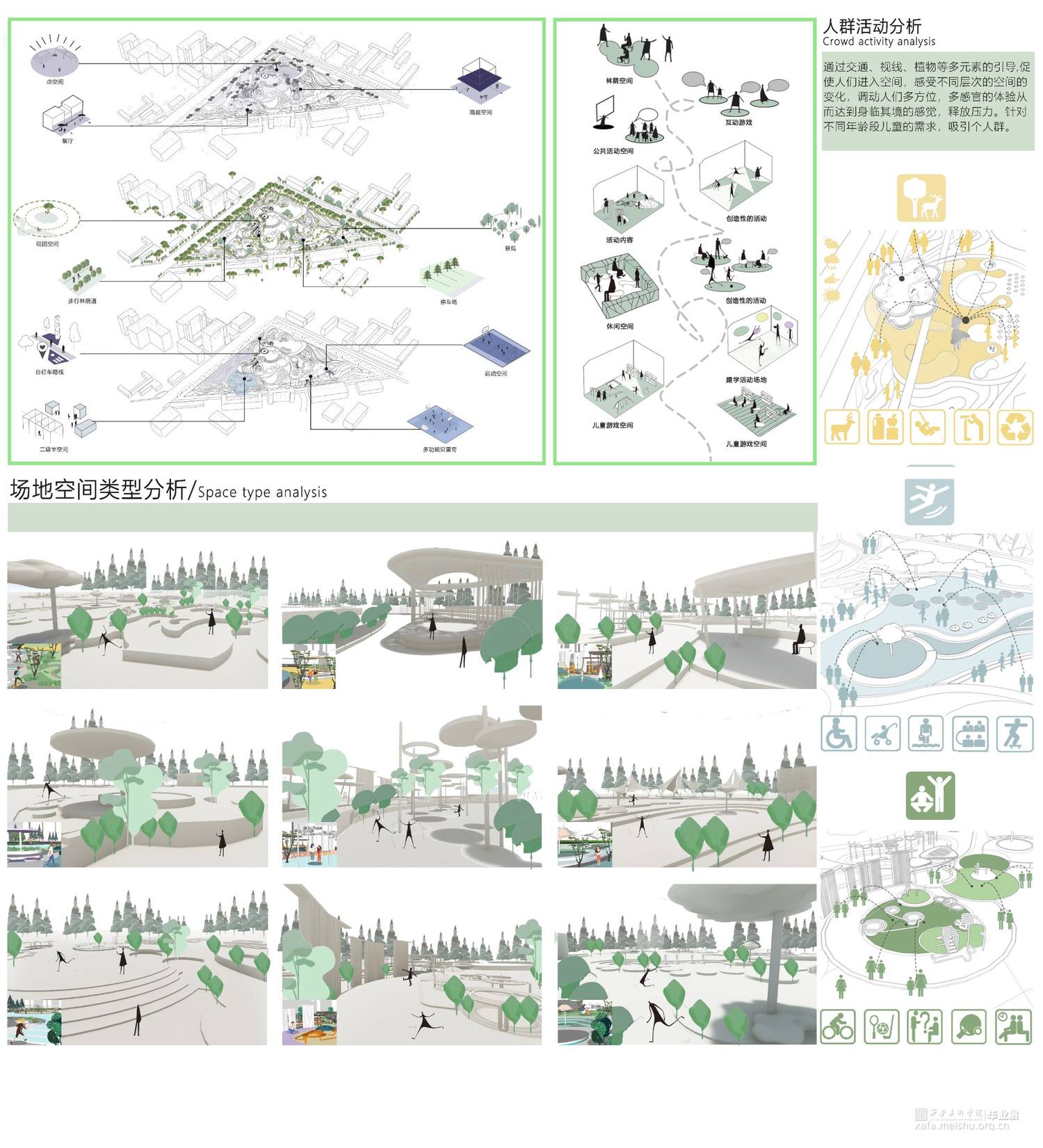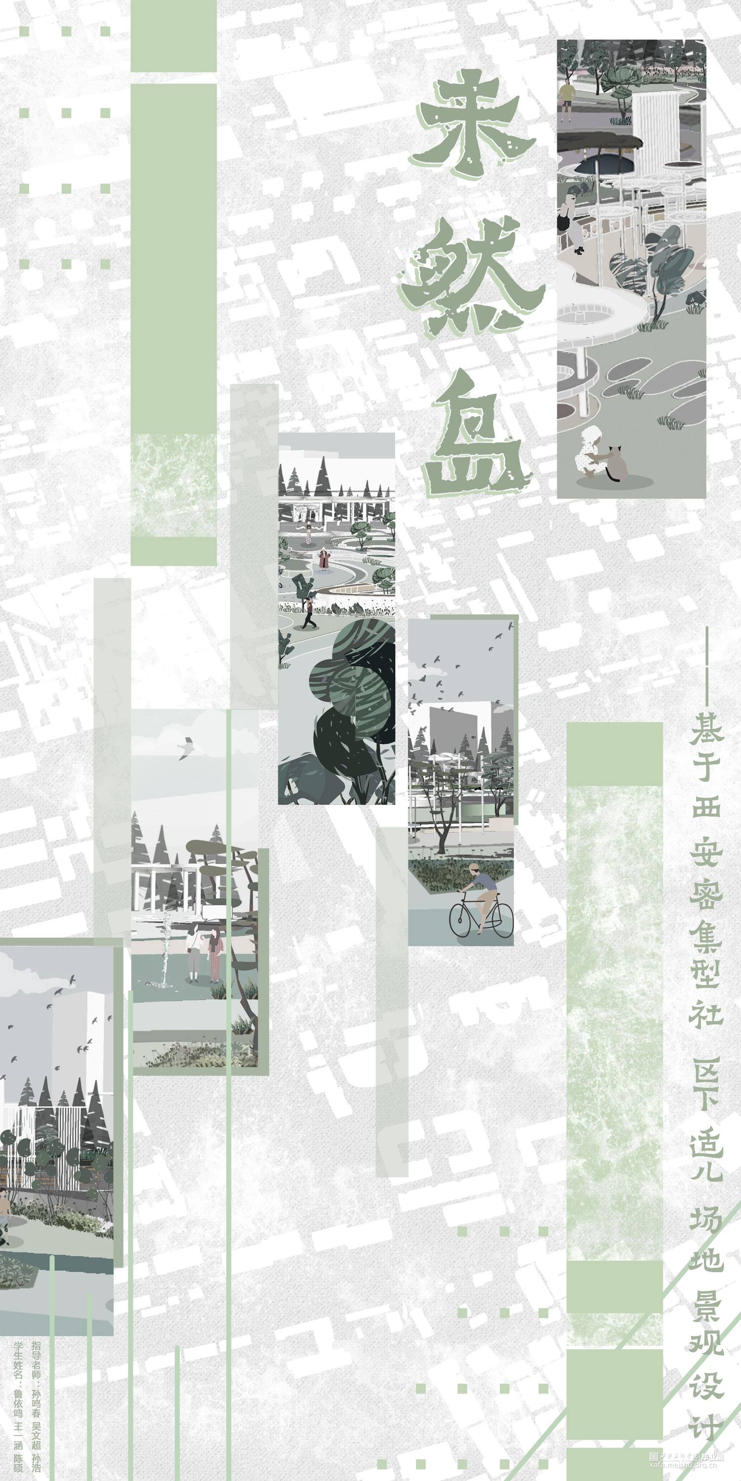 该场地位于西安市大寨路以北,丈八路以西。随着西安高新区的迅速发展,鱼化工业园的发展更为神速,位于西安市主城区边缘,东邻西三环,西连绕城高速,北至昆明路,南至科技西路,园区区位明显,交通使捷,充满无限商机,对儿童的成长环境与发展关注更为密切。设计理念以婆婆纳花茎、花瓣、叶片为元素,同时结合细胞分子、内部形态、 分裂重组等生命体特征表达一种生长、 向上的力量,还结合了树的树干纹理、叶片纹理及树根的绿色生机的元素设计适儿场地景观设计,满足儿童成长、活动、学习等综合发展同时优化该片区的生活品质,改善城市环境,为周边居民提供更优质的生活。同时在当代中国,以经济为驱动的儿童业态已经呈现快速发展的势头,但对城市和社区中儿童活动空间的重视程度还远远不够。大到儿童友好的城市生态与公共卫生安全,小到儿童场所中可供嬉戏的沙石, 都需要我们精心呵护。密集型社区是城市的有机组成部分,是城市活力的源泉。孩子是社区活力的源头,只有对“儿童友好”, 为他们创造合适的活动空间,才能更好的激发社区,乃至城市的活力,最后“末”然岛是儿童蓬勃发展的一个新空间、新未来。