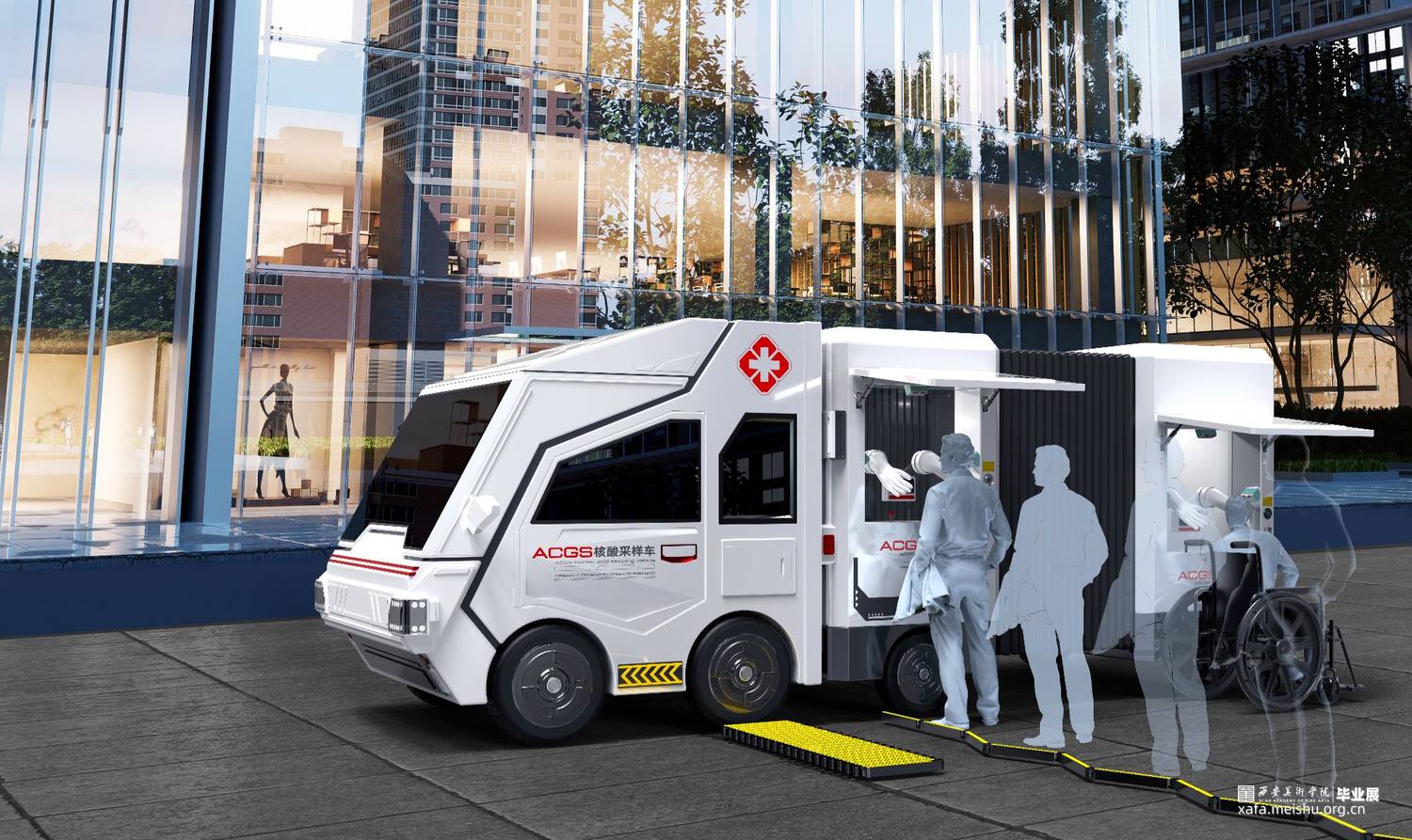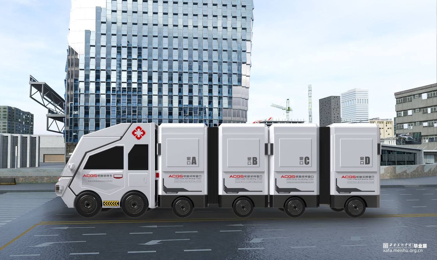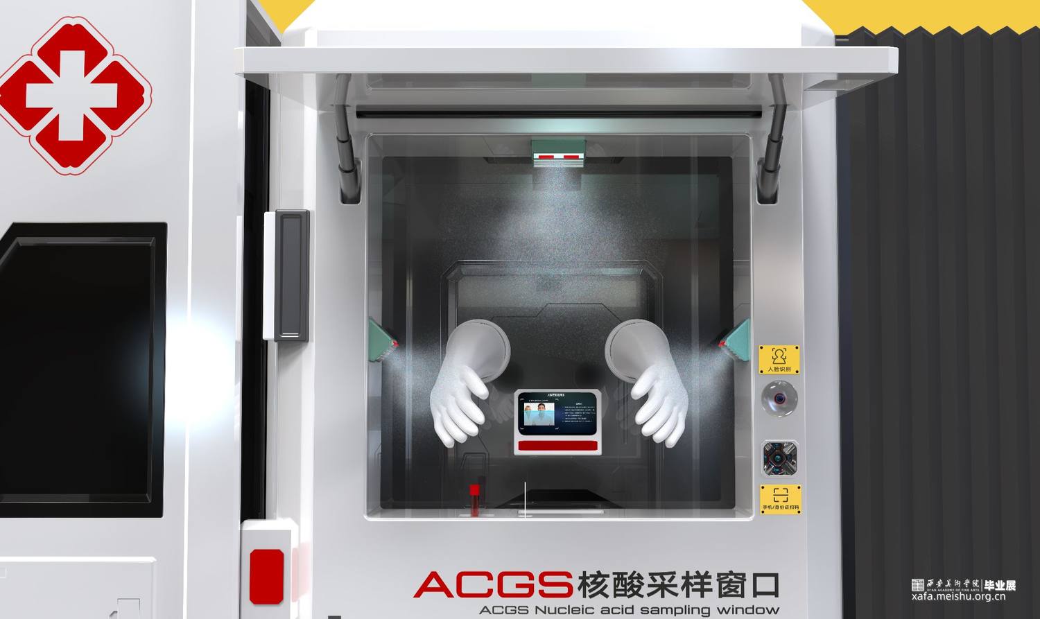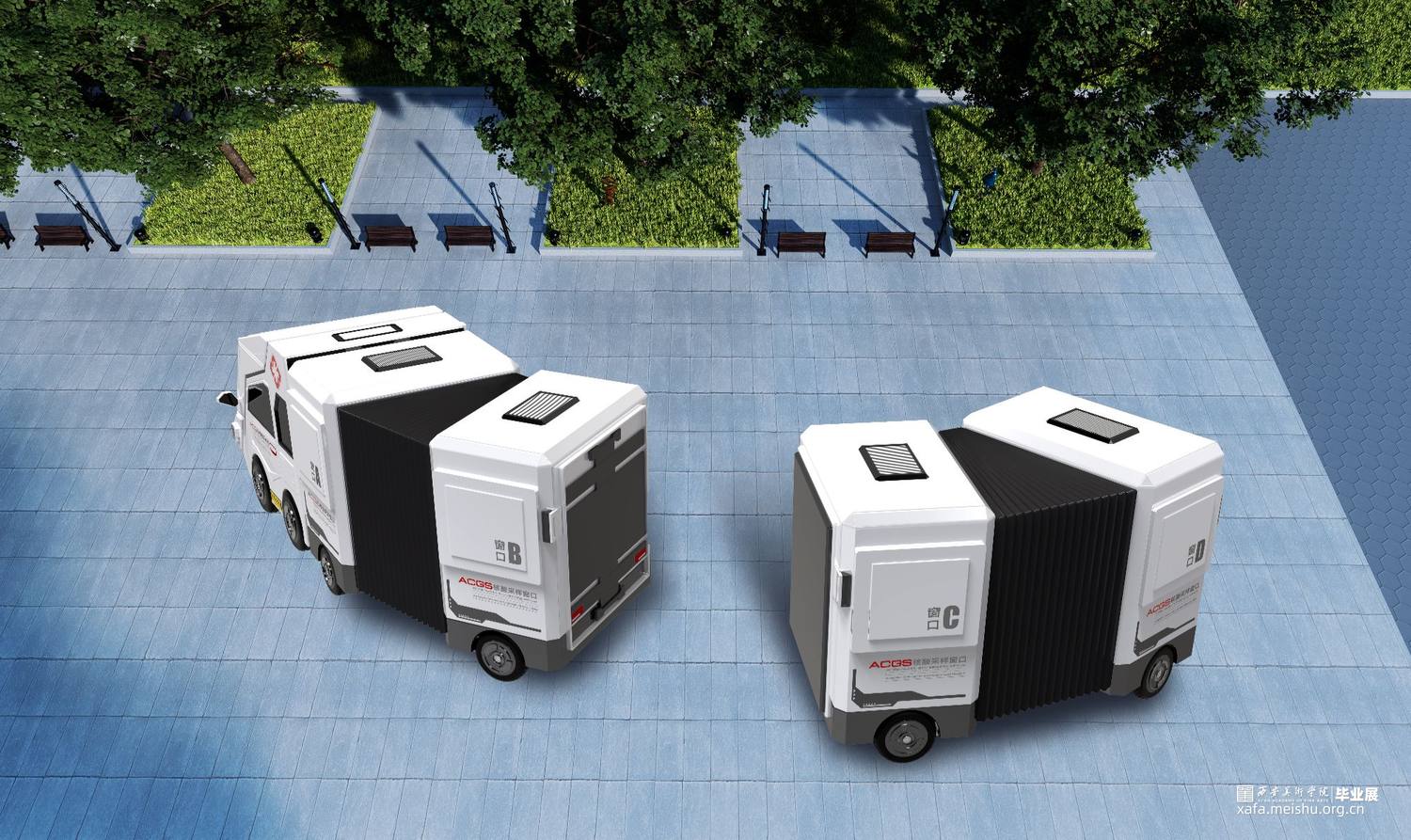 1.采样车厢单元设计为单独的模块,封闭式车厢,恒温负压环境下医护人员无需防护服。每个模块有着两个采样窗口,可根据采样地点具体需求配备采样车厢数量,并额外配备了无障碍采样窗口。