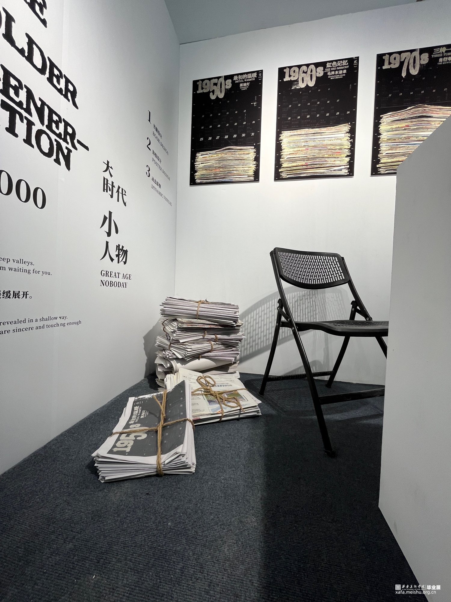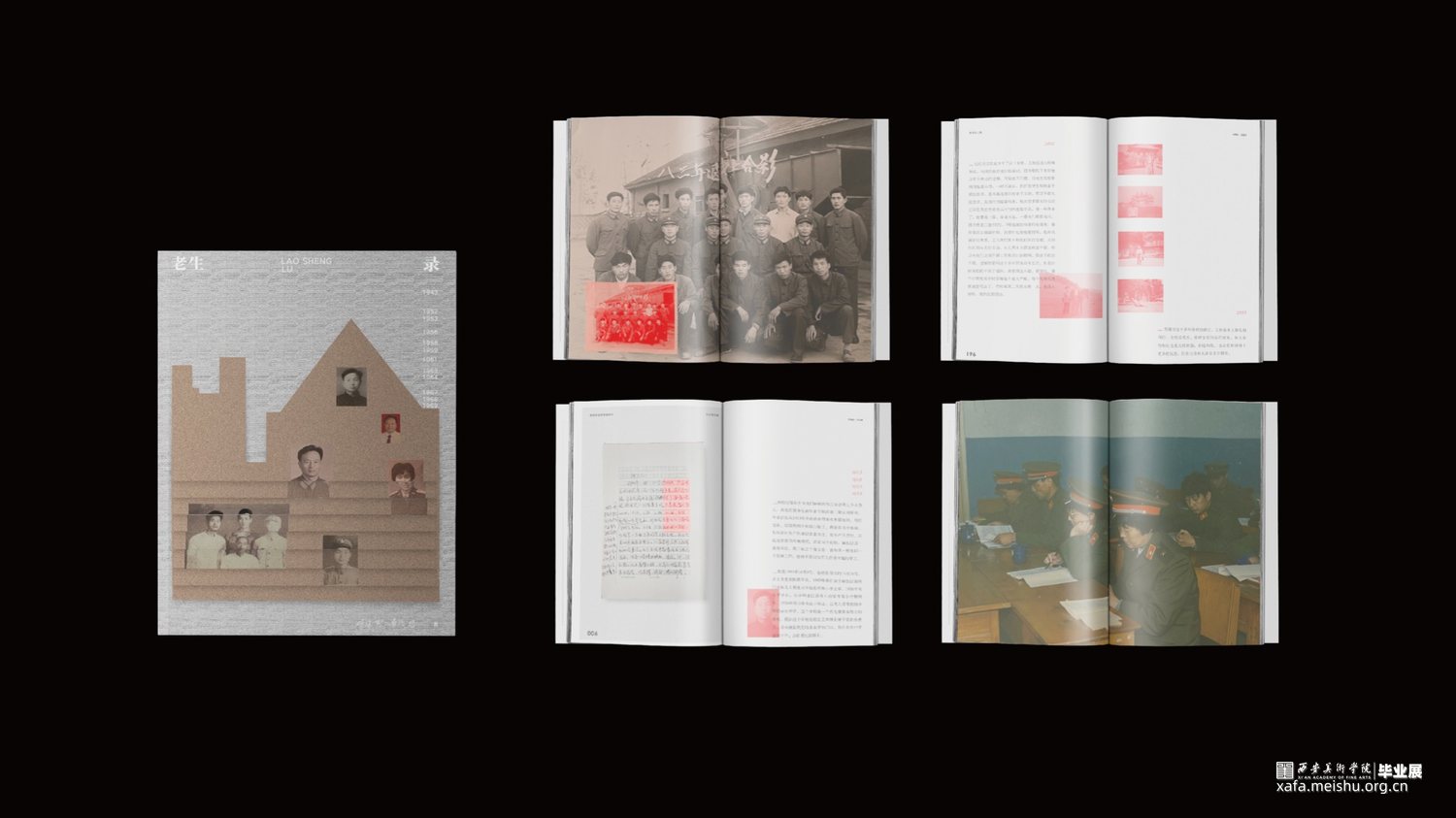 《老生》作品题目取自贾平凹同名著作。原本的含义为戏剧行当——老生,主要扮演中年以上的男性角色。我们把它的含义延伸到经历过时代变迁的老一代人与后生的青年人。旨在真实地再现那个时代,社会几经转型,革命、动荡、改革,为了生存,我们的祖辈都做了什么。其中一句“我有使命不敢怠,站高山兮深谷行。风起云涌百年过,原来如此等老生。”是对《老生》题意的高度凝练。而对于整组作品而言,《老生》作品拥有两层含义。一方面,国家有国家历史的记录者,小家有小家的传承人。我们关注大时代下的小人物的故事,表达和传达我们的家庭情感,将作品献给我们的家人和他们历经的那个时代。另一方面,我们以视觉传达专业视角出发,汇聚这些交杂着幸运与欢喜,遗憾与无奈的故事,探寻设计手法与情感记忆之间的关系,发现情感记忆在设计中的价值。在凝聚情感记忆的基础上,调动情感,挖掘内涵,为设计方向拓展新的思路。展现时代的思考与变迁,以重温二十世纪,得到更多的情感的延续与共鸣。