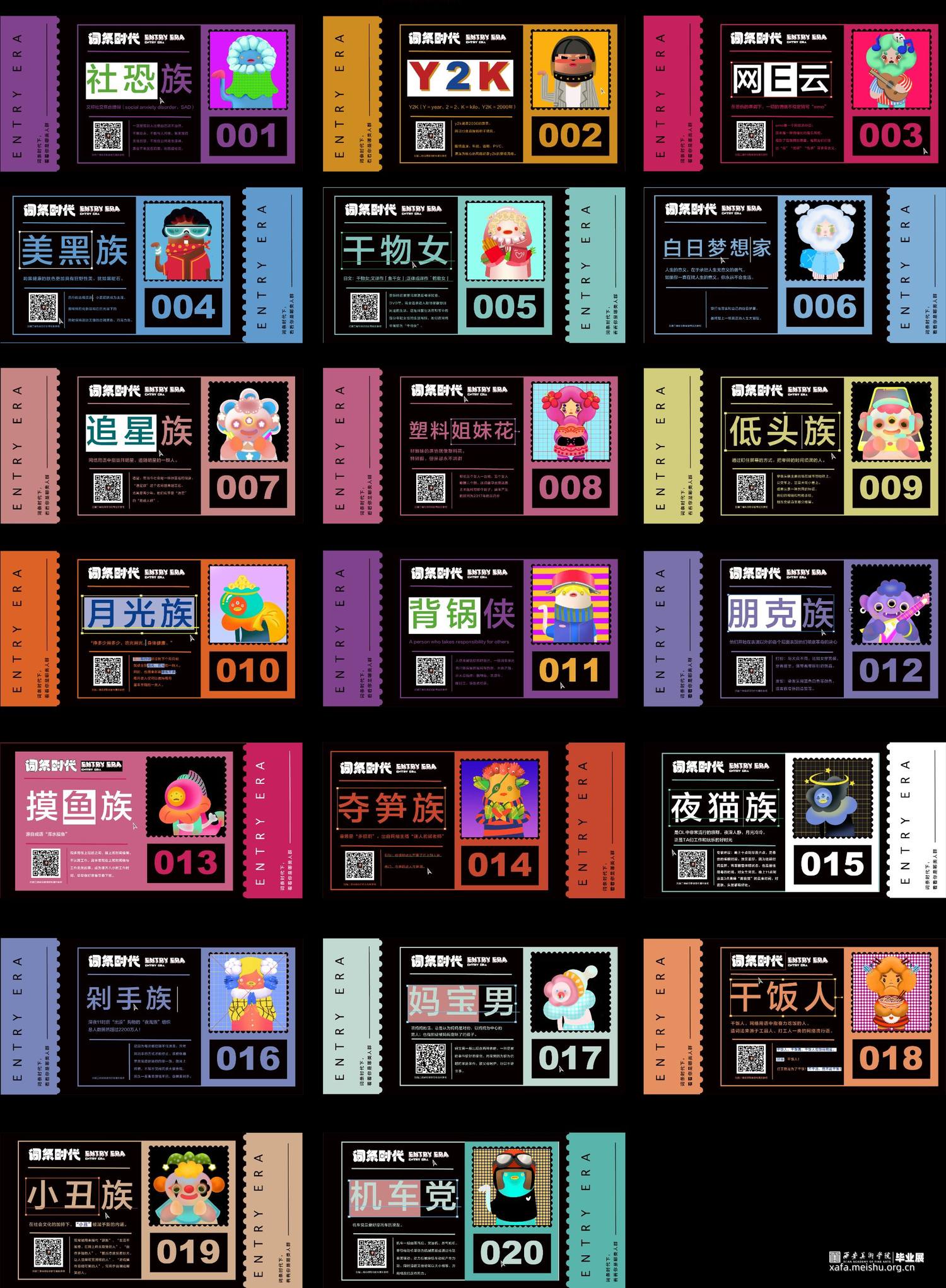 本作品依据当代时下各类流行词条,以插画的形式表现,又结合当下社会热点问题词条总结创作招贴海报,引发人们对当下社会热点与自身性格特质的思考。