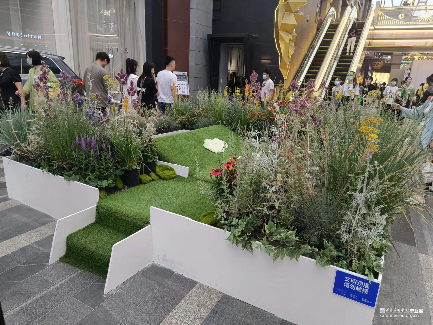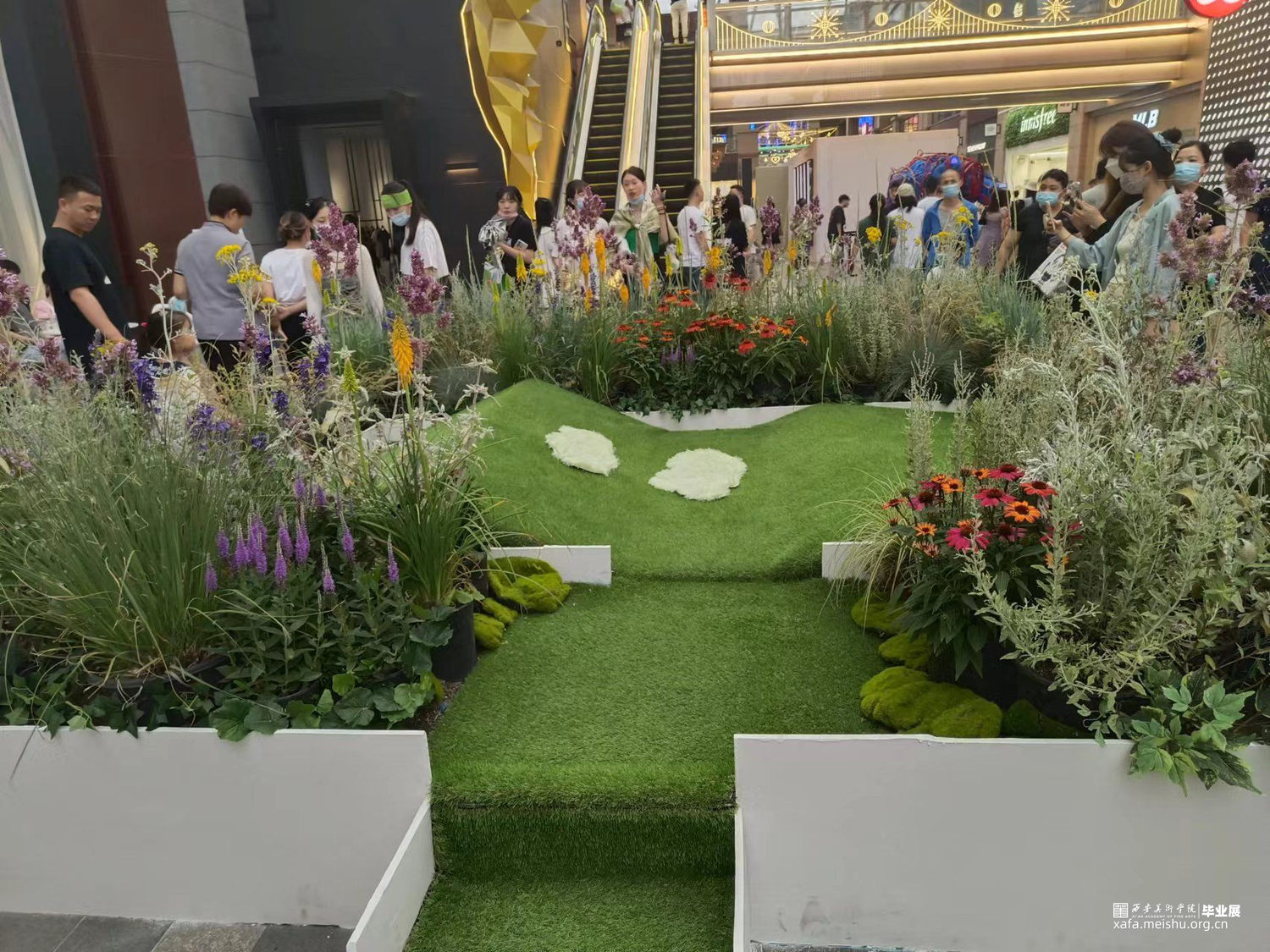 创作构思的立足点为人与自然,用最隐形的方式,让人们与自然接触,感受到到自然的“呼吸”。人与自然共生,一种应被提倡的和谐的相处模式。我将在大地中加入人的一部分特质,使人们可以再体验中与自然感受到一定的共鸣,重新唤起大家对自然的新的认知。装置被植物环绕,中间的绿地为一个可互动的机动装置,当有人躺下,触发压感,绿地将开始自然起伏,和体验者互动,感受到地下的律动。同时,将听见地底深处传出的声音,感受大地的起伏与呼吸。