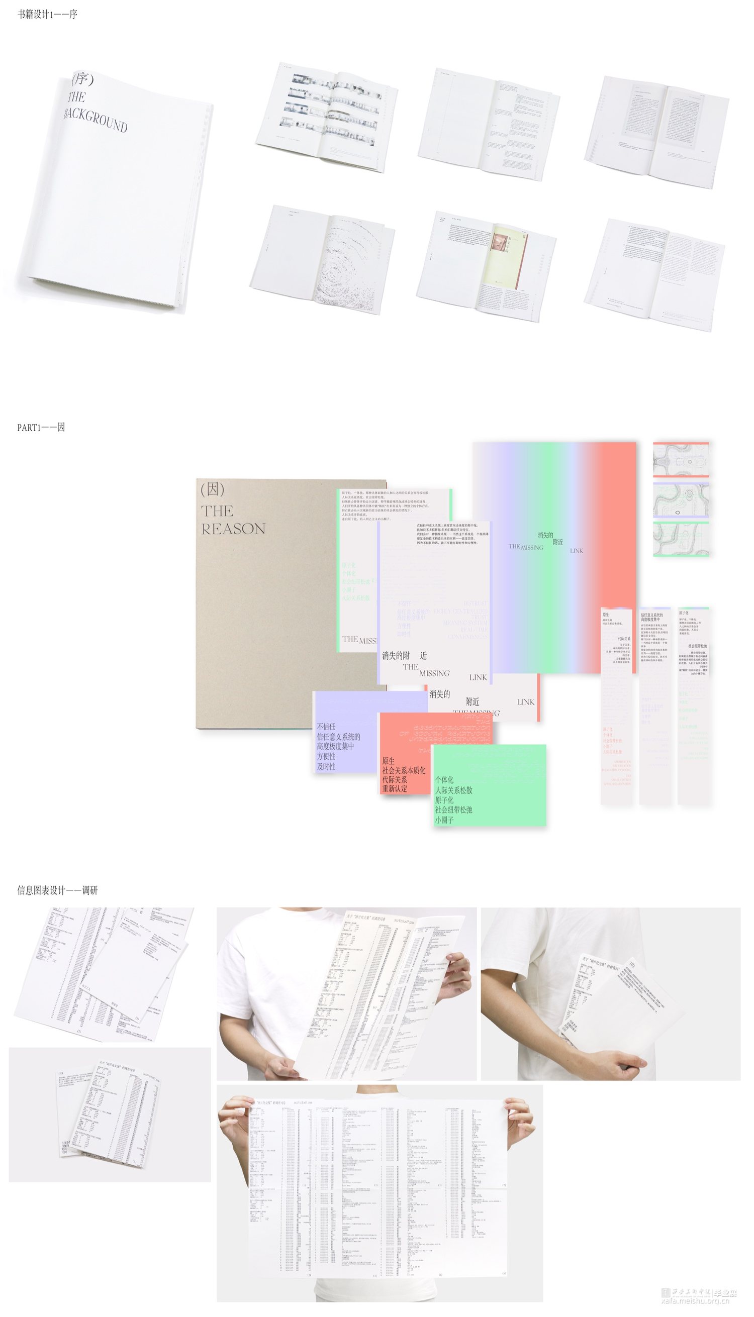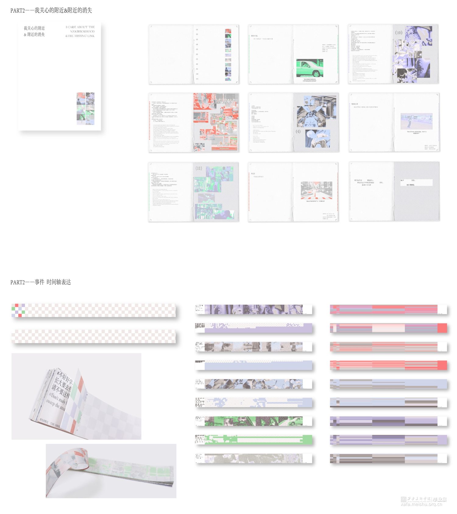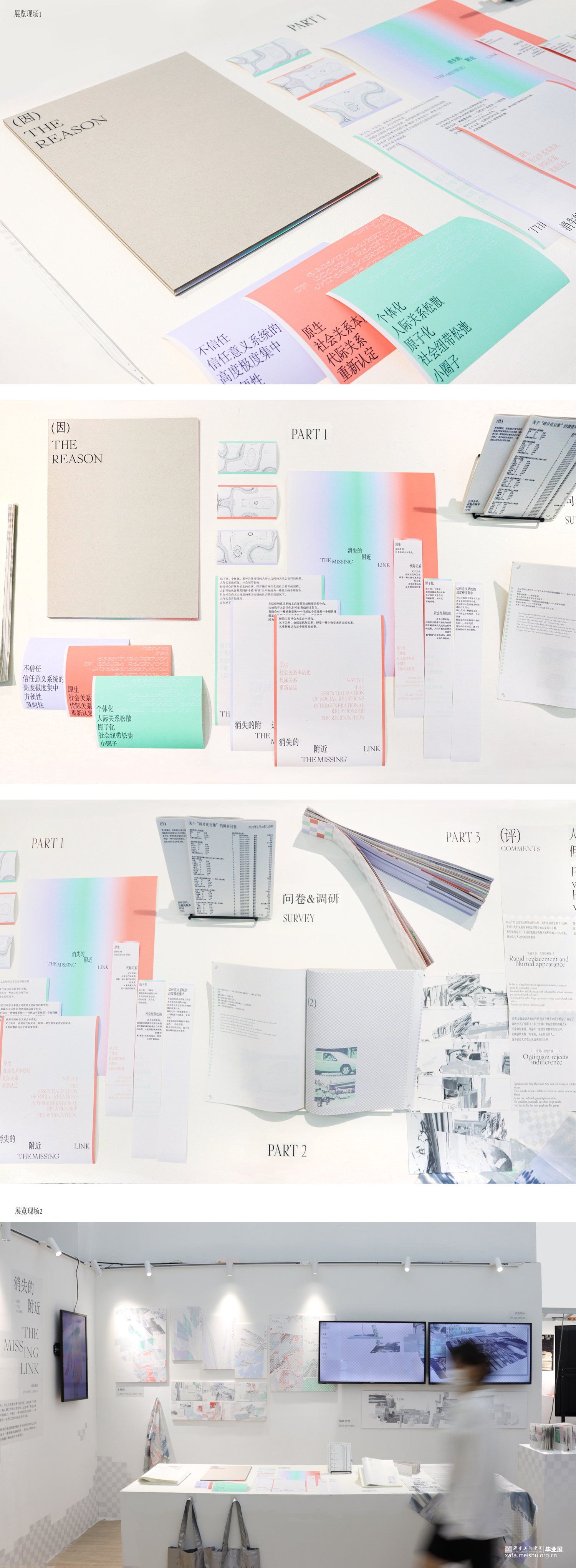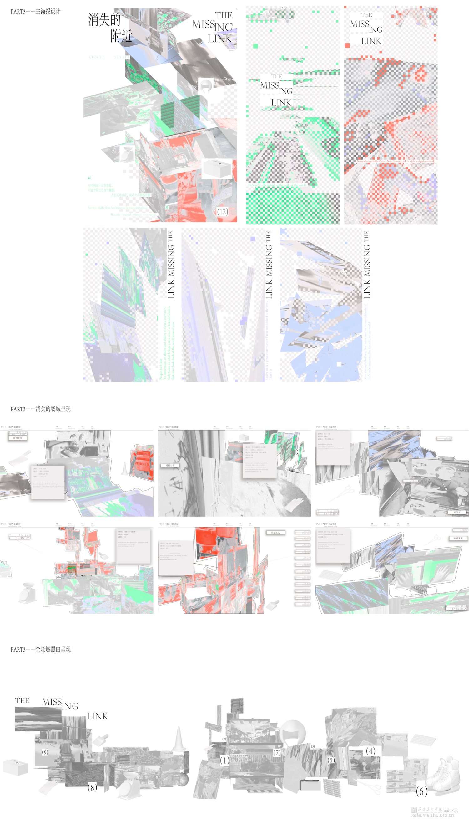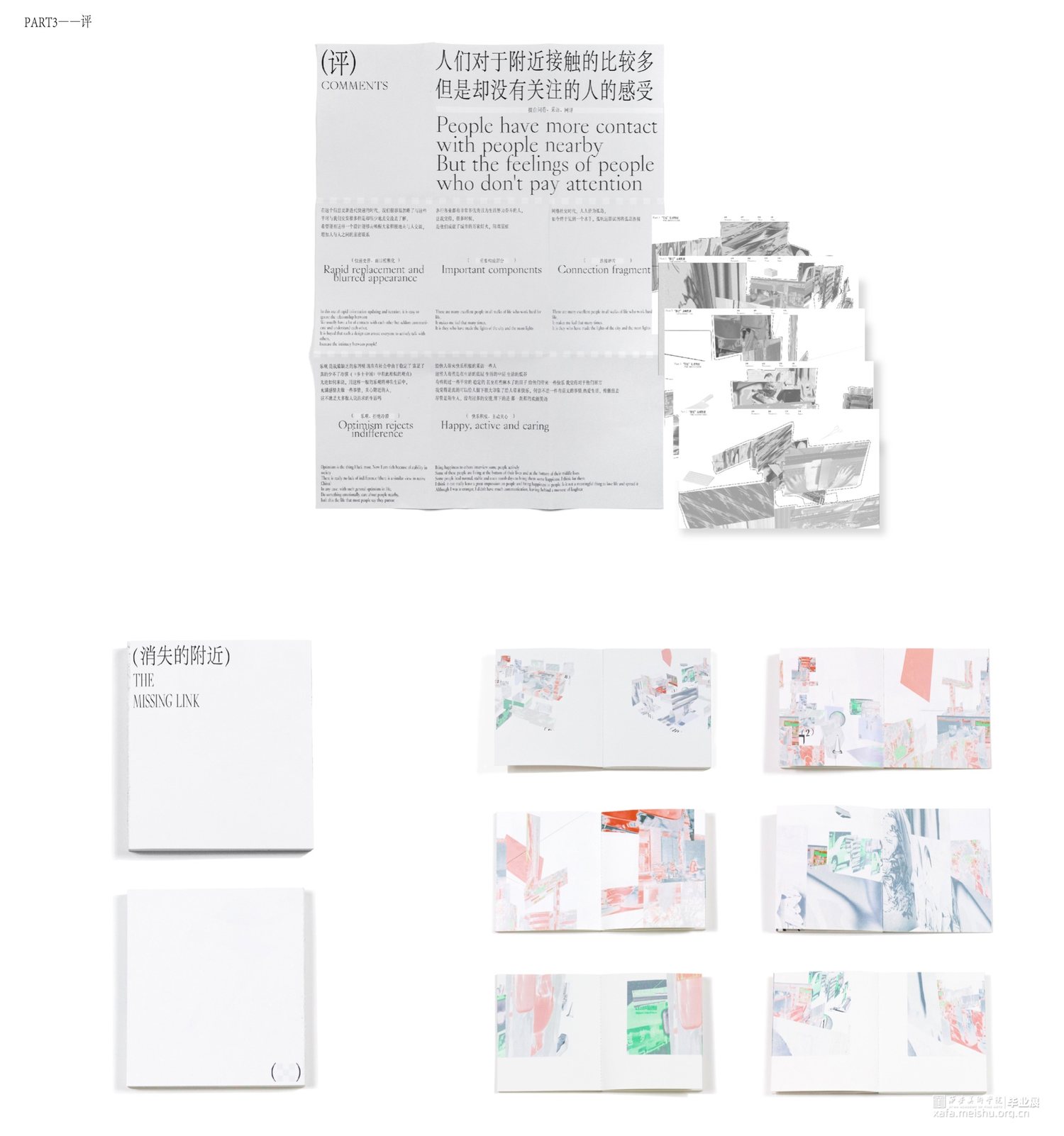 作品运用招贴设计、书籍设计、信息图表设计、三维搭建对附近的消失的原因、经过以及可能会产生的结果进行呈现,从平面到三维场域再逐渐消失,来表达与附近的人关系的缺失就像人和人之间的时间空间被不断地挤压转换消失,对附近的关系做视觉的呈现。