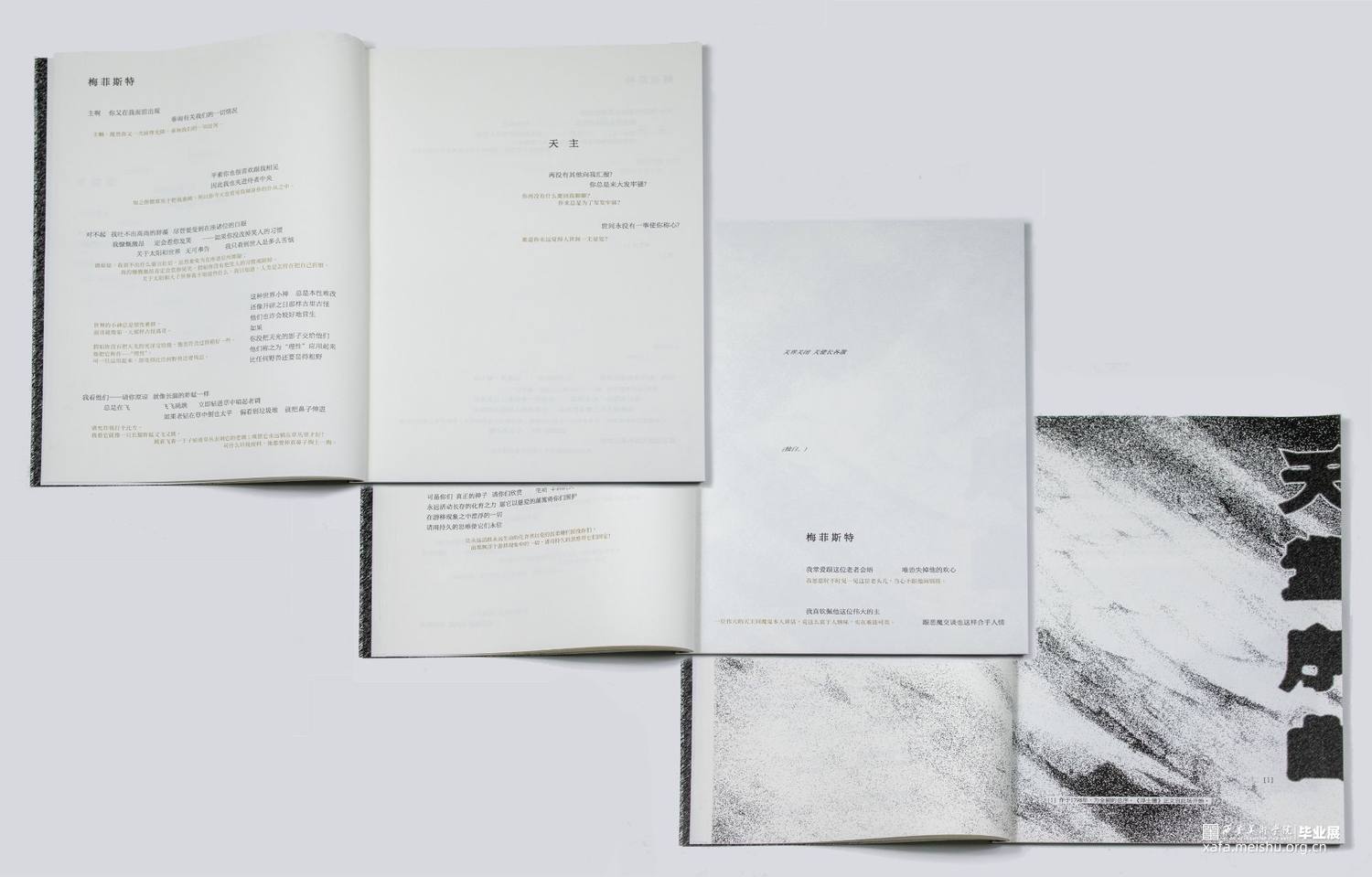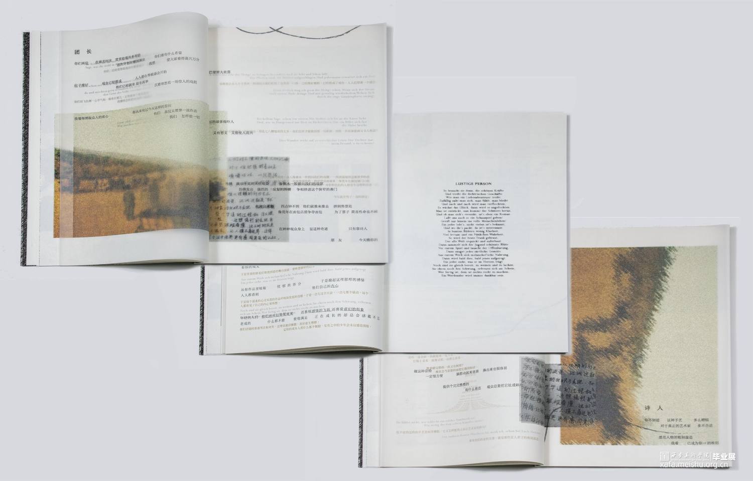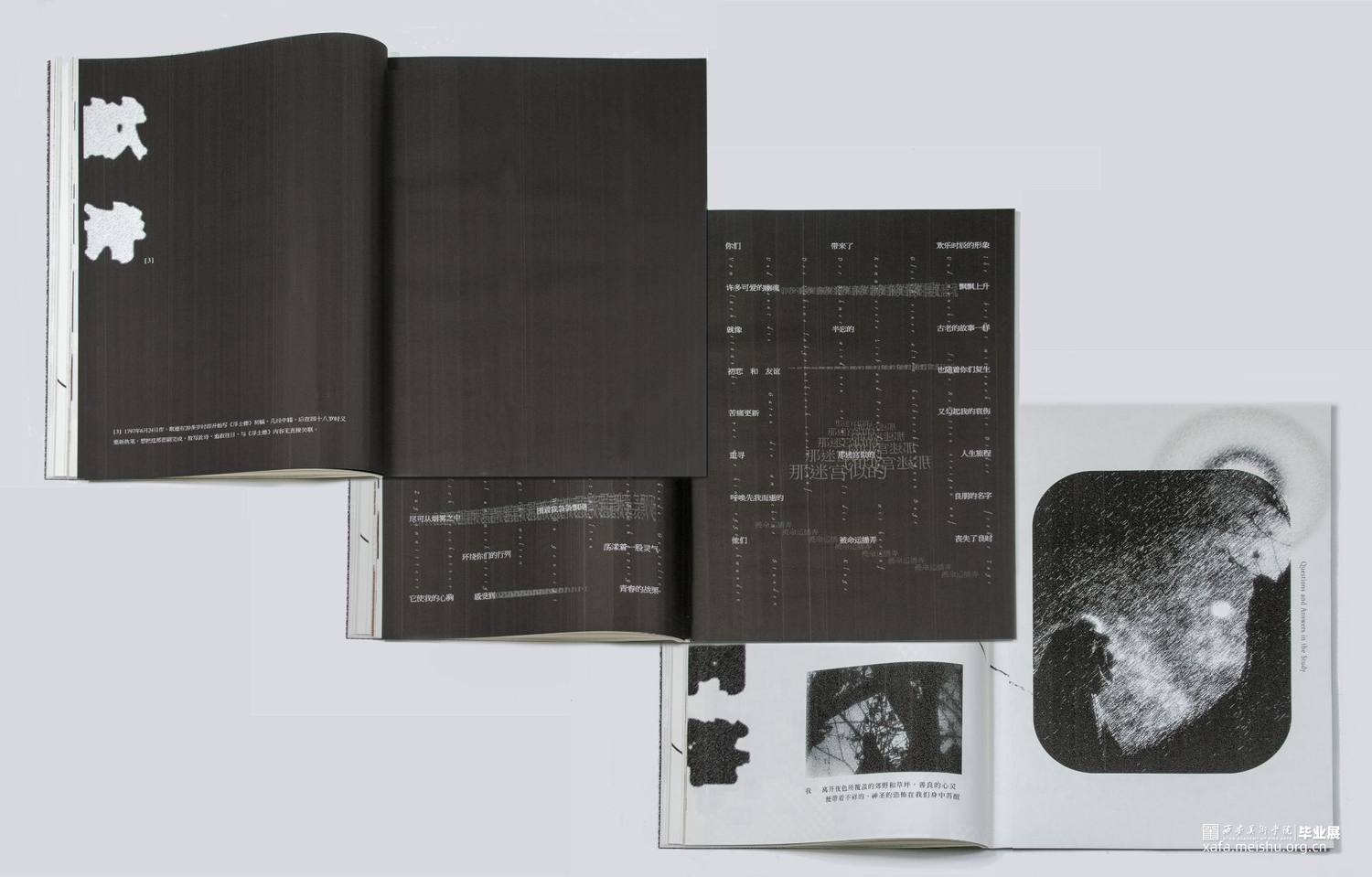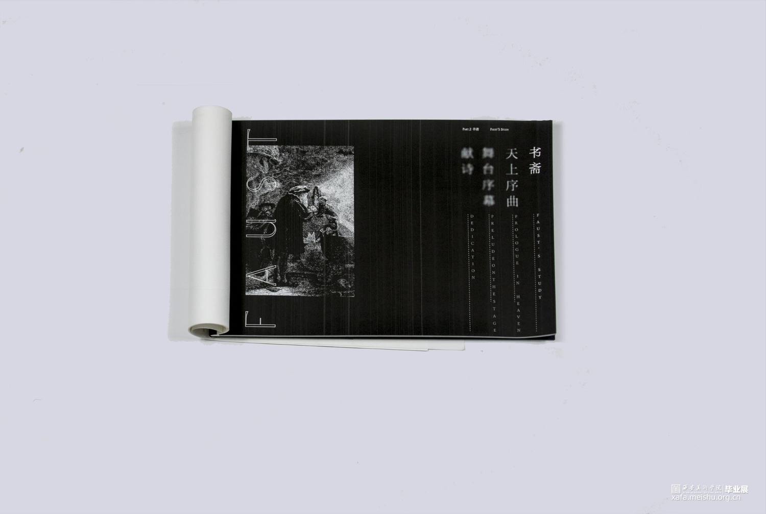 这是一次解构主义思维下的书籍设计尝试。《浮士德》作为一部拥有众多译本的著作,译者的每一次转译,都可以看作是对其新的解读与二次创作。当文字的绝对性被弱化、消解后,该如何将信息以及感受传达?《书斋问答》是在这种思考下诞生的作品。作品包含三册书籍设计、一册整合本、一册成员小记,实验性海报及一部实验性短篇。作品并非在传达可读性,其构筑出的是一场关于书斋的感受,书籍设计在字号字距、内文顺序、图像处理及纸张材料选择上均有变化,亦可理解为作者对《浮士德》的拆解过程与全新诠释。