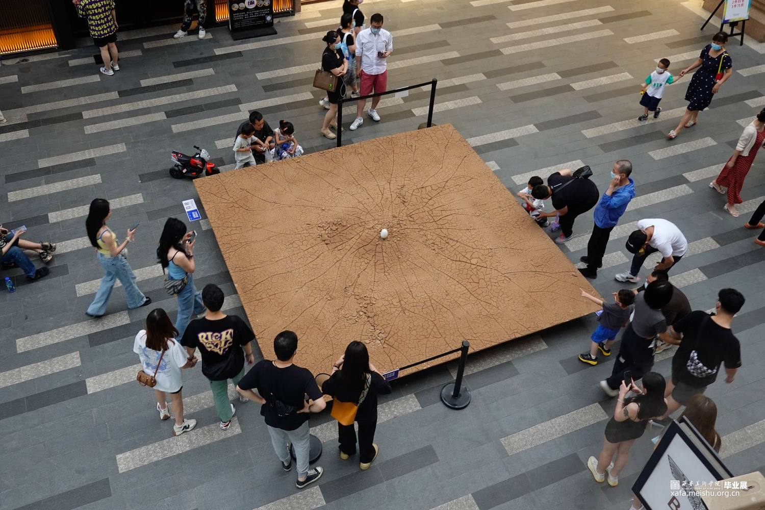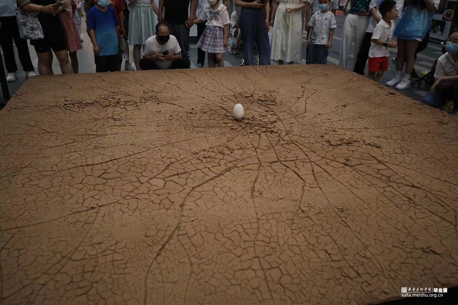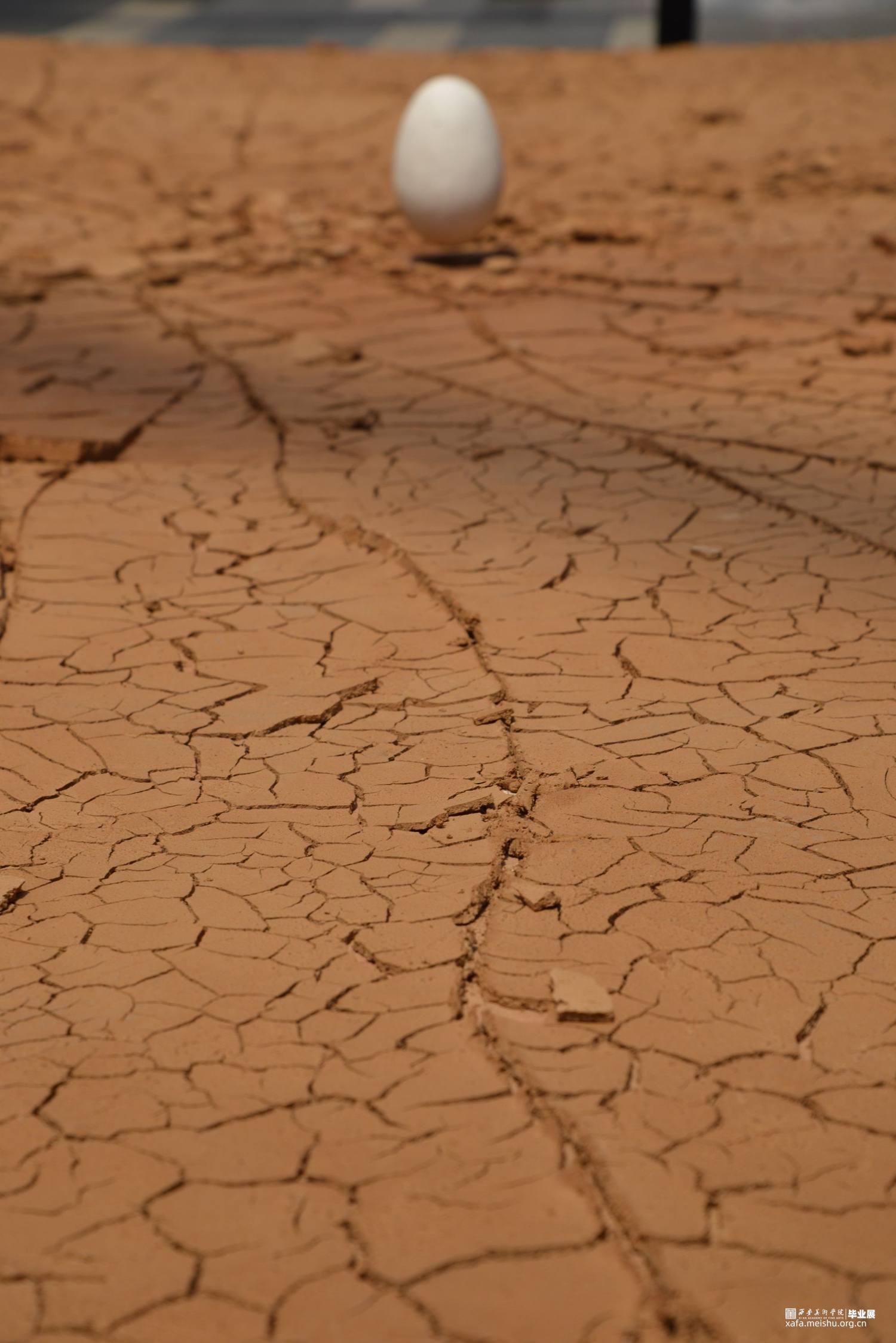 生命的繁衍需要向外部环境汲取能量,同时在这一过程中影响着它的外部环境,如人类发展对生态环境造成的破坏。蛋与大地是我们对生命与其外部环境关系的比喻,当蛋向大地汲取能量时,大地出现了裂痕。形成了一种相互对应的因果关系,蛋表在孵化时产生裂痕,大地为了它的发生而出现了裂痕。生命生生不息不断繁衍,大地的裂痕也从这一点向四周不断延展下去,无穷无尽。