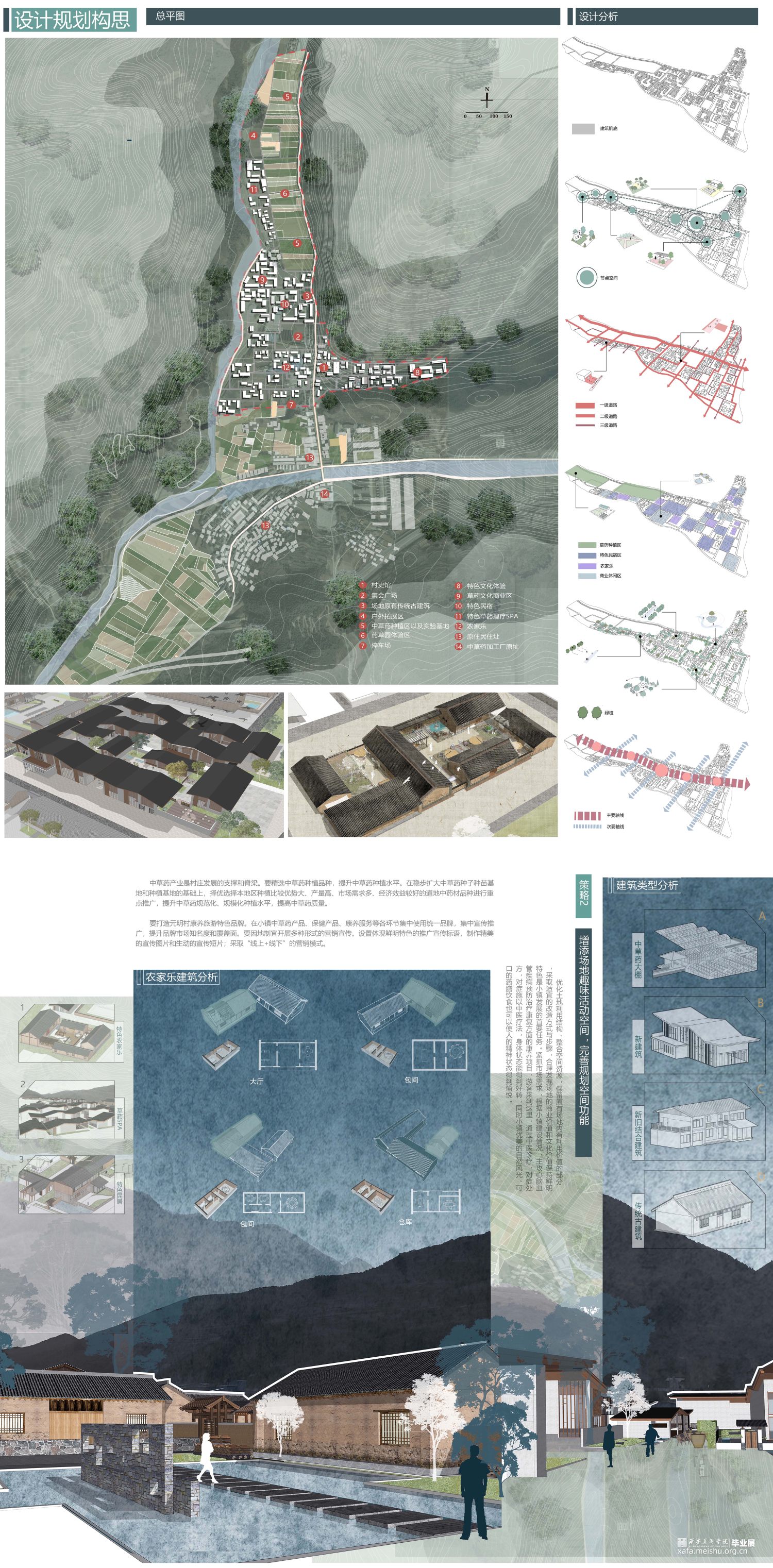 本次毕业设计作品通过对宝鸡地区河口村村域环境的提升,提出在康养理念下,河口村的景观环境研究思路,致力于研究如何用当地中草药特色资源与产业打造乡村景观,促进河口村资源开发与利用,使得其发挥出康养景观价值。优化土地利用结构、整合空间资源,保留原有场地内有利用价值的部分,采取适宜的改造方式与步骤,合理发掘场地的商业价值和文化价值,能够吸引年轻劳动力回到乡村。不仅增加了乡村的活力,还推动乡村的经济发展。丰富产业结构,不仅仅依靠农业。在文化、环境方面突出的乡村可以大力发展旅游业。文化与环境的特点赋予乡村独一无二的竞争力。