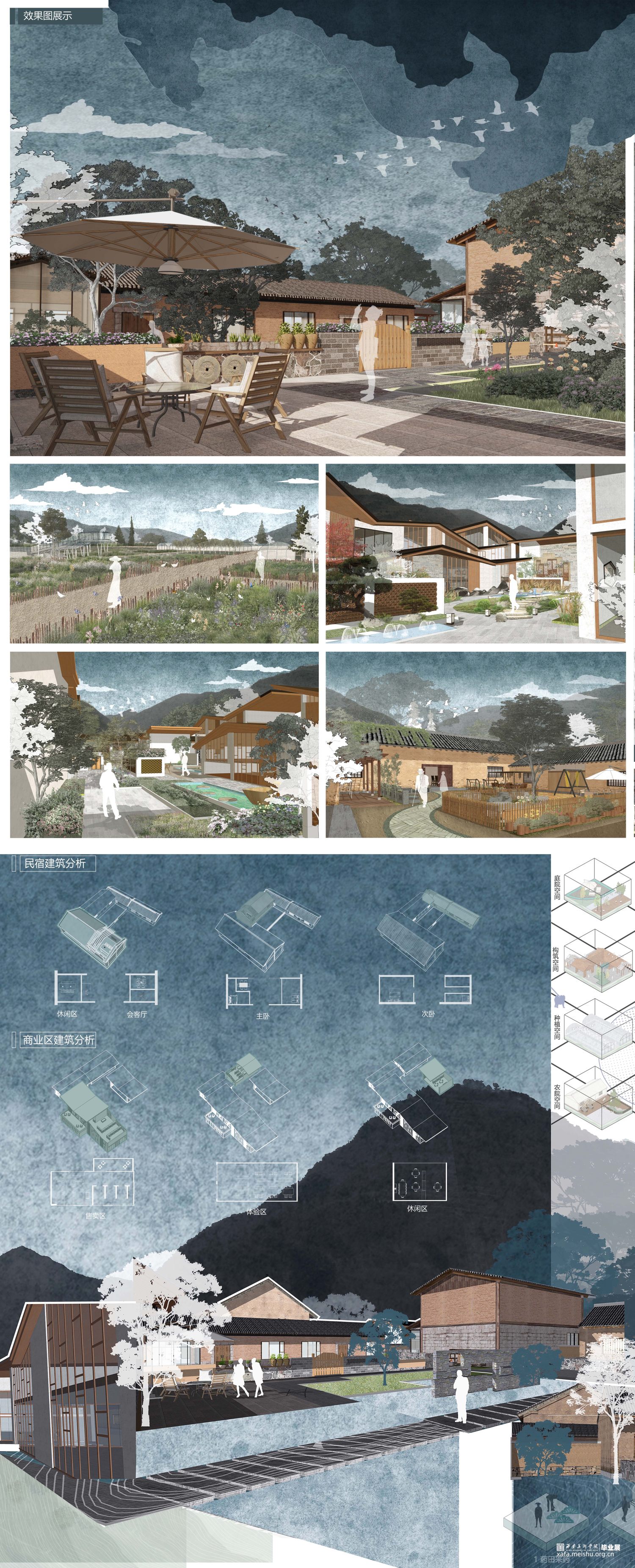 由于本专业精准对接乡村振兴提升设计,因此本次设计在不破坏现有场地大体样貌、尊重村民意愿的条件下进行提升,做到真真实实站在村民的角度去思考问题,提高村民的生活质量,让村民的生活真正的好起来。也提供城市居民一个休憩放松的环境,提供城市居民乡村生活的崭新体验。乡村的合理改造能促进乡村的经济发展,不再是扶贫而是做到农村自身发展,有利于共同富裕的达成。
