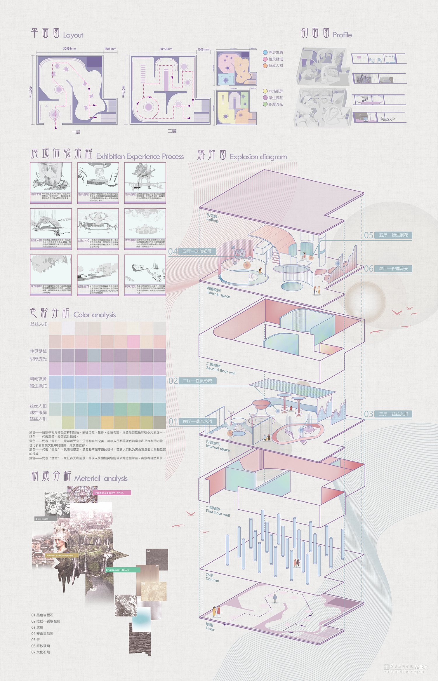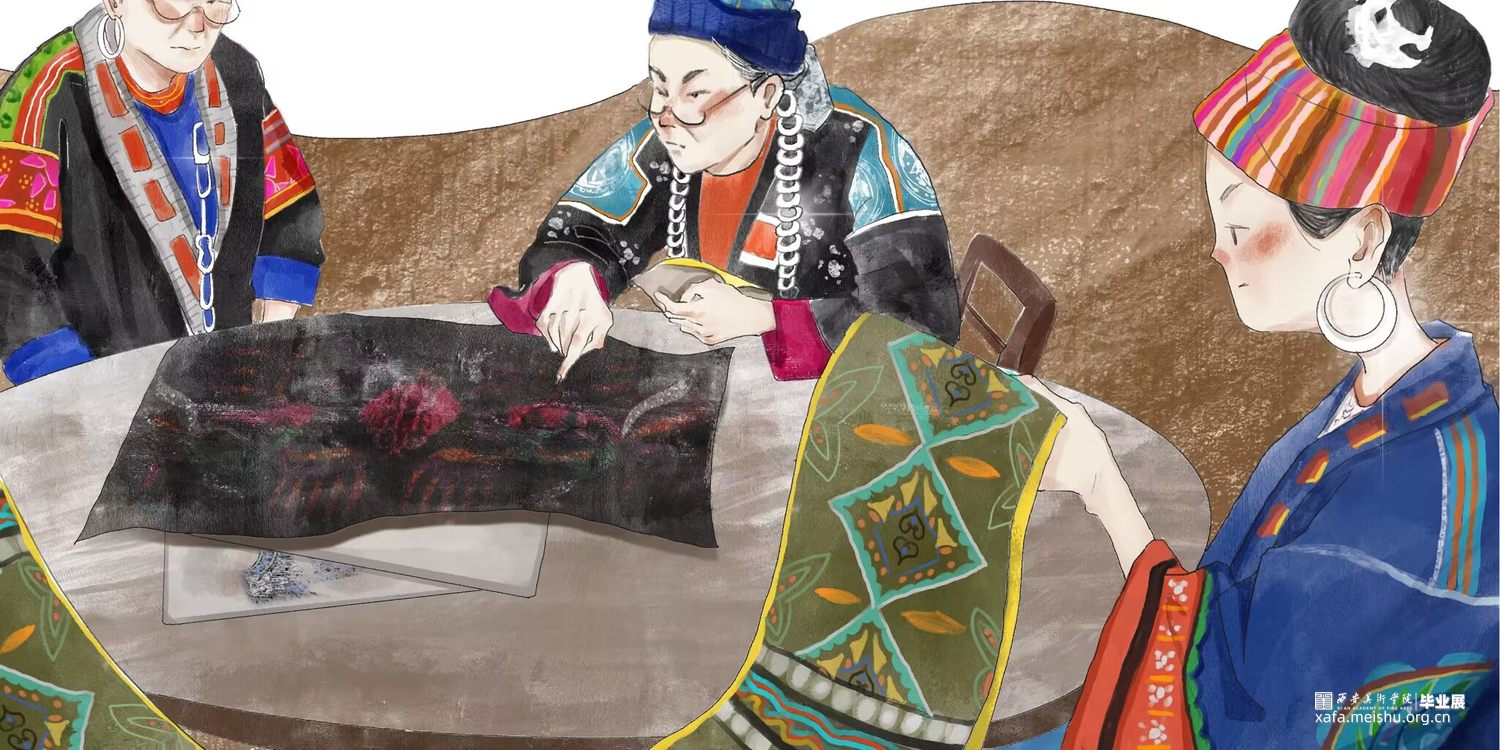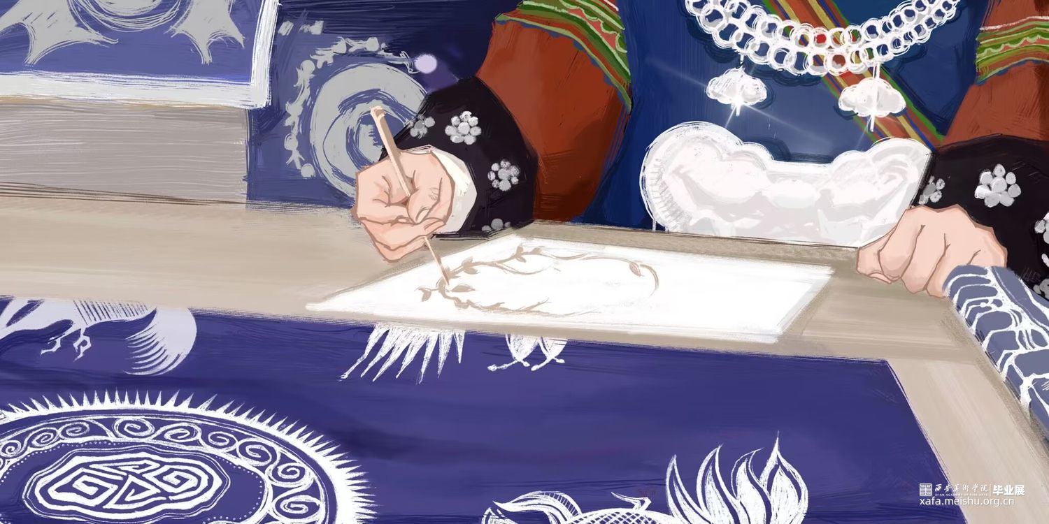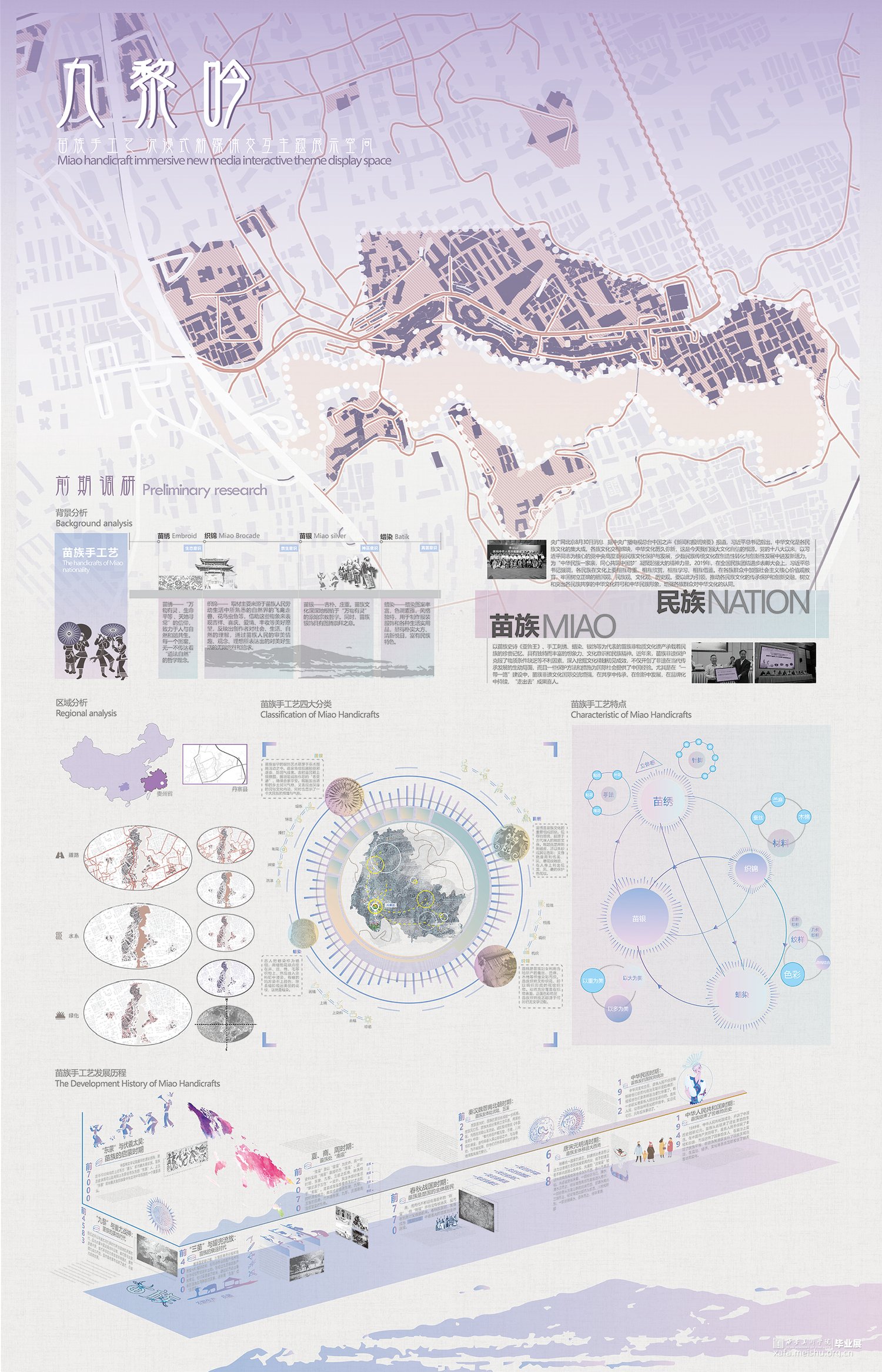 苗族非遗文化逐渐被人们所忘记,我们要重新唤起人们对苗族传统手工艺的认识,减少枯燥的知识科普,革新展示方式,将元素结合到空间造型,以感官刺激让观者和展示内容建立联系。线上线下展示体验的相互结合,顺应互联网+时代的发展,推动创新型空间的搭建。推翻以往的展厅陈列方式,运用新媒体技术打造沉浸式的主题空间,让观众全身心投入其中。通过使用装置结合新媒体的形式,系统梳理传统文化资源,让陈列在广阔大地上的苗族传统文化遗产、书写在古籍里的文字都活起来。把苗族手工艺文化中不同类型的手工艺都通过不同审美风格和元素反映出来。利用视觉、传统元素科技手段增加观者体验感的同时让观者更深刻的理解到苗族传统手工艺文化,从而对中国少数民族传统文化的发展和传承引起兴趣,引发思考。