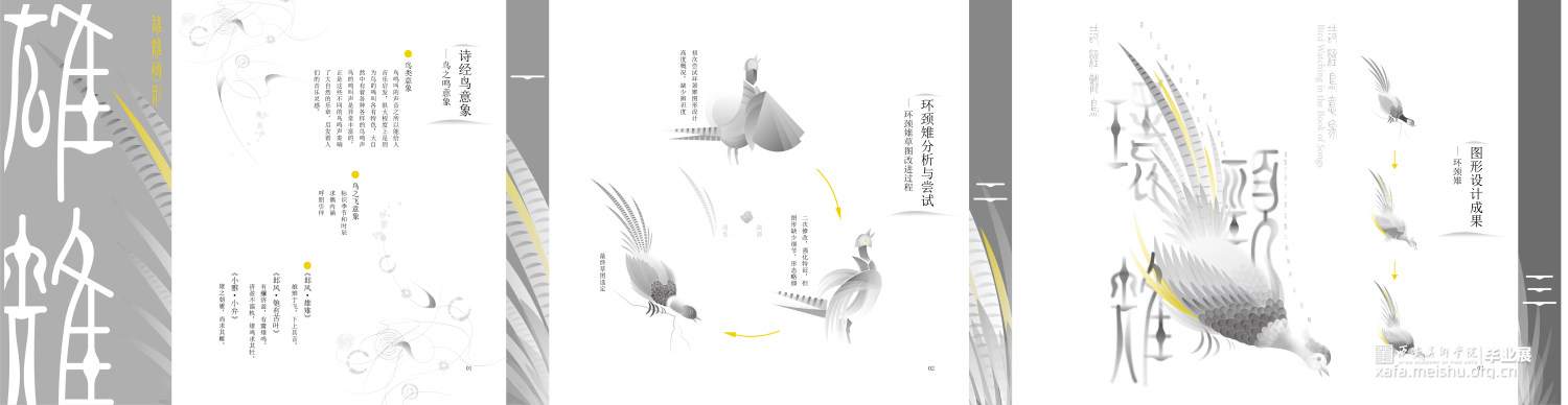 以不同材质、用途、使用场景的媒介为表达形式,把握《诗经》鸟意象的整体概念与气质内涵,通过对设计理念进行实体化转换,从而达到由理论到实践,由文化创意到日常产品的突破。从而更好的传统文化创新设计的发挥文化传播与实际应用作用,将诗经观鸟融入日常生活之中。