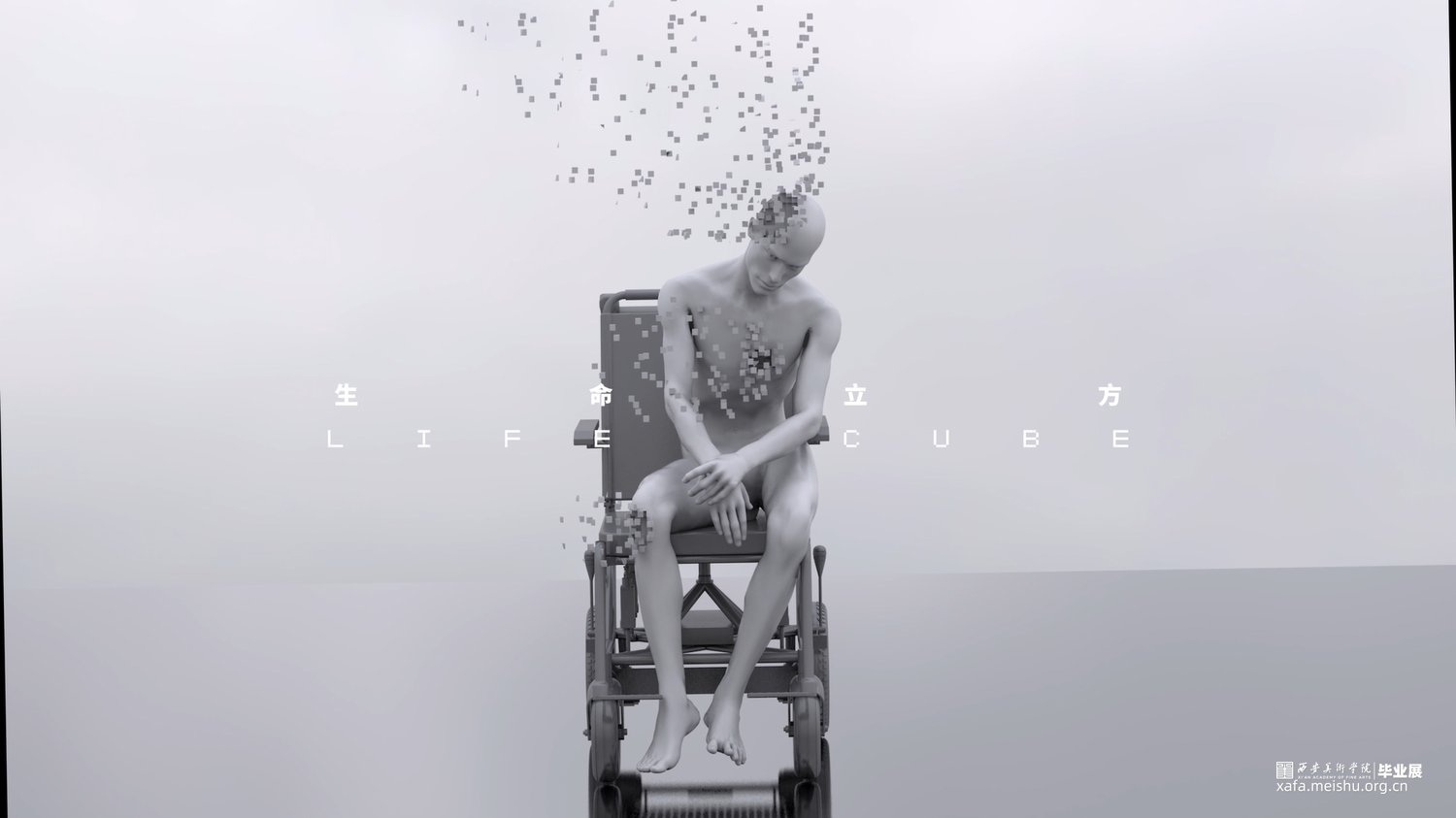 【生命立方】的设计初心是为了反应当今人们不够理解,也不愿了解身体状态的现象。比如忽视新冠的后遗症,甚至对于感染新冠本身就不当回事。亦或者年轻人对于不良嗜好对身体的摧残认识不够深刻,也难以共情年长的人的身体状态。基于此,我们用立方体颗粒来表现人体的生命力,用更直观的方式来表现身体受到的损伤。