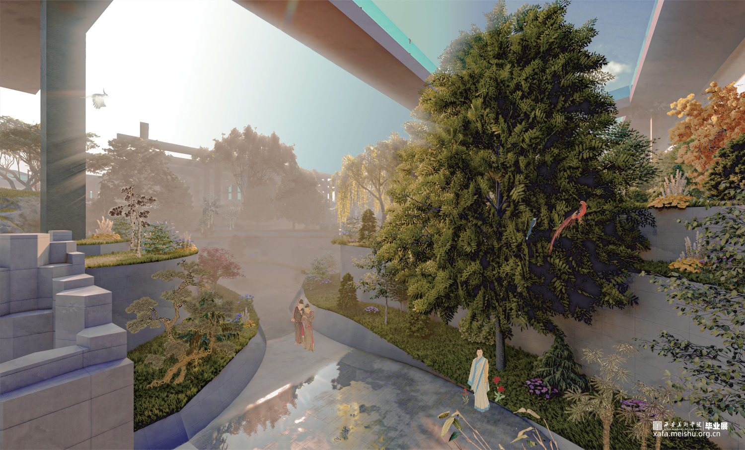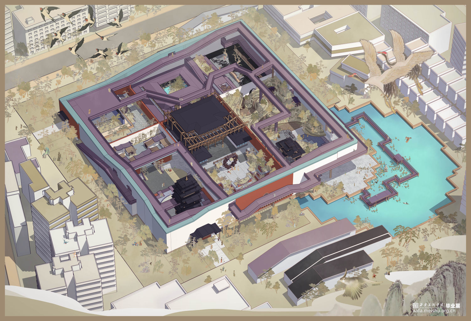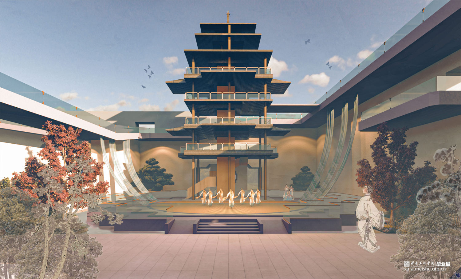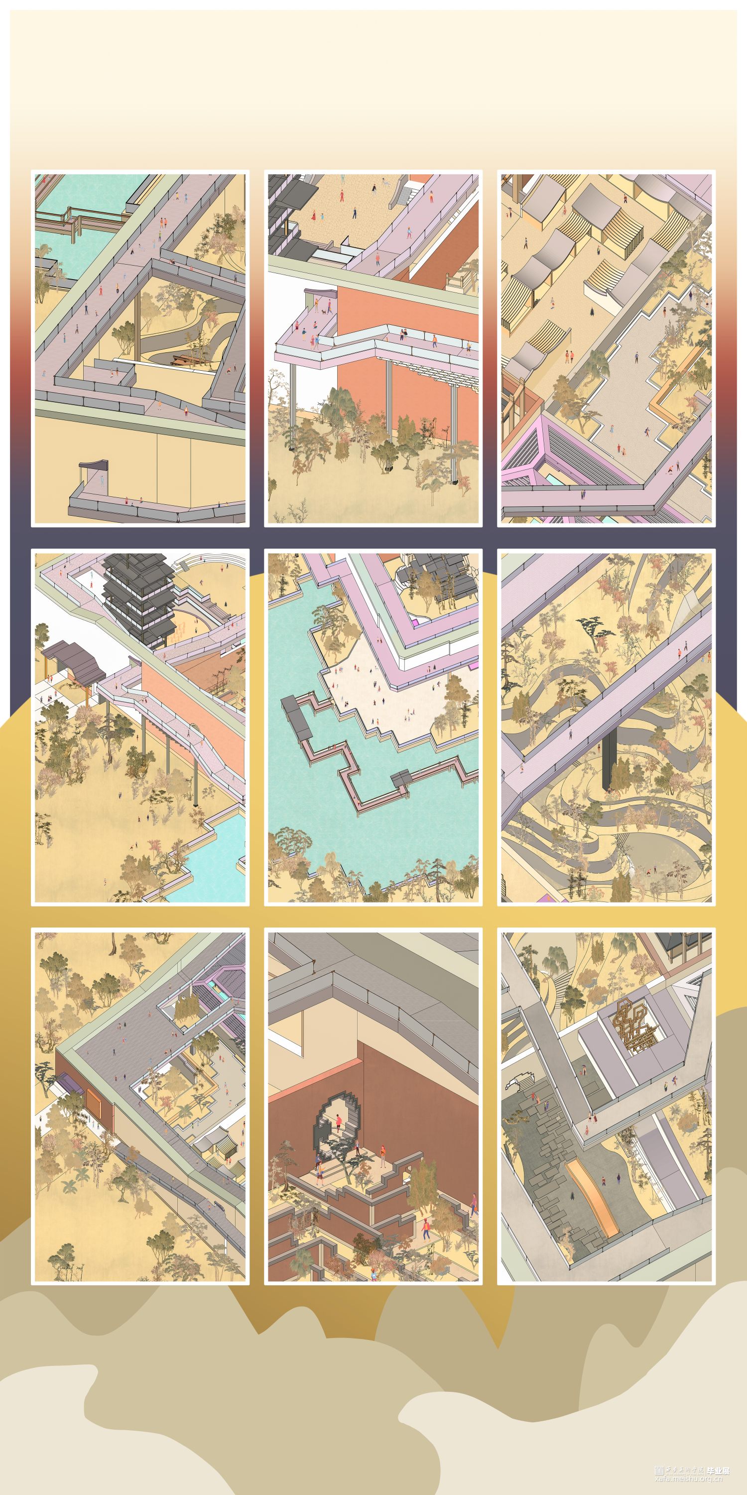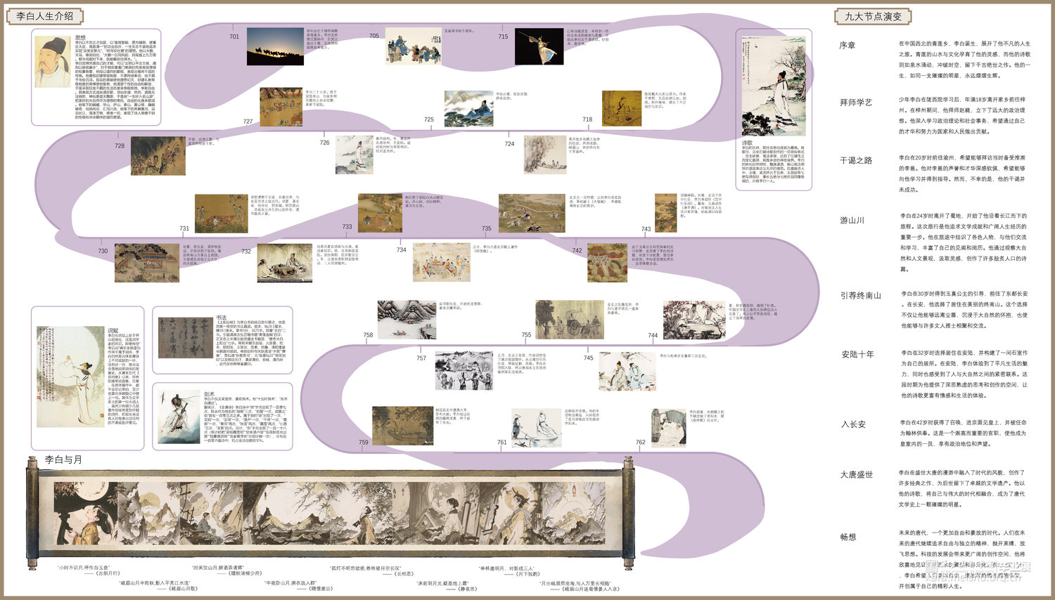 本作品意在进行李白文化体验馆的叙事性空间研究,目的在于传承传统文化,探索李白文化故事的可视化叙事性空间表达方法,经过对李白文化故事的叙事性语言要素的提炼与空间叙事营造匹配、结合、转化,完成李白文化故事的空间叙事转化,并基于时代提炼出李白文化中的优秀精神,发扬中华文化精华,歌颂时代、发扬积极向上的精神。根据诗词意象运用、故事情感提炼结合空间叙事设计原理,进行李白文化故事的空间叙事营造、设计。通过空间叙事设计,探索李白文化故事的空间再现,以此讲述李白文化故事,让体验者更好地感受、认知中国伟大历史人物李白,增强文化认同。李白文化故事的空间叙事再现是一种中国故事的空间讲述方法、指在中国文化的更好传递,实现超越时空、时代的记忆延续。