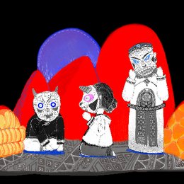 一年一季,春耕的时间又到来了。寨子里的叔叔婶婶开始拿上稻苗去田里耕作。人们各司其职。祠堂里,太伯伯们在制作着新的面具,为不久后的祭祀做着准备。小花,小虎,小熊在央的阿妈们同意后,每日跟在阿伯的屁股后面制作着自己的小面具。太阳东升西落,群山之间的炊烟燃起又熄下。日子慢慢的过着,一年一度的祭祀要开始了,带着傩面具,奉上祭品,燃起鞭炮,敲起鼓来,人们欢歌载舞,寨子里一片欢乐,一起祈求着这一年,风调雨顺,苗儿健康成长。