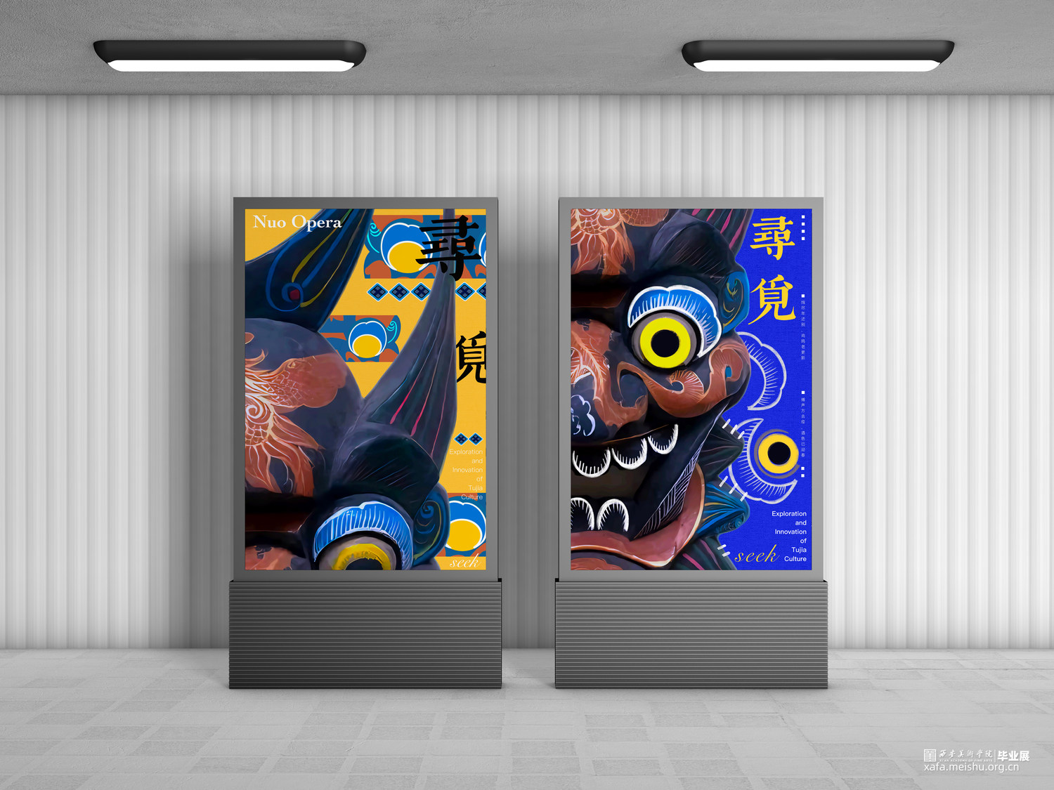 对于现代设计来说,民族元素一直是设计灵感的缪斯,也是展现民族性以及设计多样化的重要窗口。尤其在现代海报的设计当中,融入民族传统文化元素可以使画面更具冲击力和感染力,呈现出更具有视觉效果的设计作品。本海报主要从土家族的视觉元素入手,针对其在现代海报设计中的体现展开研究,旨在探讨土家族元素在现代海报设计中的诸多可能性,以及设计出具有现代设计感的海报作品。使土家族传统文化能够以一种充满设计感的方式呈现在人们的生活中。让人们可以在欣赏海报作品过程中感受传统文化的魅力。以此传承和传播民间传统文化。