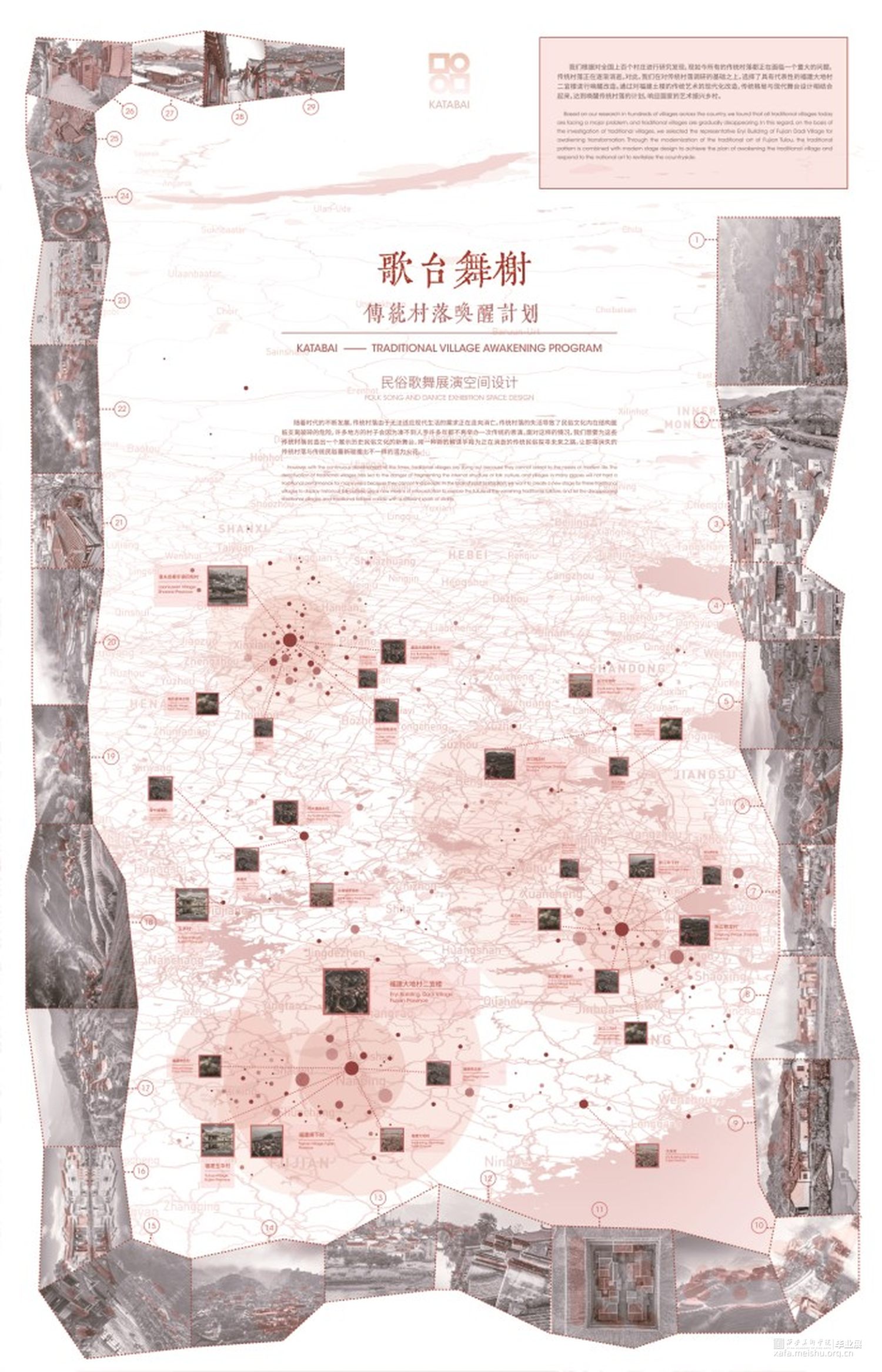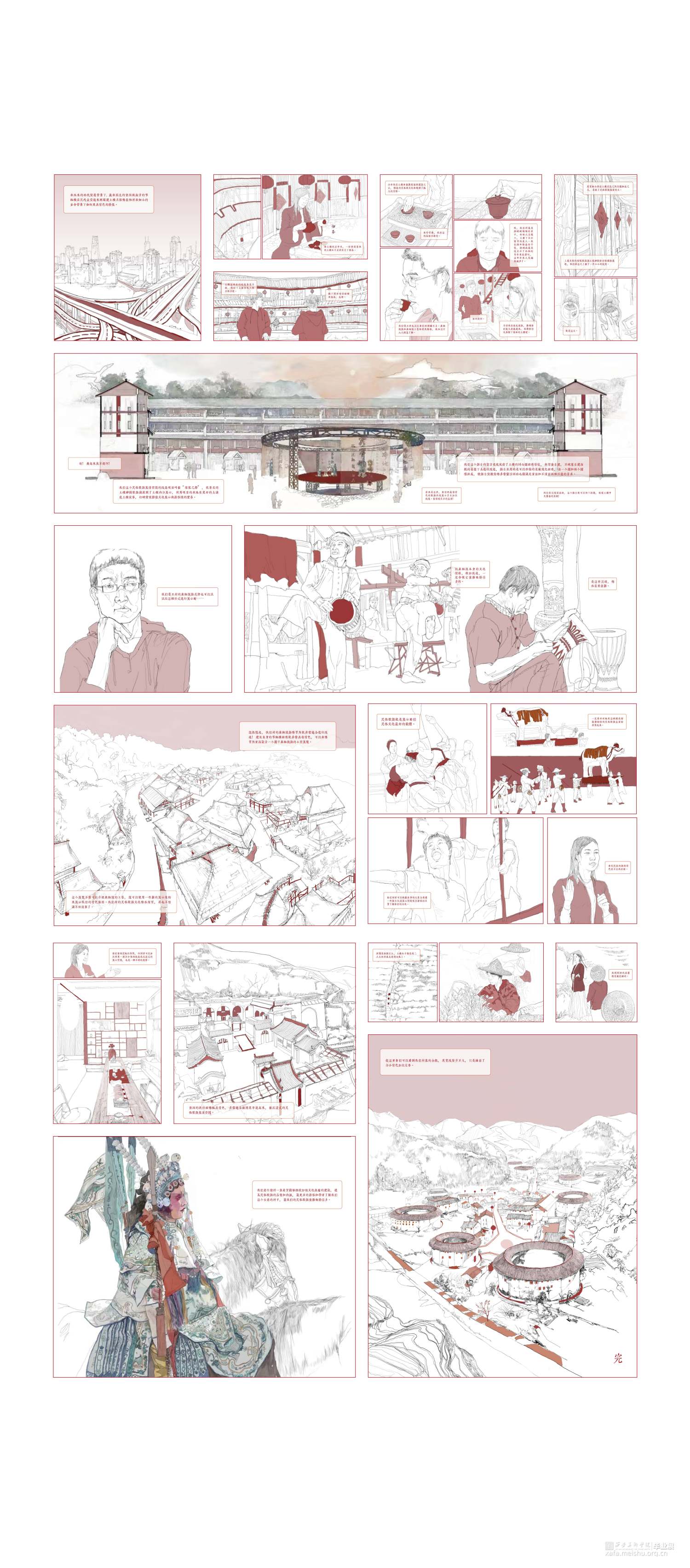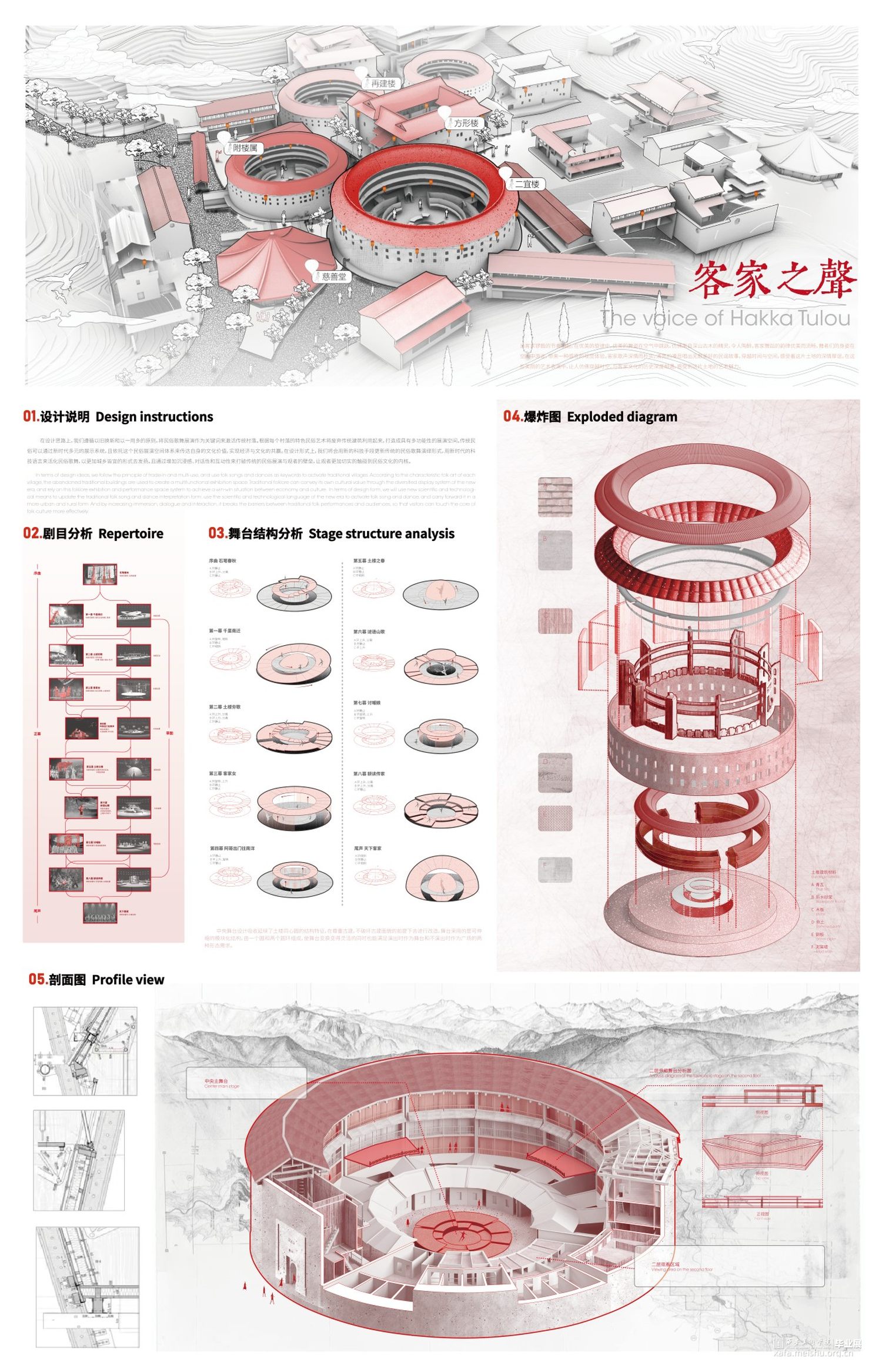 传统村落由于无法适应现代生活的需求正在走向消亡。传统村落的失活导致了民俗文化失传。面对这样的情况,我们希望用一种新的解读手段为正在消逝的传统村落与民俗探寻未来之路:将民俗歌舞展演作为关键词来激活传统村落。根据每个村落的特色民俗艺术将废弃传统建筑打造成具有多功能性的展演空间。这个展演空间体系将会运用新时代的科技手段更新传统的民俗歌舞演绎形式,活化民俗歌舞,让传统村落以更加城乡皆宜的形式去发扬、传达自身的文化价值,实现经济与文化的共赢。而我们的毕设客家之声正是传统村落唤醒计划整个概念中面向福建客家士楼村落的一个思考和尝试。