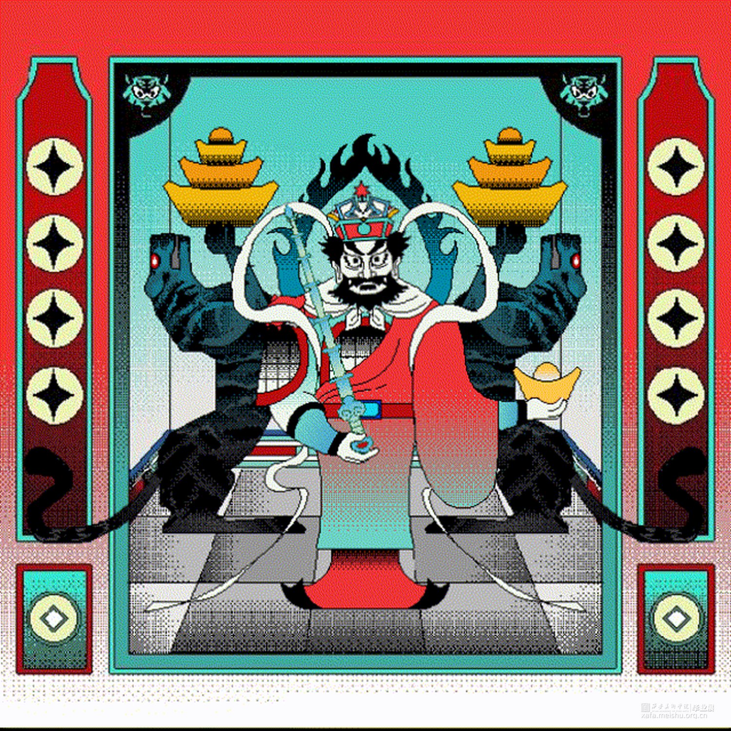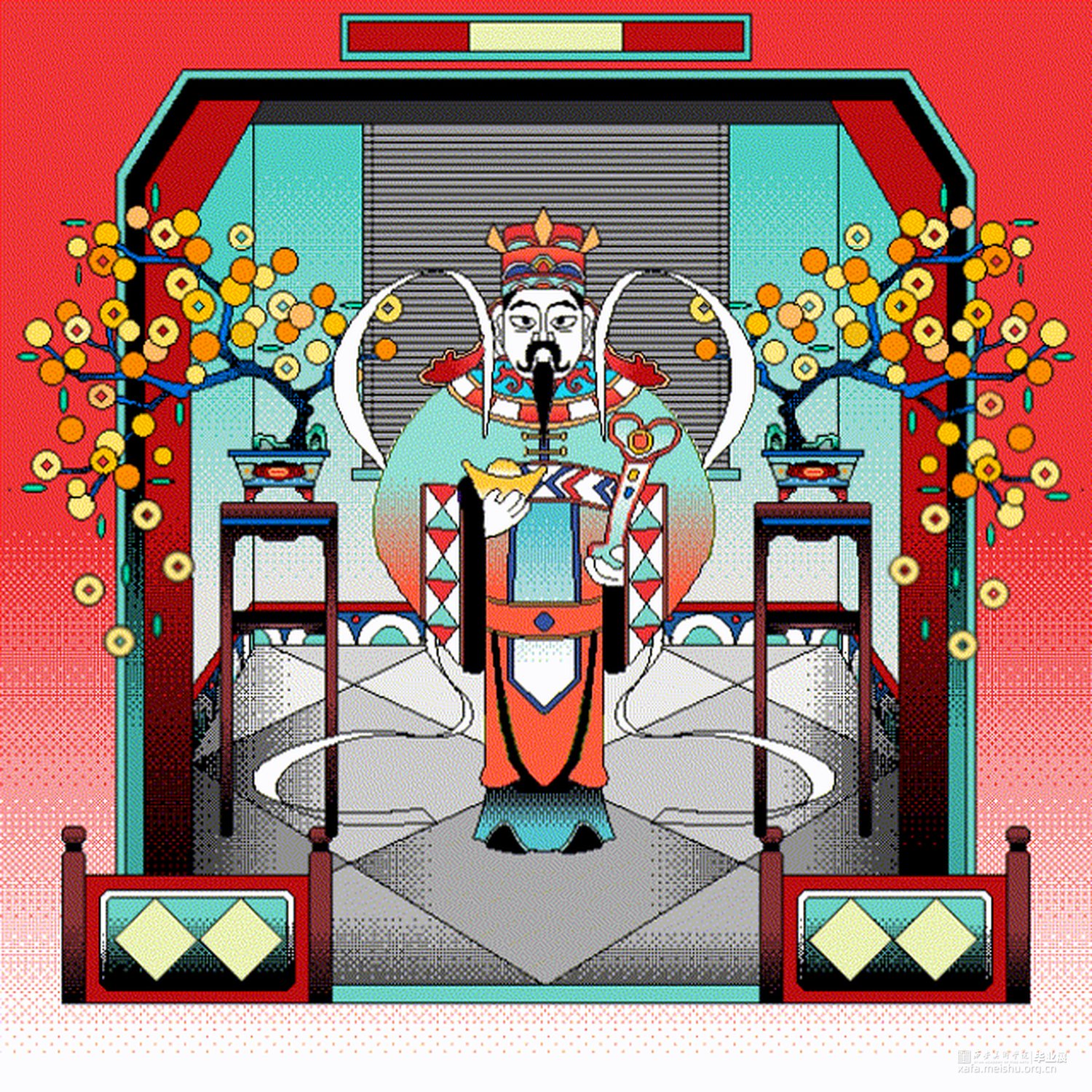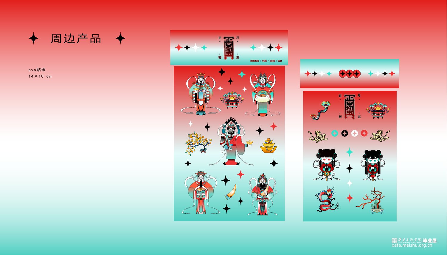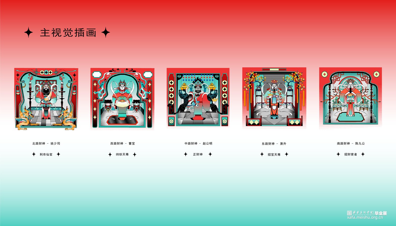 “正月初五”是基于中国财神文化中的“五路财神”一脉进行的插画与品牌设计。
