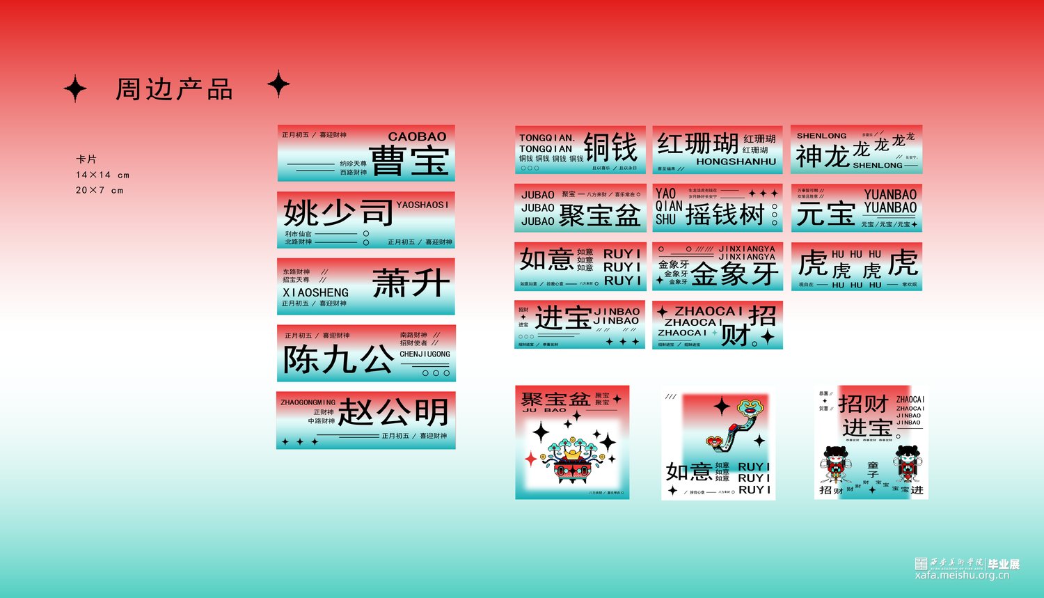“正月初五”的设计灵感与造型元素取自传统年画、民俗传说等。我们对传统的财神形象进行了整理和再设计, 将传统神龛的“门”与财神形象结合,设计绘制了一系列插画,并衍生设计了系列品牌制品。