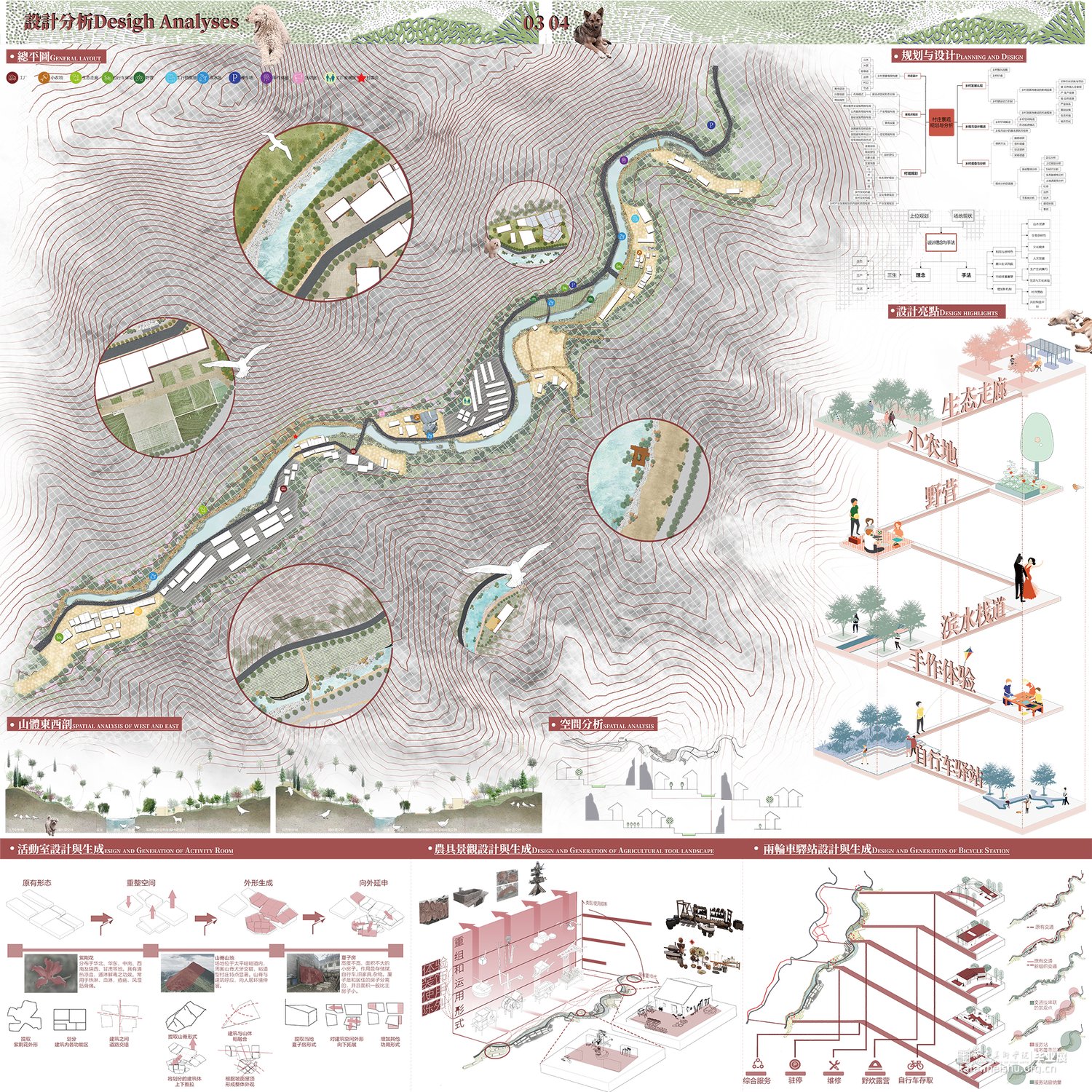 我们的设计地点在秦岭北麓太平峪内的家佛堂村,从村民对自己生活的这片土地的情感出发,结合游客需求,进行调研和设计。我们借用三生设计理念,从“生态”“生产”“生活”三方面展开,设计中包含生态走廊、小农地、农具装置、自行车驿站、竹编手作体验、野营等的亮点,营造出一片繁荣的太平社区景象。