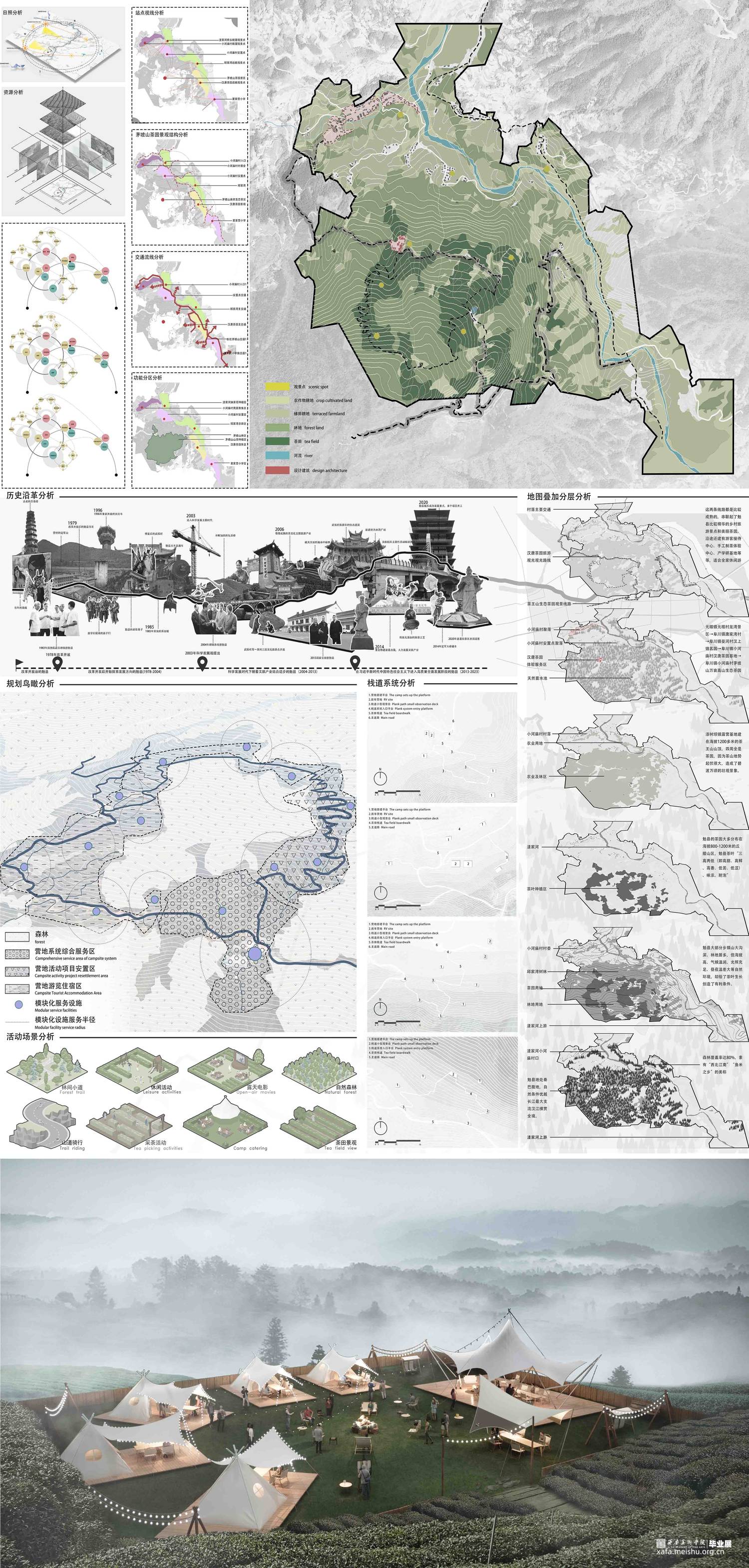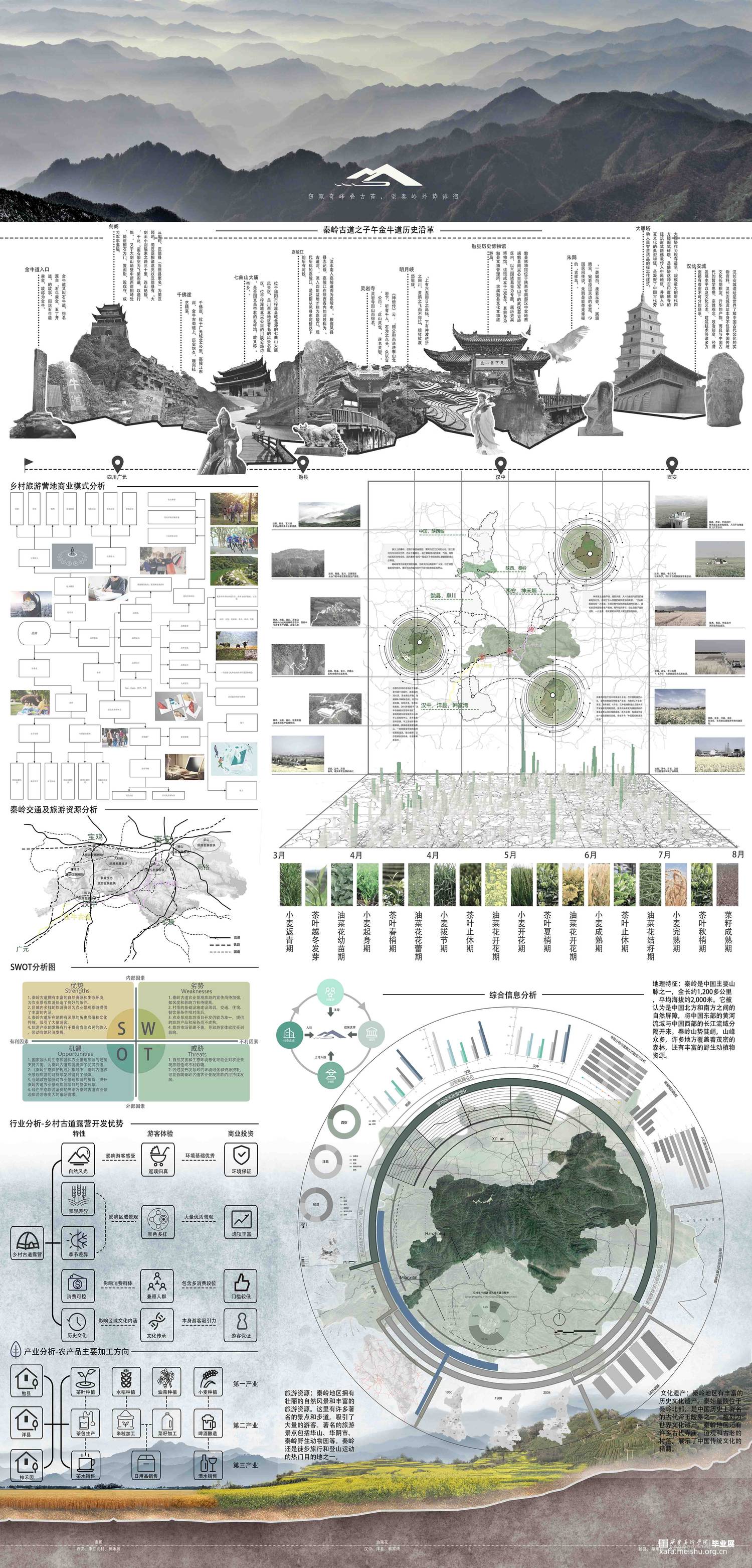 秦岭古道承载着丰富的历史文化遗产,它是中国古代交通和贸易的重要通道之一。其穿越秦岭山脉,拥有壮丽的自然风光,大量的历史遗迹和旅游景区,吸引了大批游客在秦岭古道开发利用的同时,保护和传承秦岭的生态、历史和文化,以及合理管理旅游活动,是实现可持续发展的关键。依托秦岭古道,选取古道沿线特色农业景观进行营地规划设计,融合自然与文化,在设计中融入秦岭古道的历史文化元素;以可持续发展为原则,注重生态环境保护;注重体验与互动,合理规划空间动线和体验活动,重视教育与传承以及安全与便利,为游客提供丰富而有意义的露营体验。