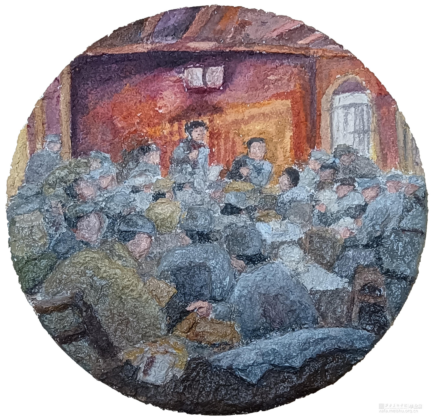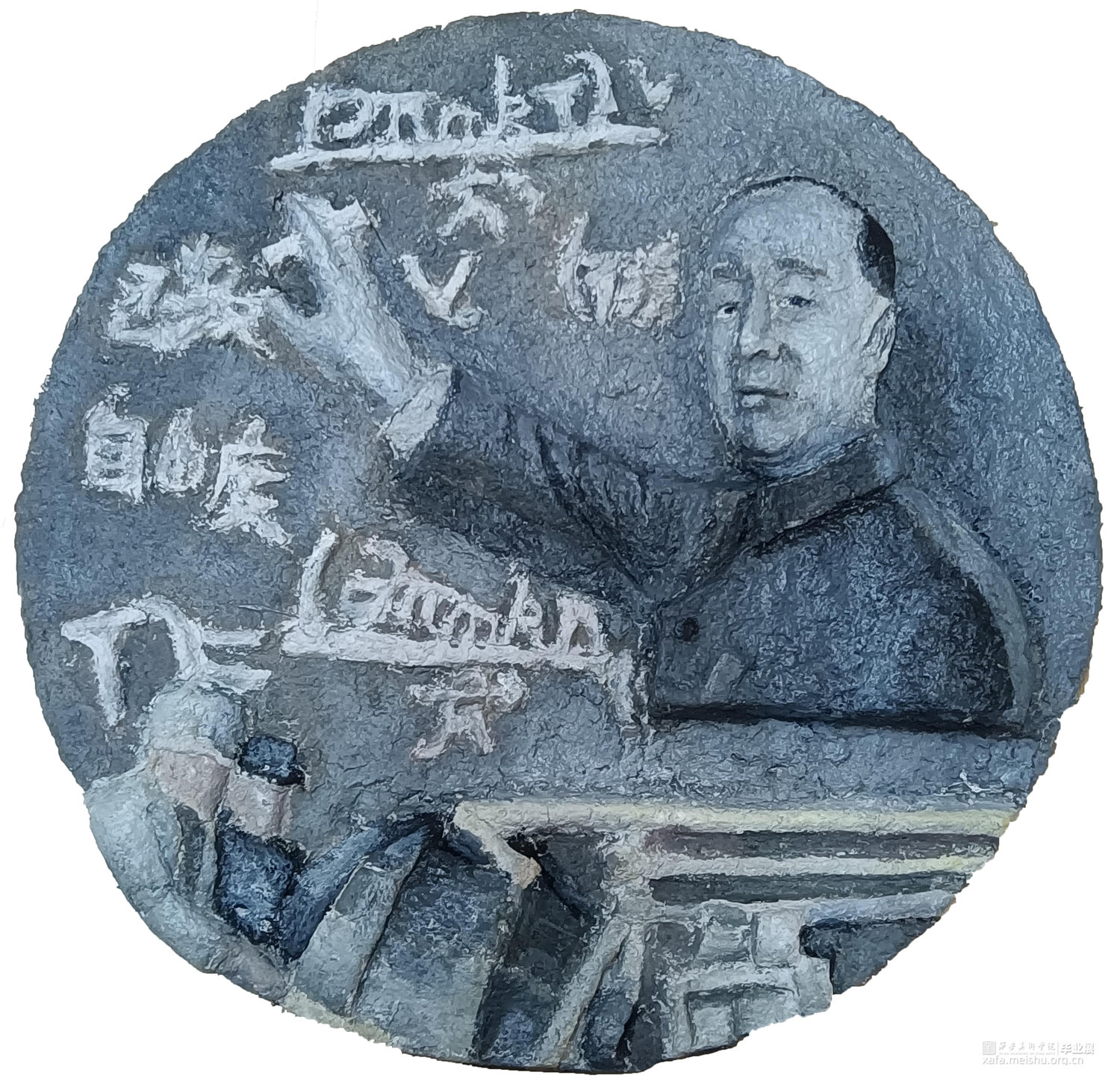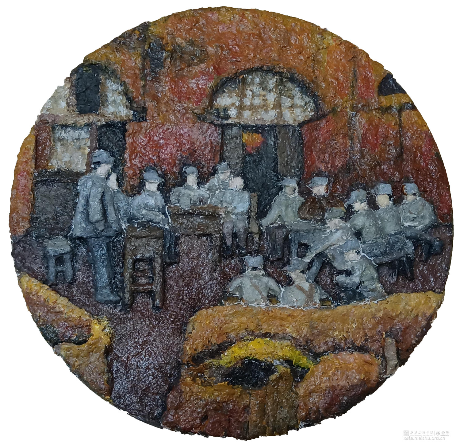 这幅作品用纸浆制作,用浮雕的手法、相对写实的画风来表现那红色历史的一瞬间。