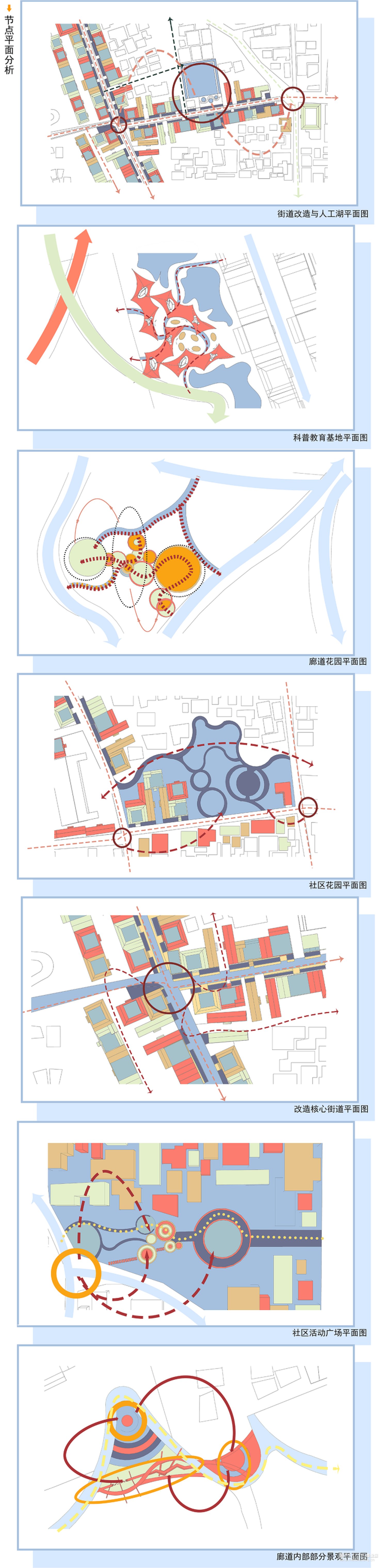 景观设施的改善与设计:对原有的、不方便的景观设施进行改善设计,对原有废弃、荒芜的场地进行重新设计,提升居民与游客的游玩体验感。