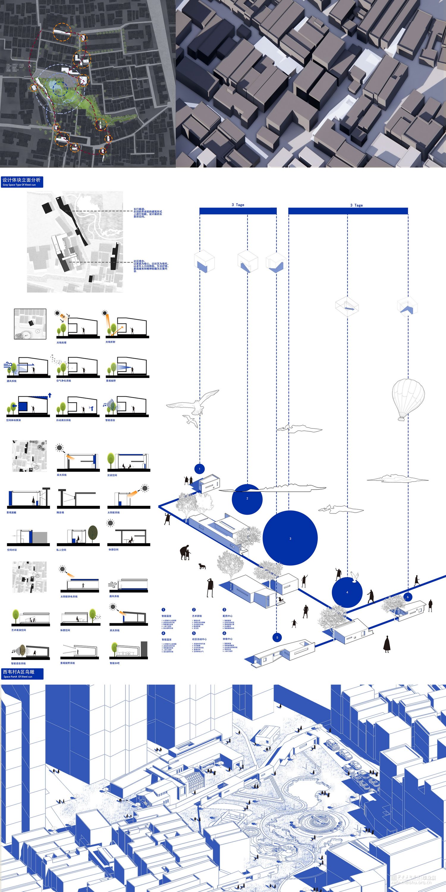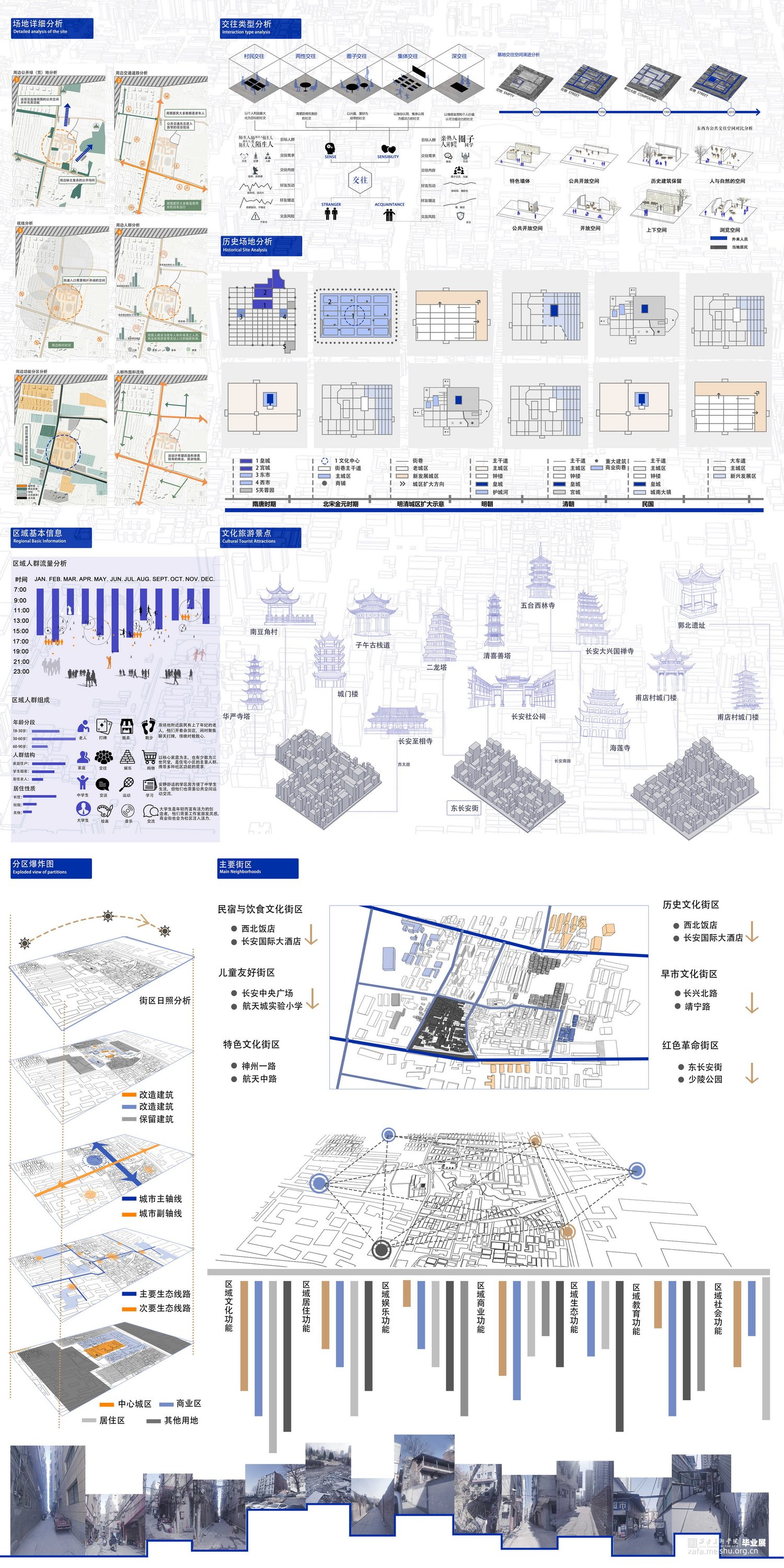 本次设计的场地位于陕西省西安市长安区的西韦村,是一处常驻人口中老年人比例较多的城中村,我们小组对该地进行了详细的实地考察,结合该地的实际情况,从常驻人口、道路状况、地形地貌等各种条件,在不对其原本就有的众多建筑全部拆除的情况下进行了微更新,将其改建成一处对老年人更加友好的社区。