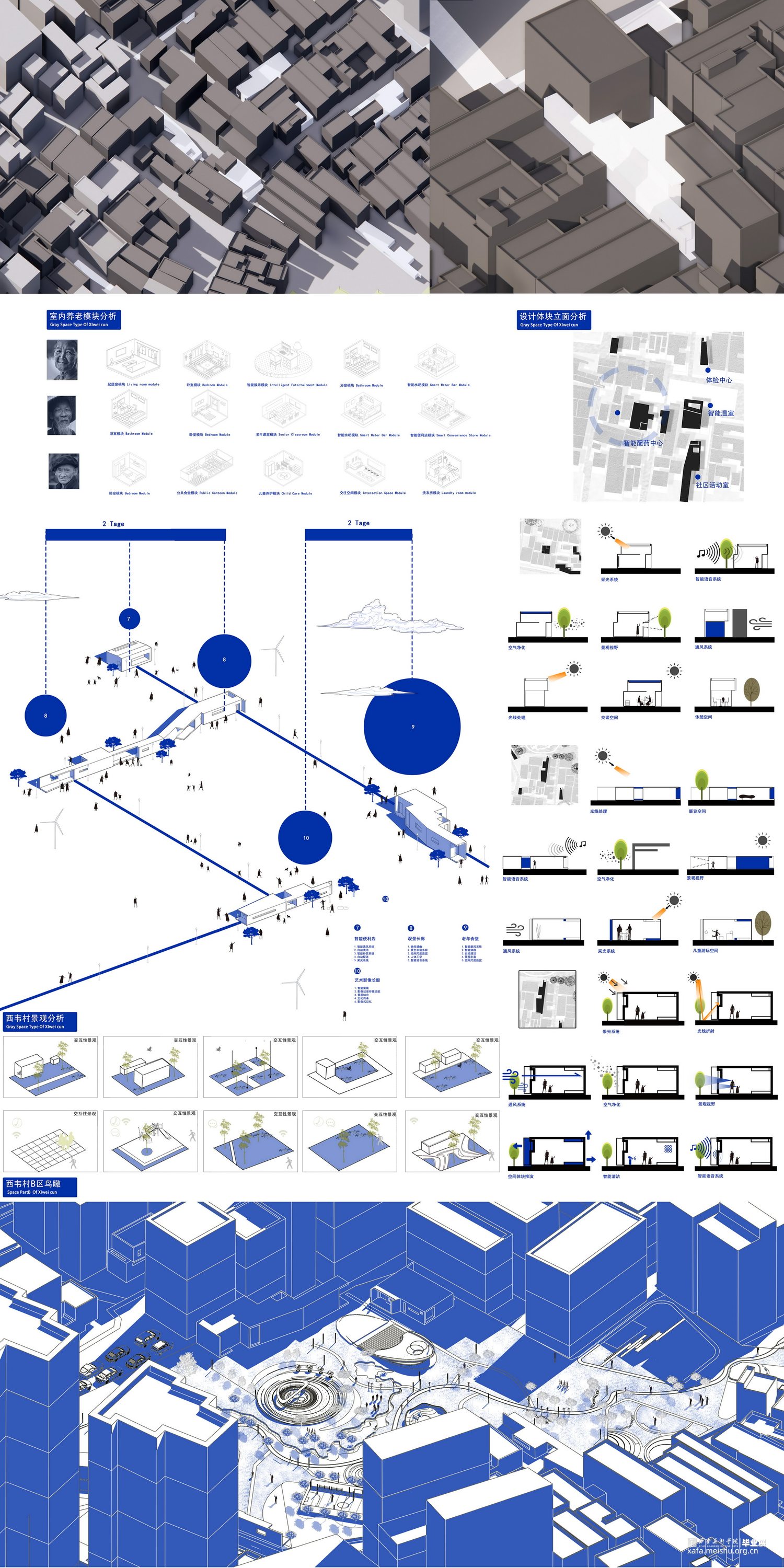 所以,本设计首先从积极老龄化的角度出发,利用交互性景观的初步设计和探讨,以及对建筑体块进行的微更新,来对养老空间的改造进行了初步的探索。