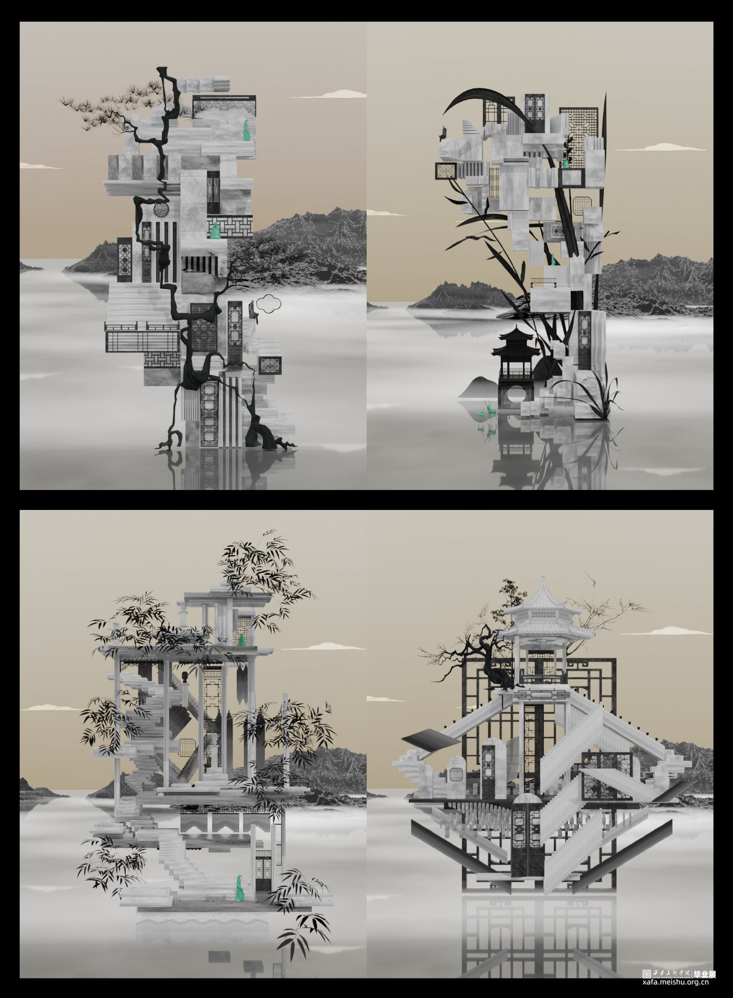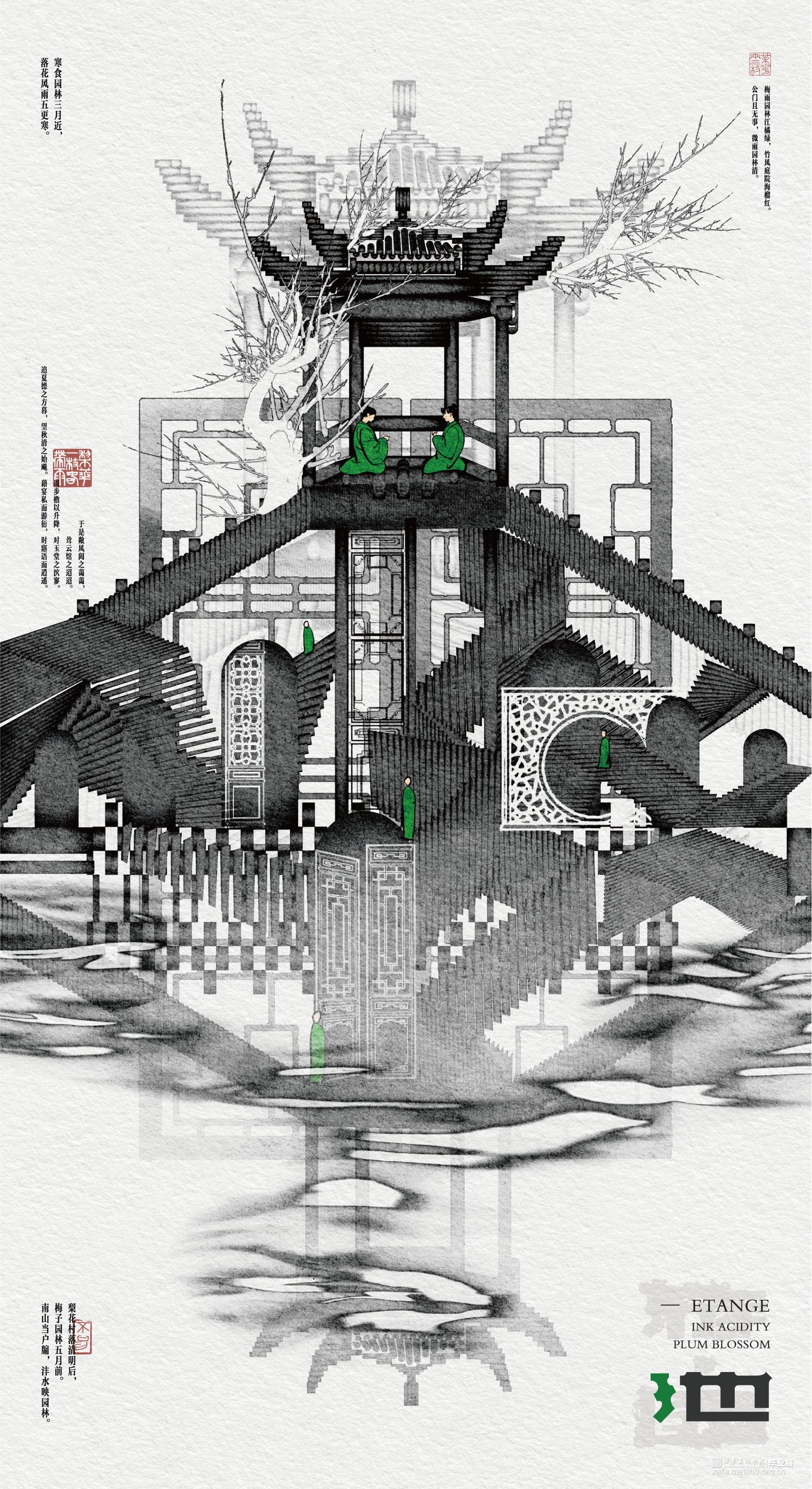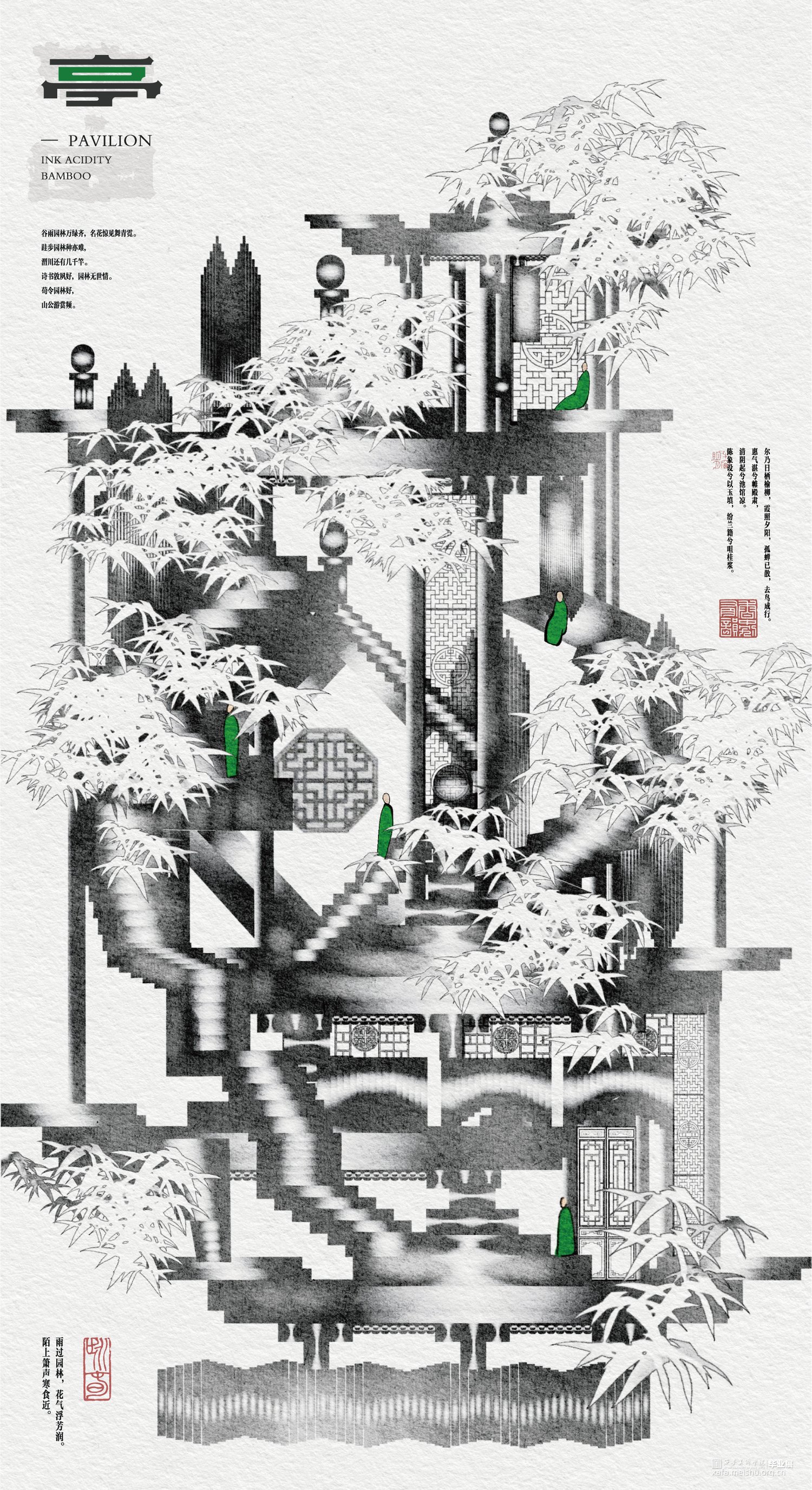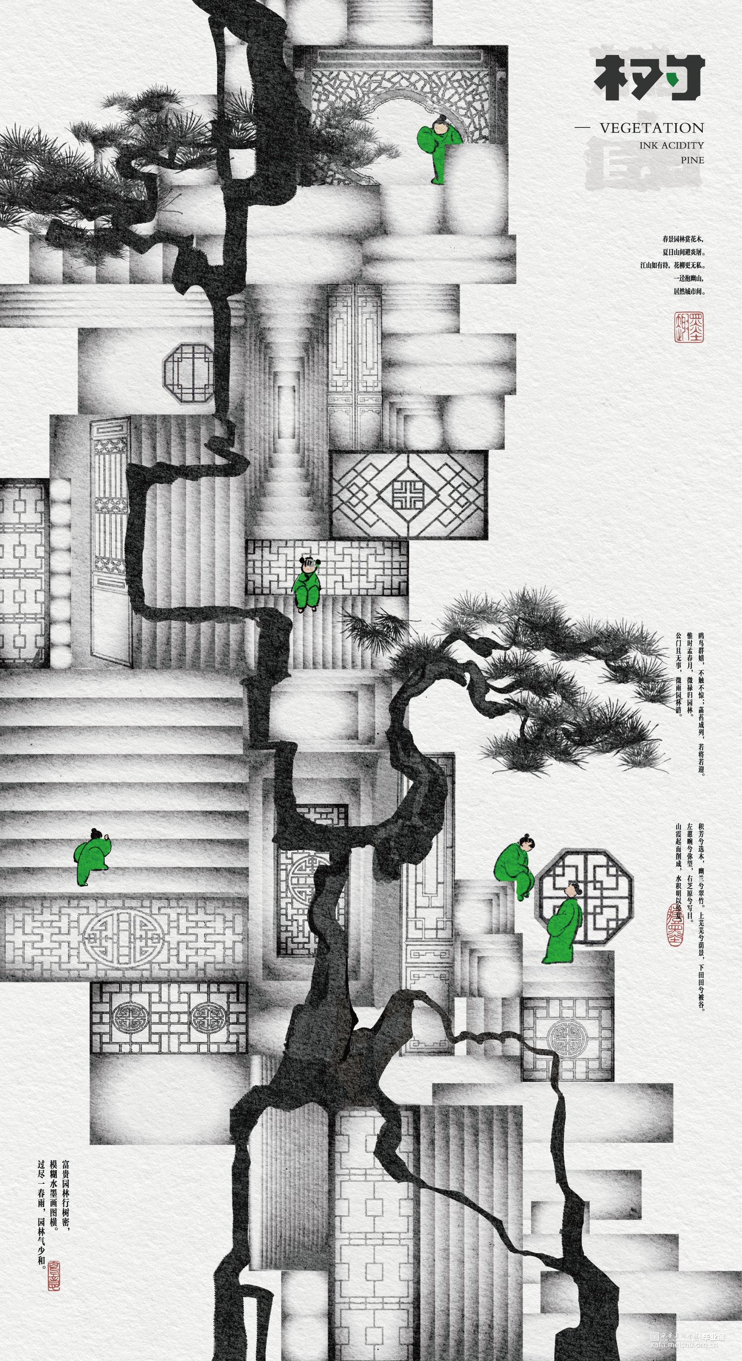 在审美多元化的今天,中国古典艺术中的生命与活力依然给予现代设计无穷的营养,《 游·园 》探讨了中国古典园林的现代艺术化视觉表达。古典园林中体现的中式美学法则,是艺术与设计相结合的典范,是中国精神、中式审美的集中体现,对这一艺术形式的再造赋予了现代设计浓厚的民族特色与中国精神,是新时代设计者对传统文化的新解与复兴。