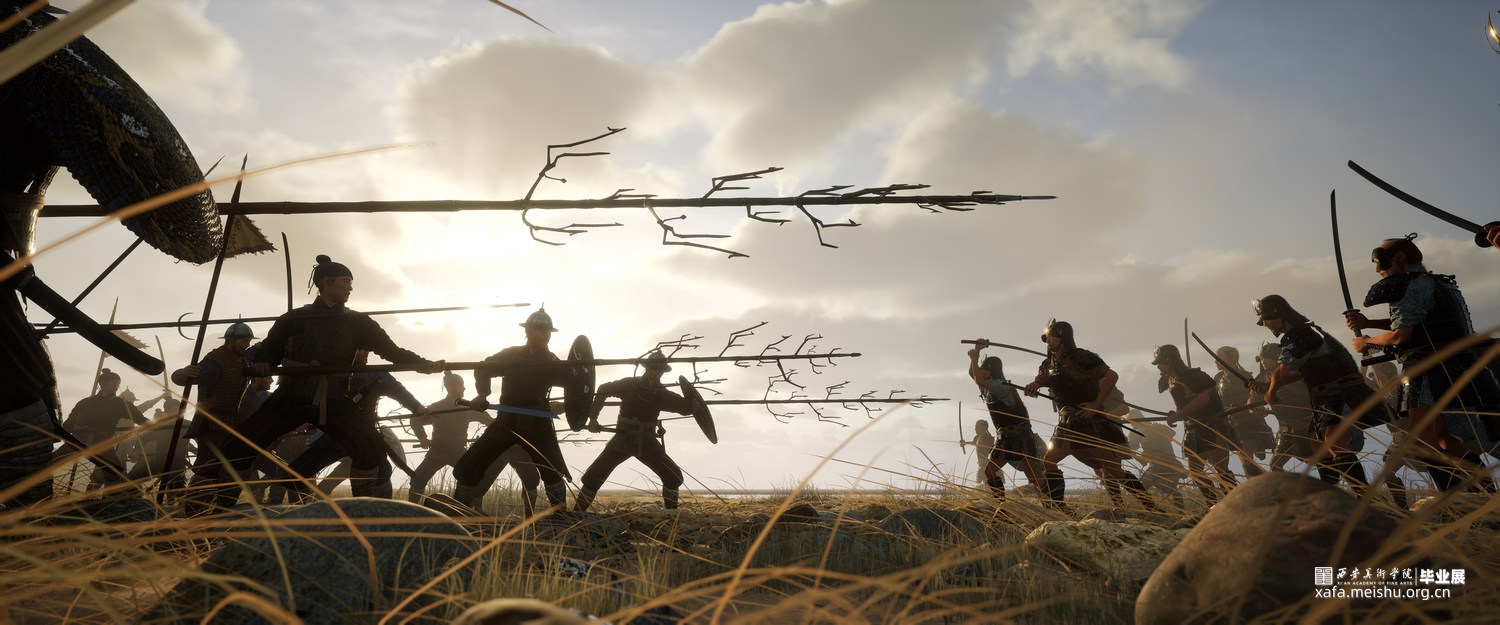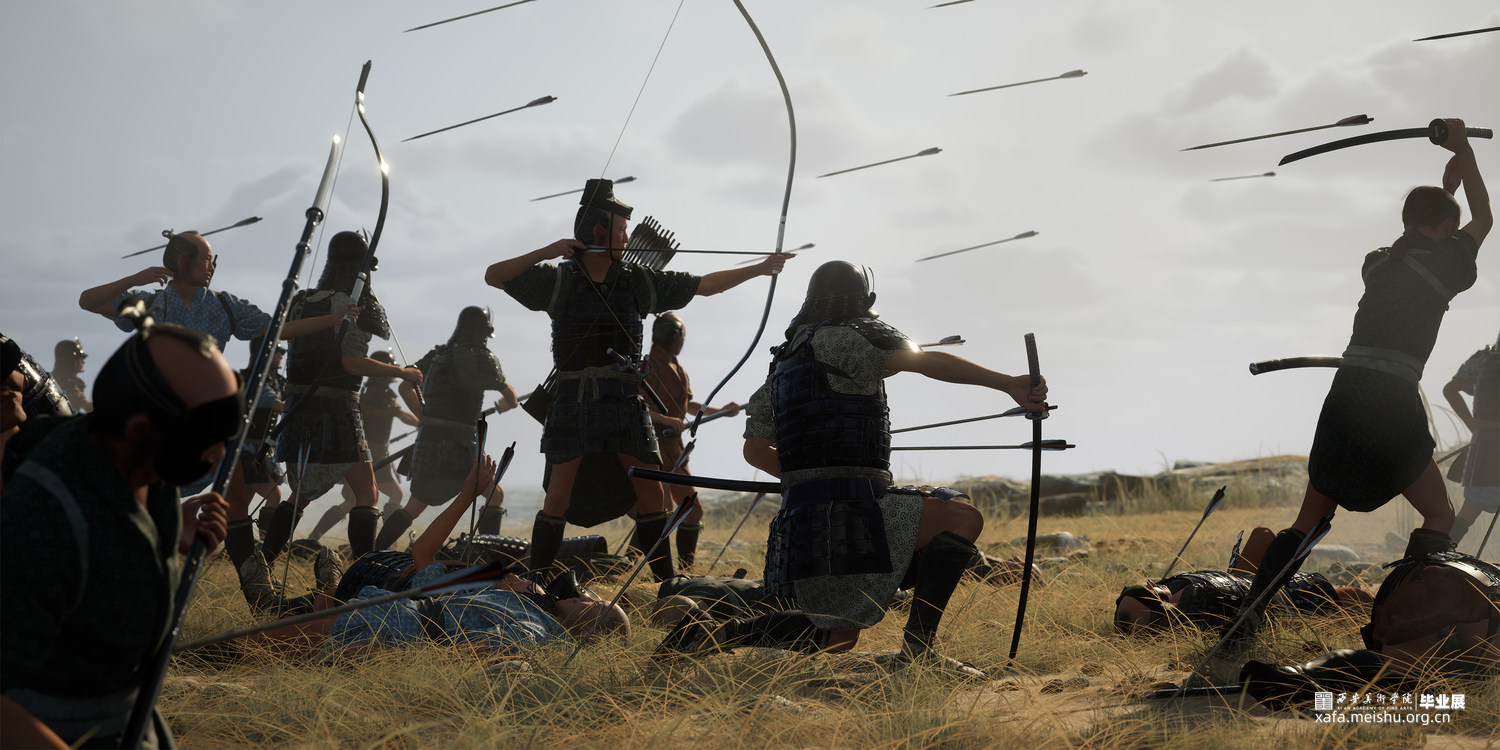 本作品以公元1563年(明嘉靖四十二年)发生在福建沿海的一场抗倭战役为蓝本,运用3ds Max、Maya、Blender、Zbrush等软件建立三维模型,通过Substance 3D Painter制作模型贴图、最终在Unreal Engine 5中完成对静帧图片和动画的渲染,复原展现戚继光将军带领明军与倭寇的战斗场景。