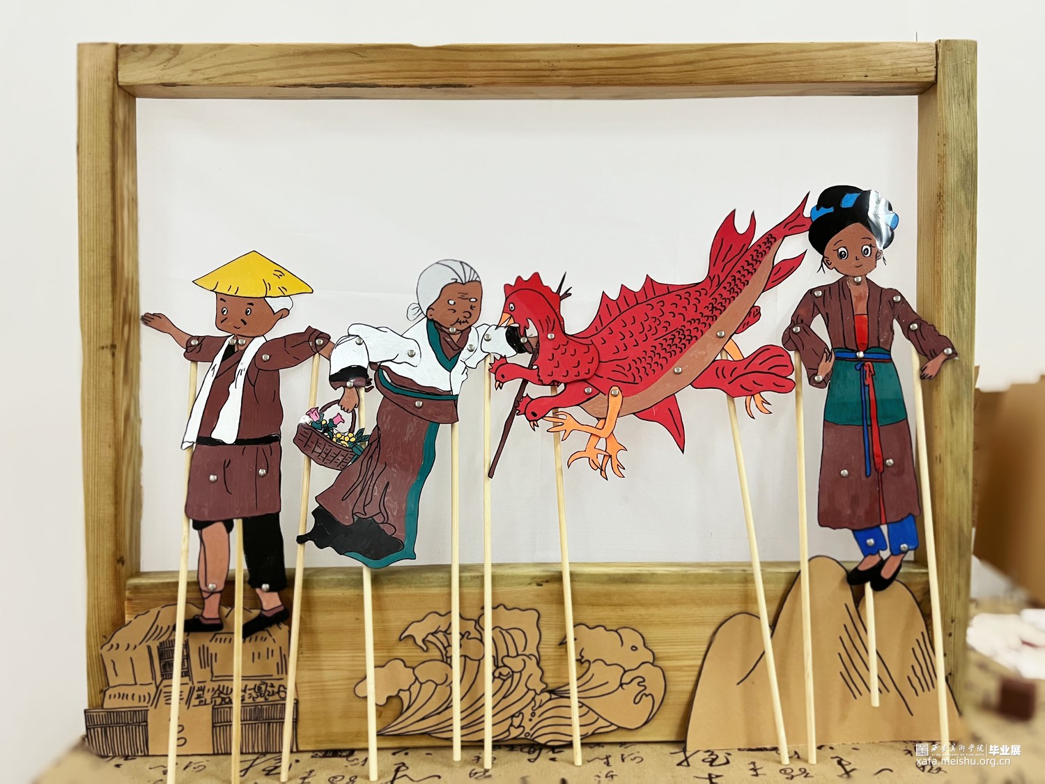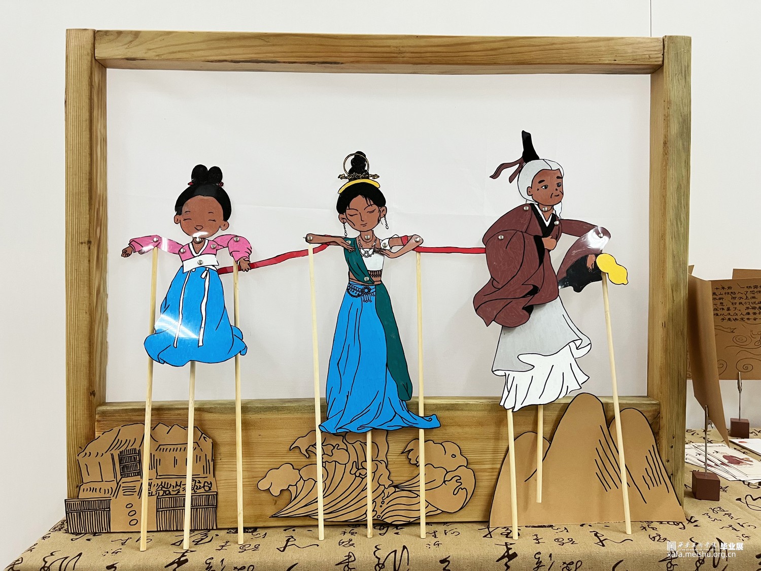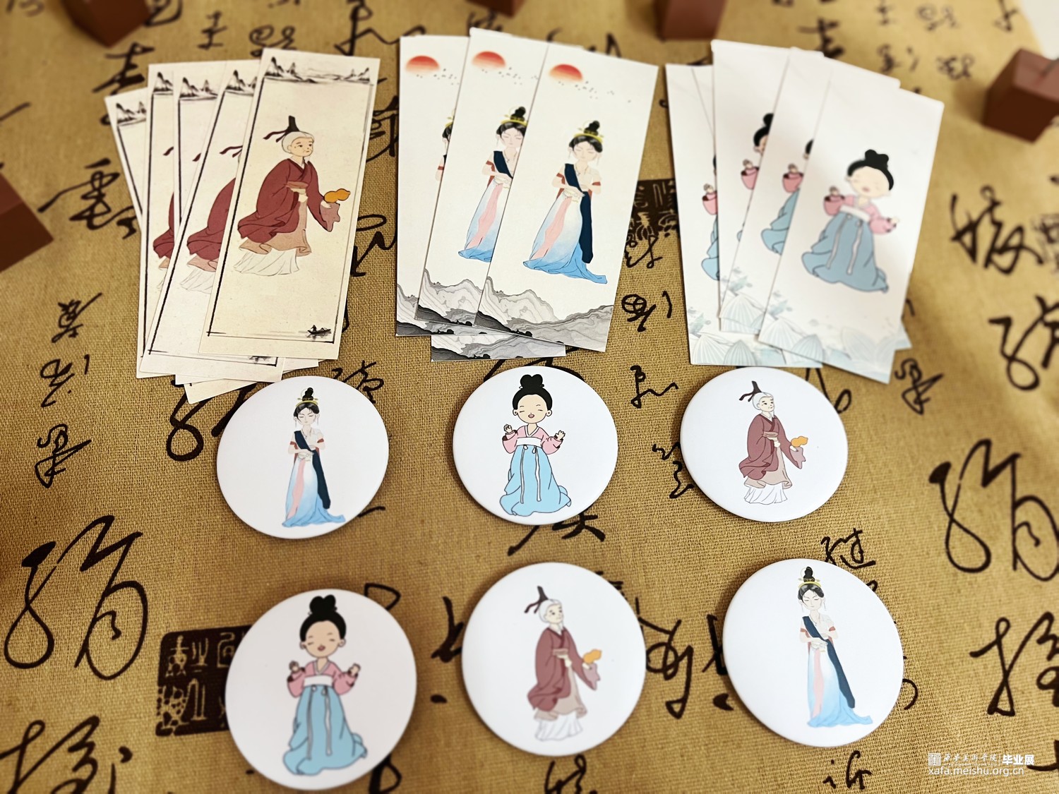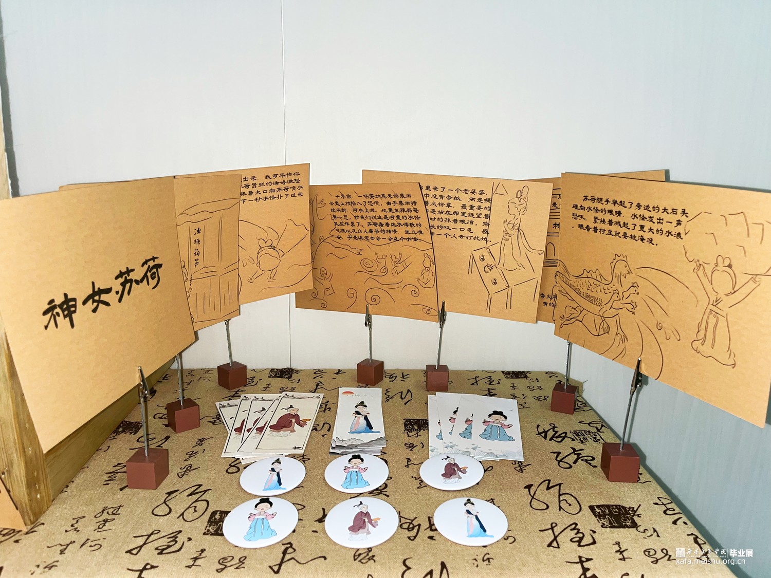 皮影戏是中国民间古老的传统艺术,通常是以兽皮或纸板做成人物剪影以表演故事。本次作品别出心裁,创作出全新故事《神女苏荷》,并用菲林片来制作皮影,丙烯马克笔进行上色,展现出不一样的皮影。同时,配上简洁的图画书,让儿童更容易了解故事从而演出生动的皮影戏。另外,作品加入了书签、钥匙扣、徽章等一系列文创,以实现传统和现代文化的交融。