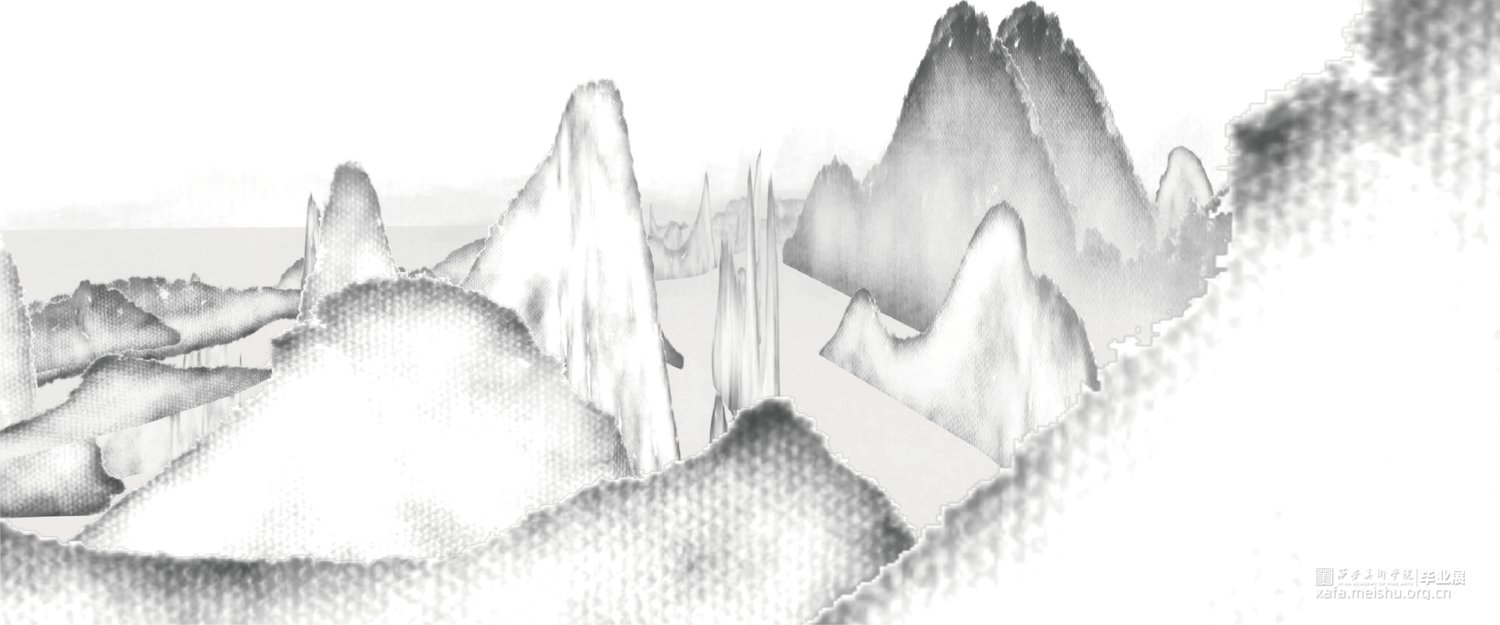 场景划分依据中医思想:中医从古至今讲究天人合一,人与自然和谐共处理念,中医的整体原则尤其强调了人体生理、病理现象的阴阳五行说,进一步阐明人体内外环境统一性的“天人相应”的整体观念。在一场景从经络图进入到虚拟空间中可以看到:人体经络化为河水长流,人体其他地方化为山型,河流贯穿其中,意旨经络如流,脉脉相通;河水流下化为阴阳,想要体现阴阳学说是以自然界运动变化现象和规律来探讨人体生理功能病理变化的,中医也是以阴阳五行学说为基础的祖国医学理论体系;二场景的转换为从阴阳中进入到意向化的内照图-内经图。古人在内照图中定义了人体五脏和六腑的位置,还描述了中医中的丹田概念等。中医藏象学说是研究人体各个脏腑的生理功能、病理变化及其相互关系的学说,是在阴阳五行学说的指导下,概括总结而成的。在意象化场景中,对应脏器对应相应属性呈现,例如肝属木,即为一片树林;心属火,即为火焰燃烧。整体二场景空间呈现为视觉三维的内经图,内经图对应内照图,意为:人体内如宇宙,亦有阴阳五行,须顺昼夜四季,体感温凉寒暑,顺天应时。