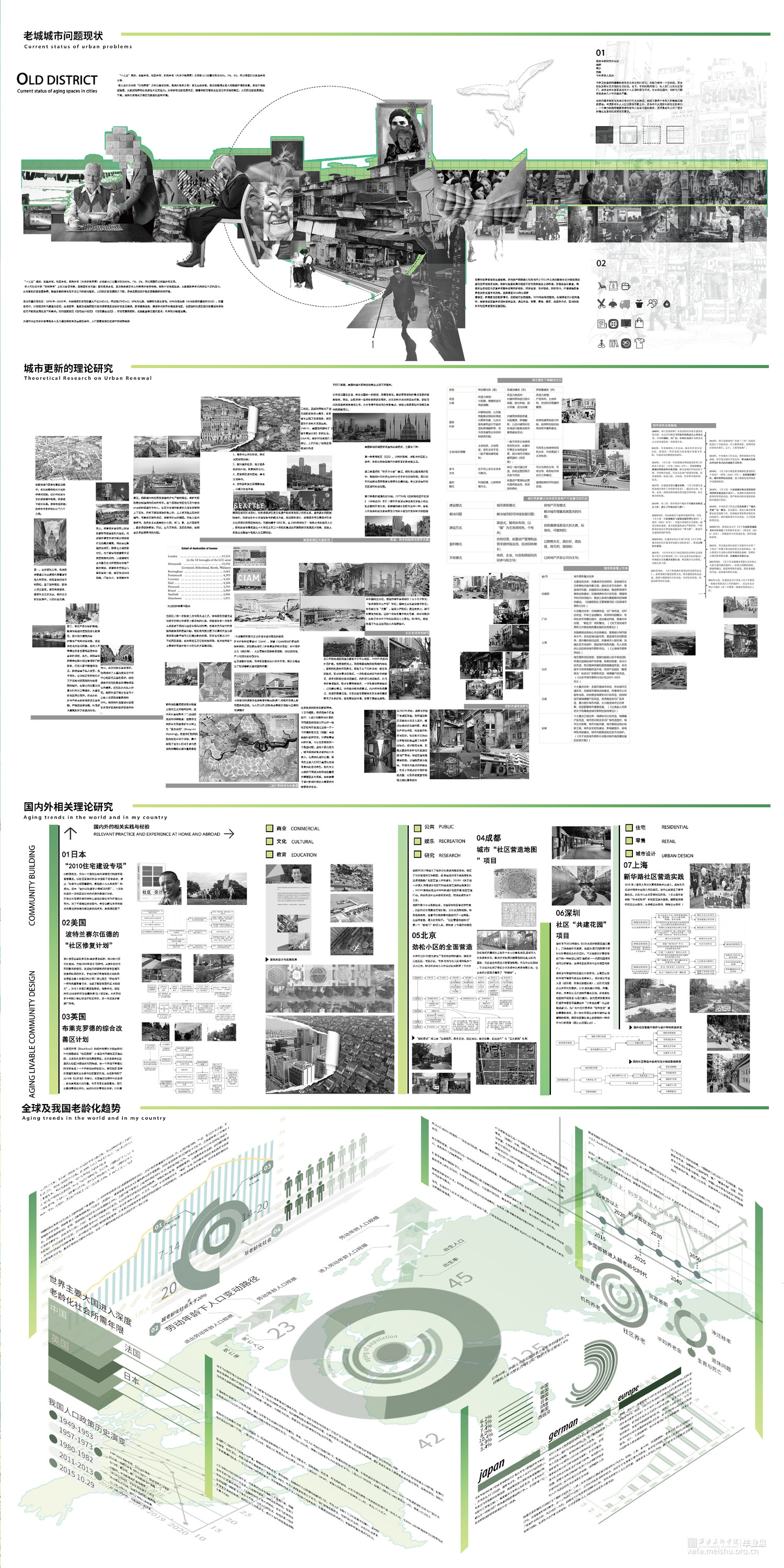 在老城更新过程中,集市型空间是一种重要的城市空间形态,可以为老城区注入新的活力。目前,我国老城区集市型空间的发展现状较为复杂,既有一些成功的案例,也存在一些问题和困境。首先,成功案例的出现表明了集市型空间在老城区更新中的重要作用。例如,北京市的南锣鼓巷、成都市的宽窄巷子等著名老城区都通过恢复集市型空间的历史形态,吸引了大量游客和商家,形成了具有地方特色的文化商业区。然而,老城区集市型空间的发展也存在一些问题和困境。首先是规划设计不合理。在许多老城区的集市型空间规划和设计中,忽视了历史文化和地方特色,盲目模仿西方的商业空间模式,导致空间单一、风格雷同,难以吸引游客和商家。其次是商业经营困难。由于老城区集市型空间的基础设施和服务水平相对滞后,商家经营难度较大,导致很多商家无法在此立足发展,从而影响了集市型空间的活力。最后,老龄化也是老城区集市型空间发展面临的问题之一。随着老龄化的不断加剧,老城区集市型空间的主要顾客群体逐渐减少,从而降低了商业经营和空间利用效益。因此,在老城更新中,需要重视集市型空间的发展和营造,规划和设计要注重历史文化和地方特色,创新经营模式和服务水平,以提高集市型空间的活力和吸引力,进而促进老城区的发展和更新。