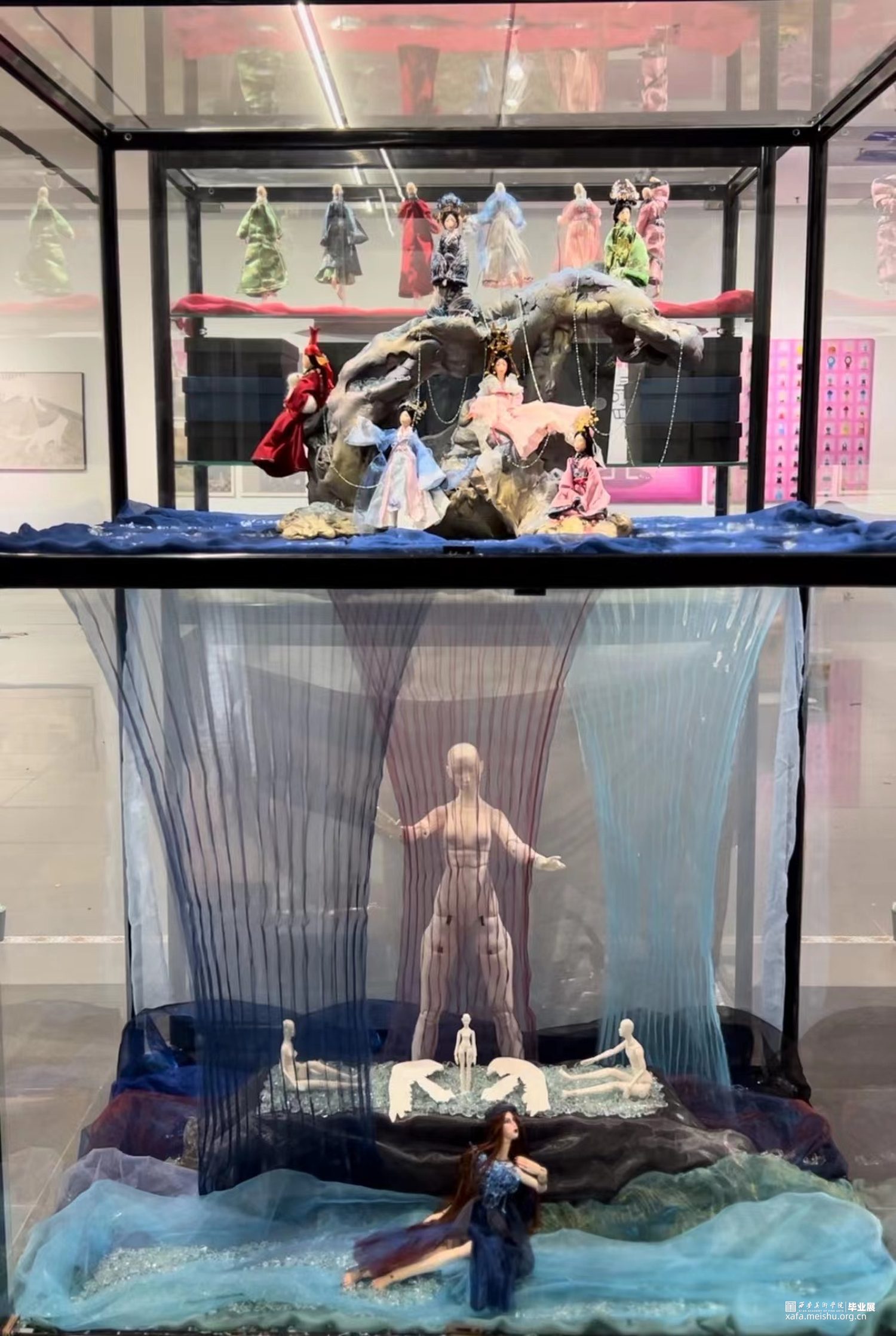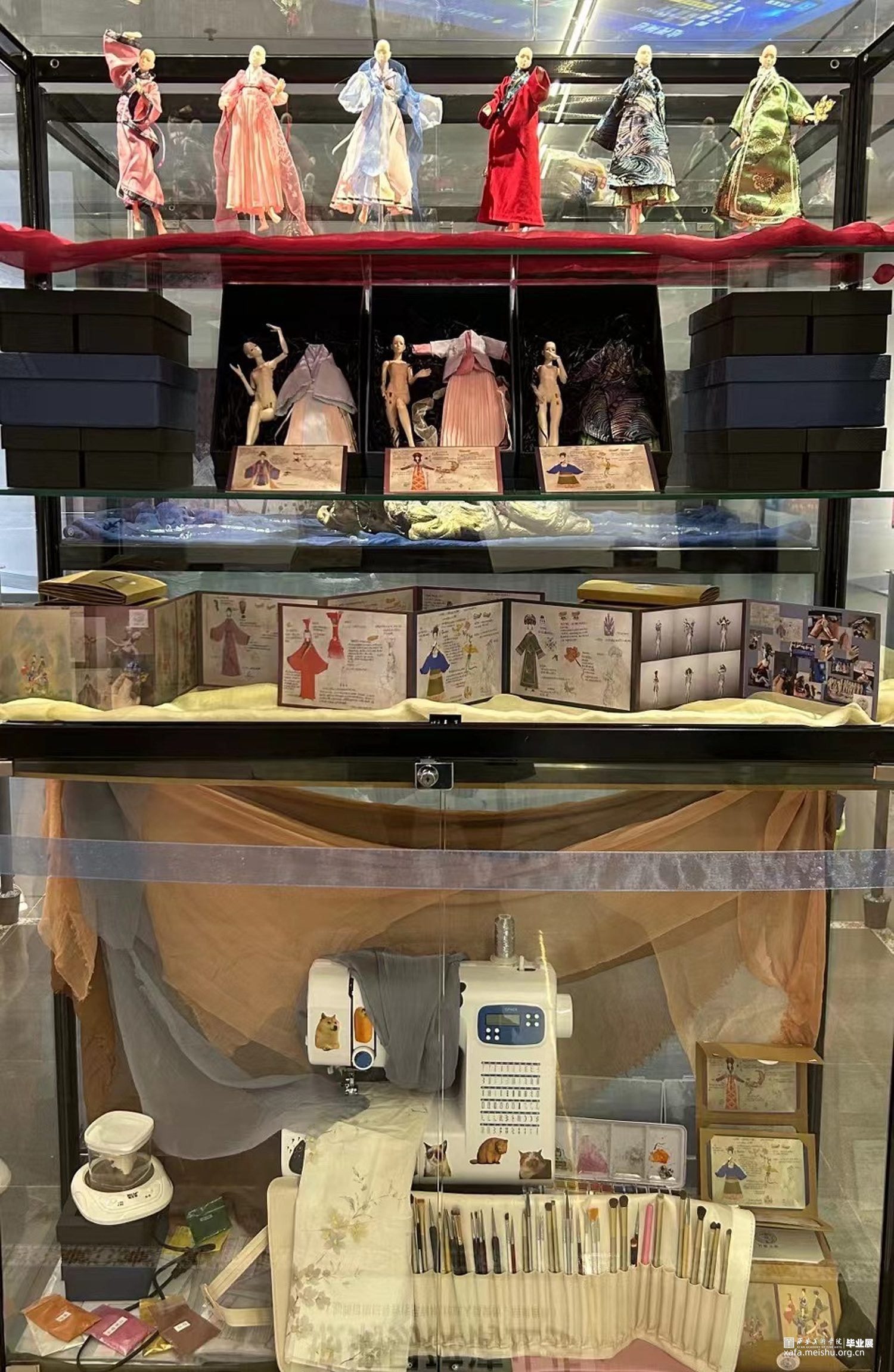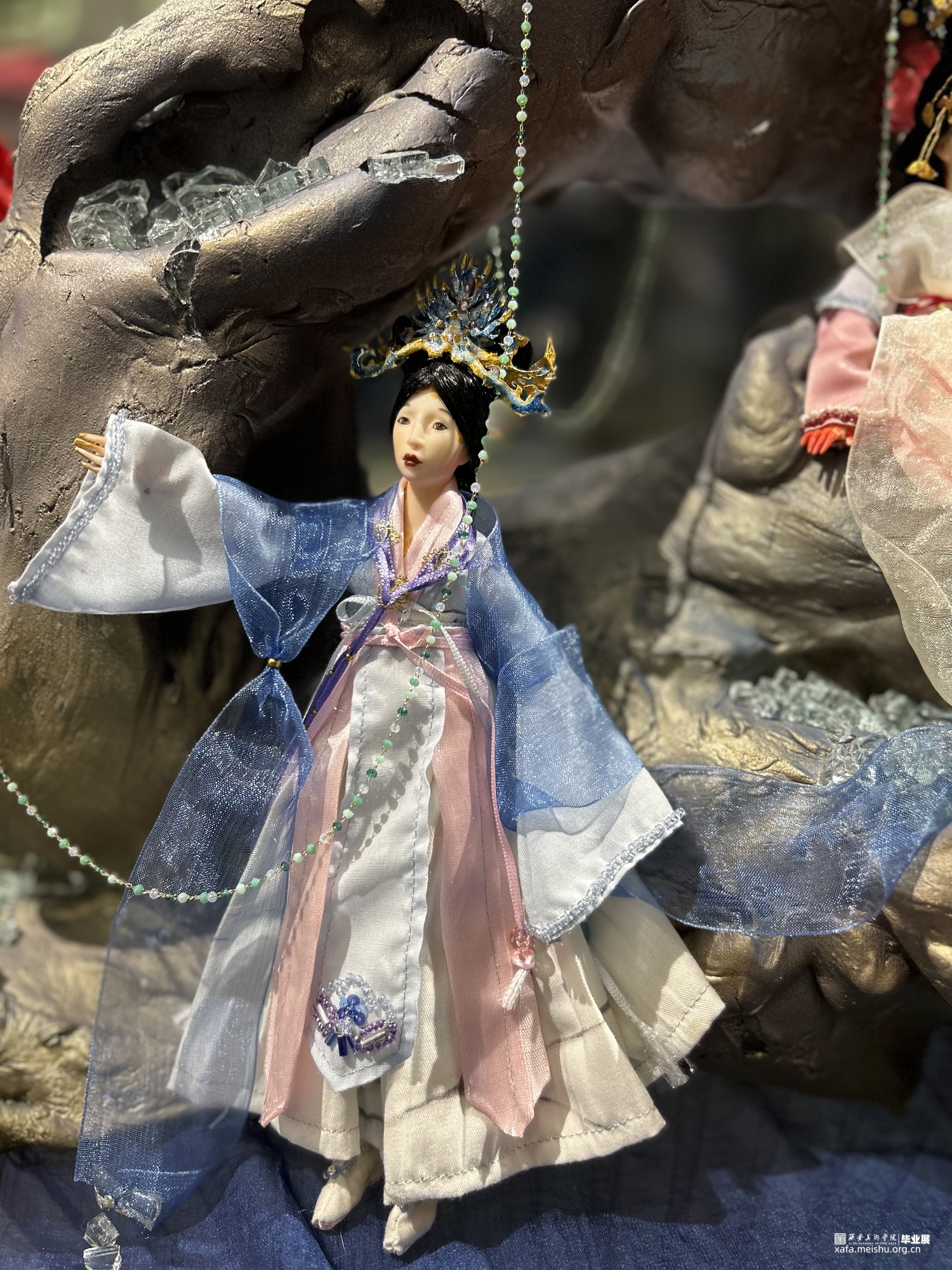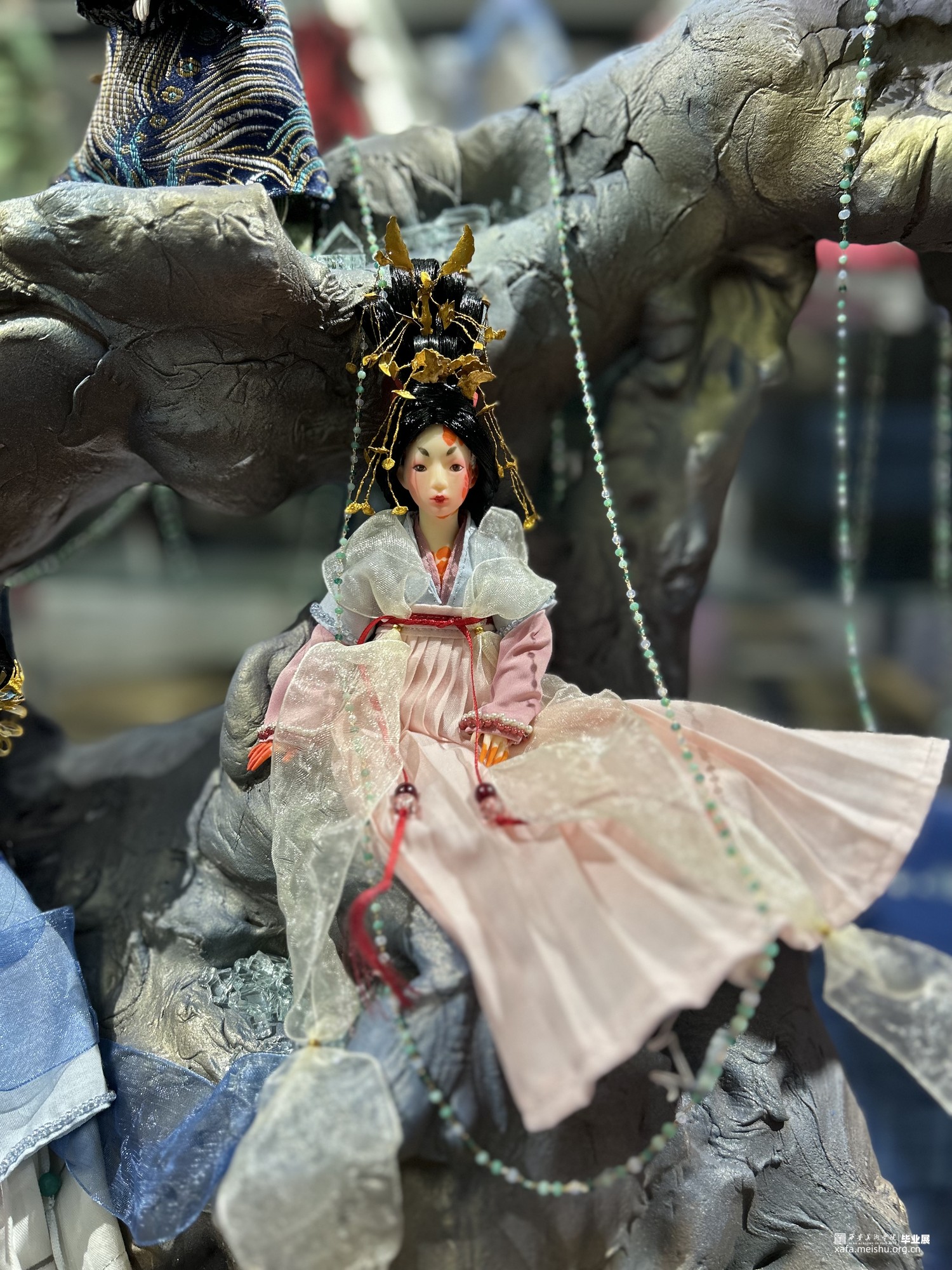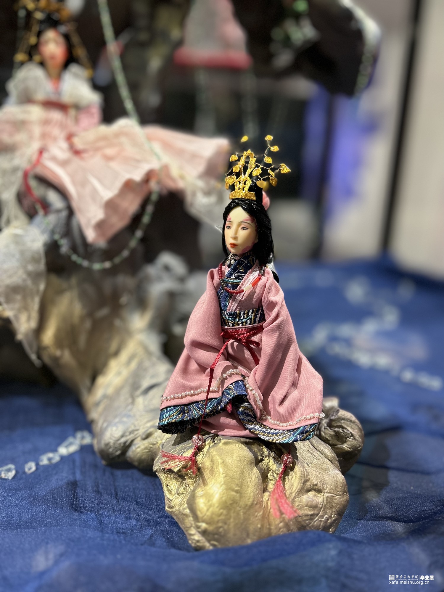 第一部分为手工艺术创作,主要为王沥萱制作完成,通过对历史文献的考察和博物馆实物参观,对汉唐宋元明清六个朝代的女性形象,用人偶的形式进行具有时代特征的再创作,主要包括,服饰,头饰,妆容等,展现传统风貌。