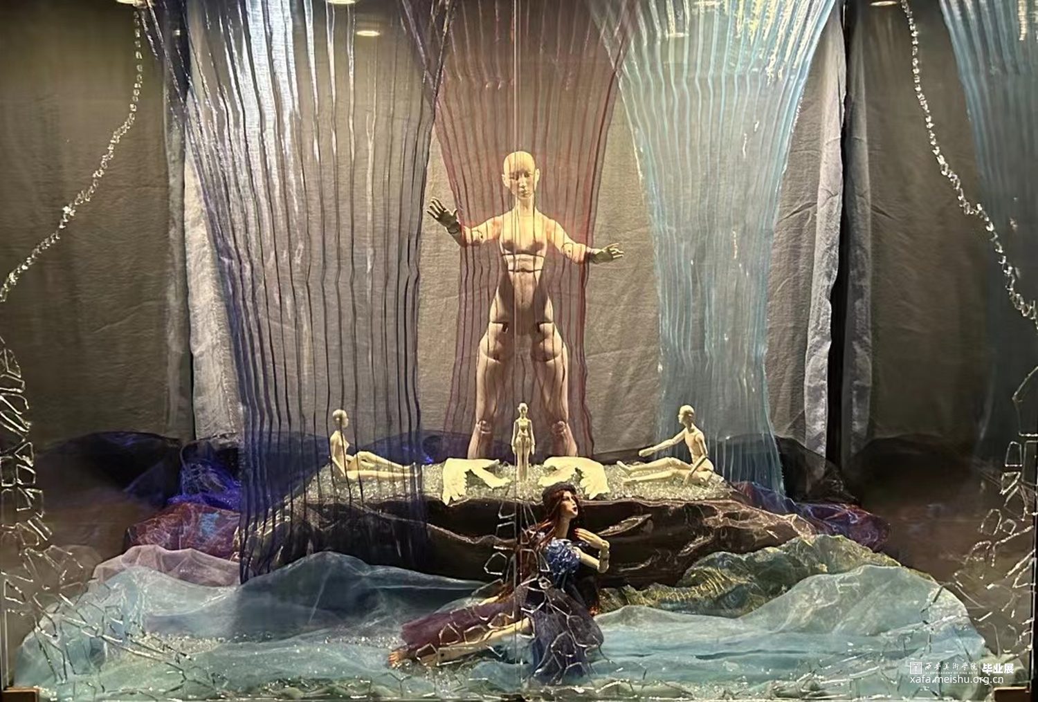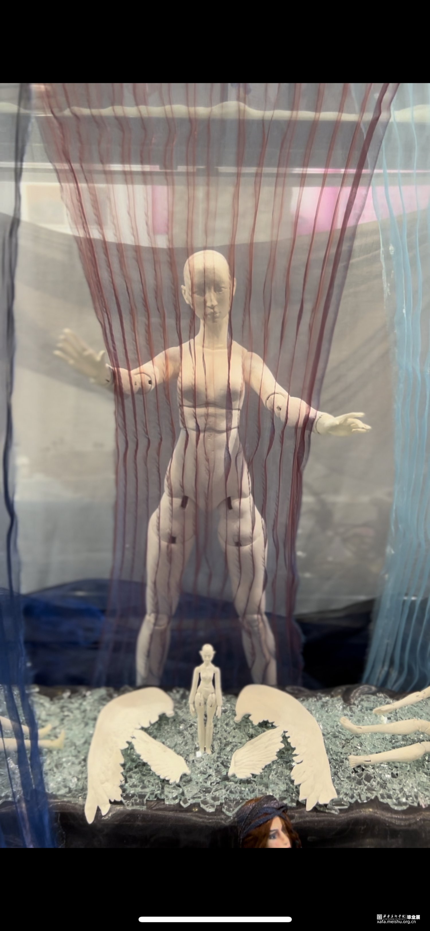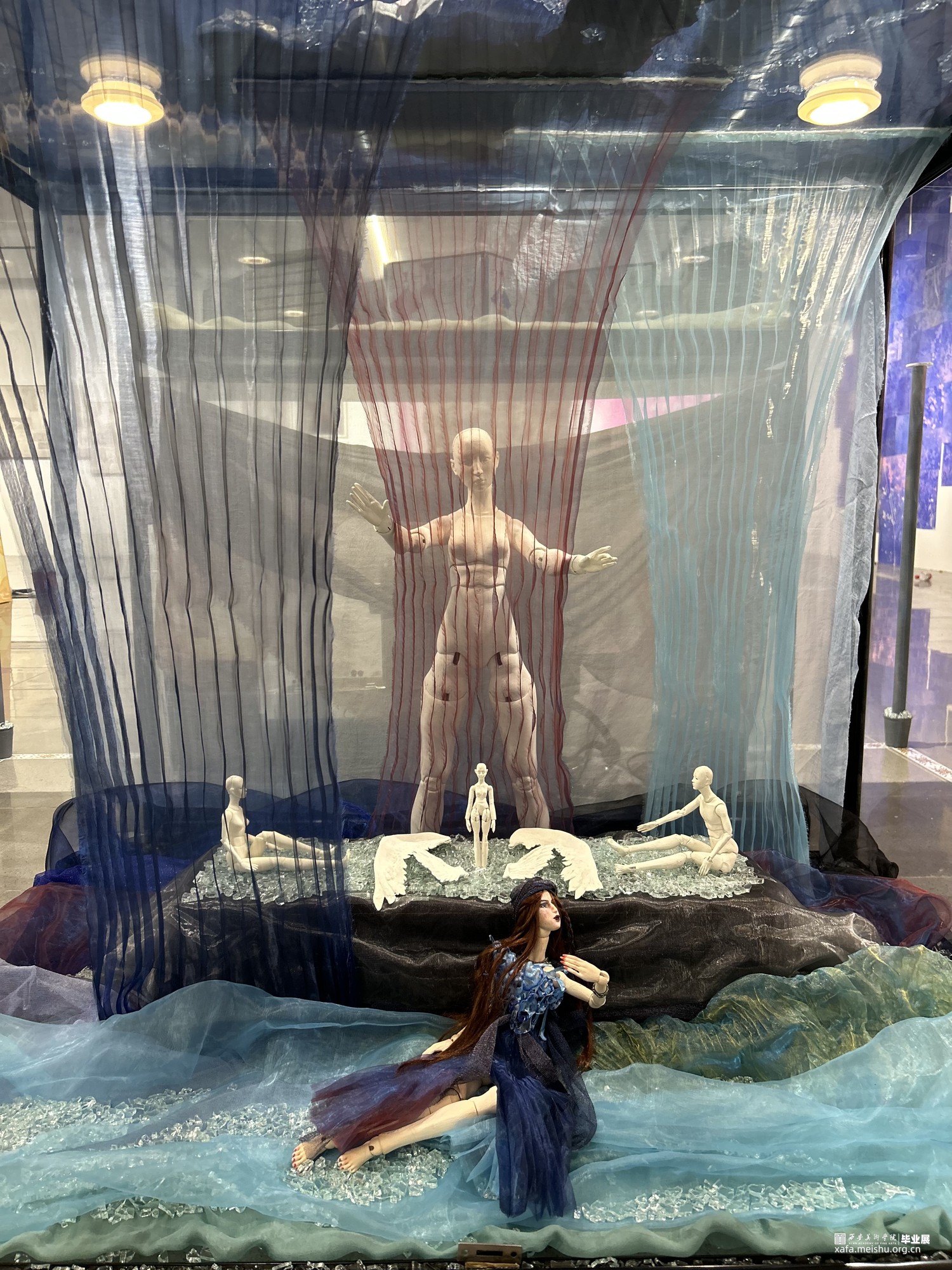 此部分精巧而丰富,所有人偶,服饰,发型,头饰皆由手工制作而成,部分细节小巧却不失艺术性,如同《核舟记》中的核舟,麻雀虽小五脏俱全,如用废旧易拉罐剪裁,雕刻拼接而成的六朝代头饰,其精细程度是工业机械生产所不能代替的,富含工匠精神和作者自身的设计美学;人偶制作也是纯手工从塑造,打磨,喷漆,翻模而成的,其手工温度是建模打印所无法取代的。其中由石塑黏土捏造的球形关节人偶代表未来主义,质朴无修饰的球形关节人偶形象具有返璞归真的意象,与主体丰富华丽的传统文明进行碰撞,产生古今思辨,人类将站在历史巨人的肩膀上展望空白一切皆有可能的未来。