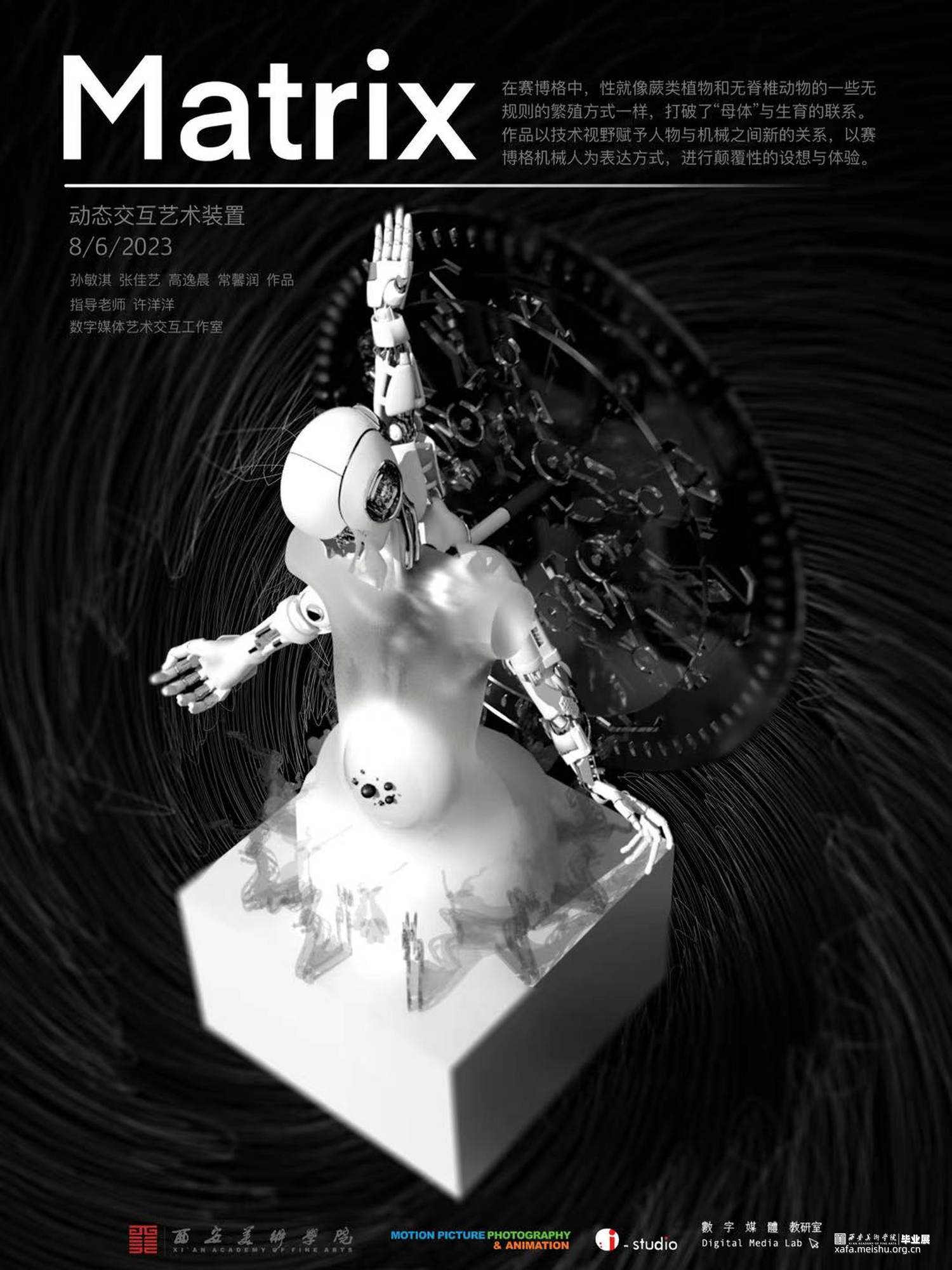 随着社会的发展及女性意识觉醒,让我们意识到女性在当前生物叙 事下地位的不稳定。在生育损耗、社会歧视等多方面约束下,往往使得 女性不得不放弃其个体性。在成为自我与他者的斗争中,性别冲突日益 显现。 唐娜·哈拉维在《赛博格宣言》中提到了赛博格是一种控制论的有机 体,是机械与有机体的混合物。在赛博格中,性就像蕨类植物和无脊椎 动物的一些有趣的无规则的繁殖一样,打破了“母体”与生育的联系。 《Matrix》基于此,以技术视野赋予人、动物、植物与机械之间新 的关系,以赛博格机械