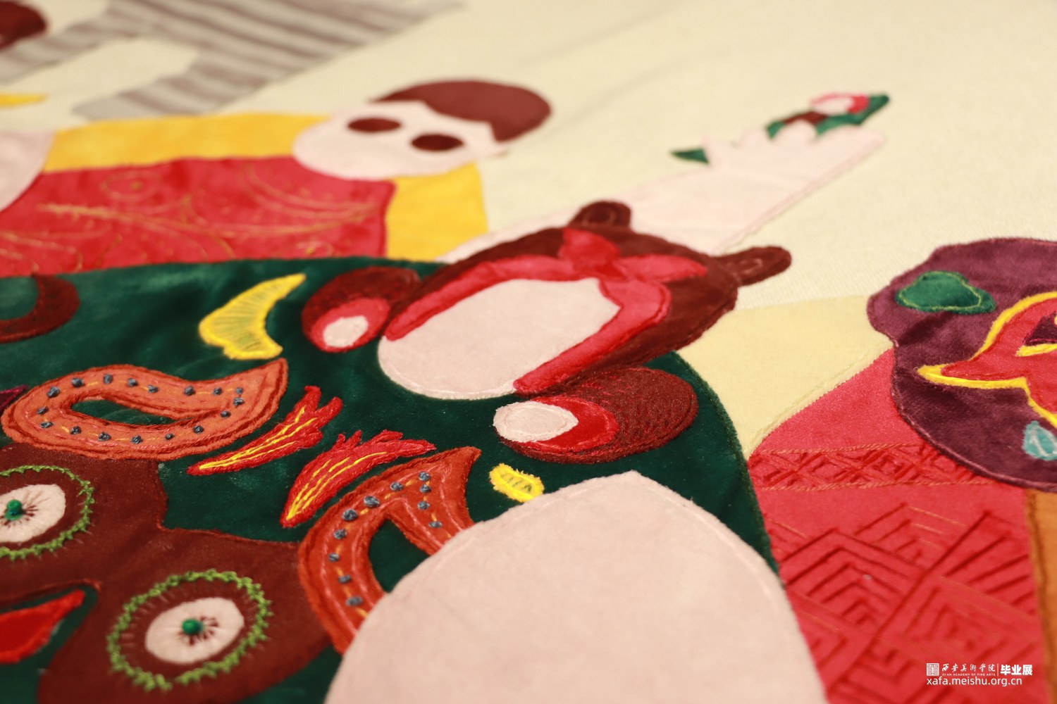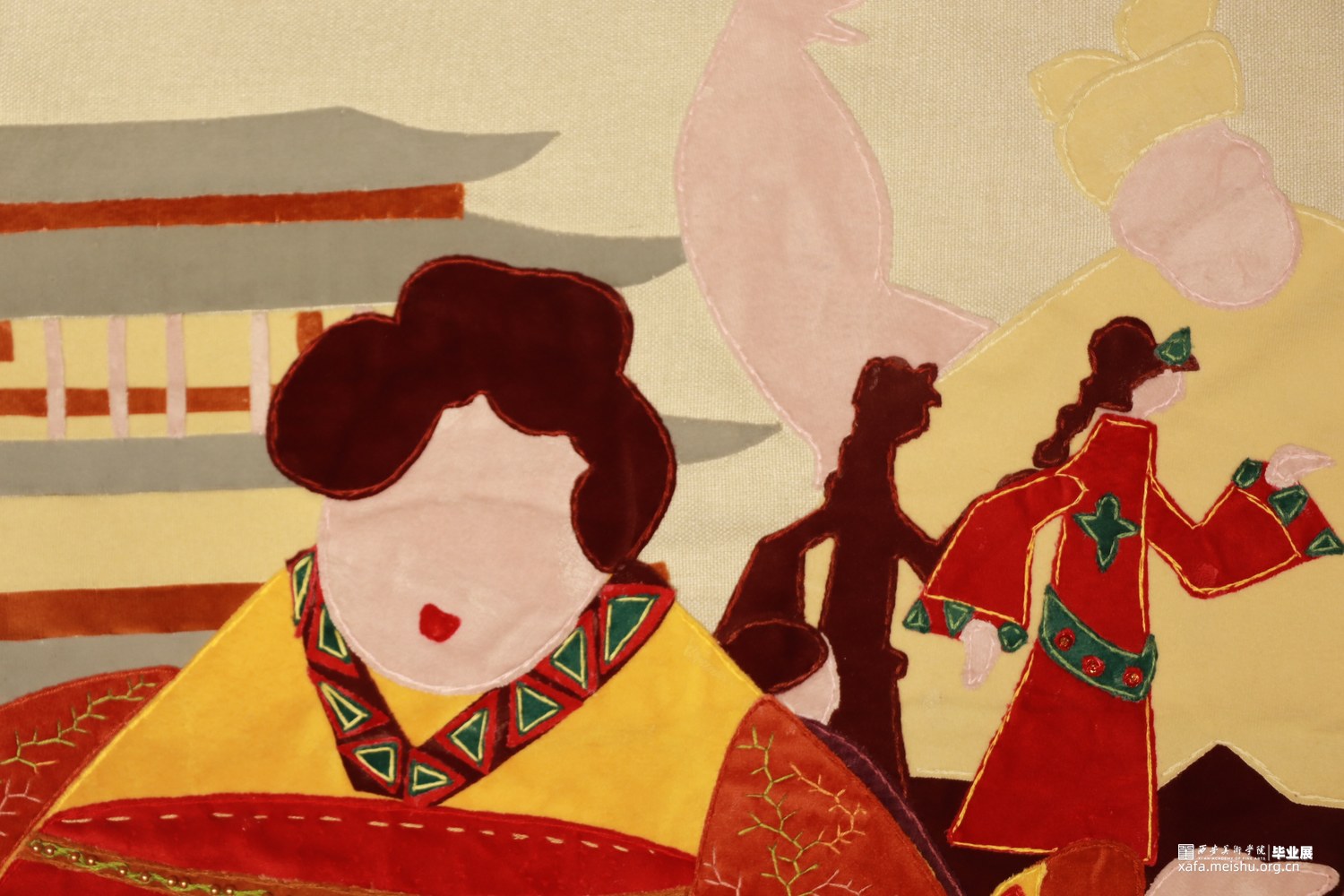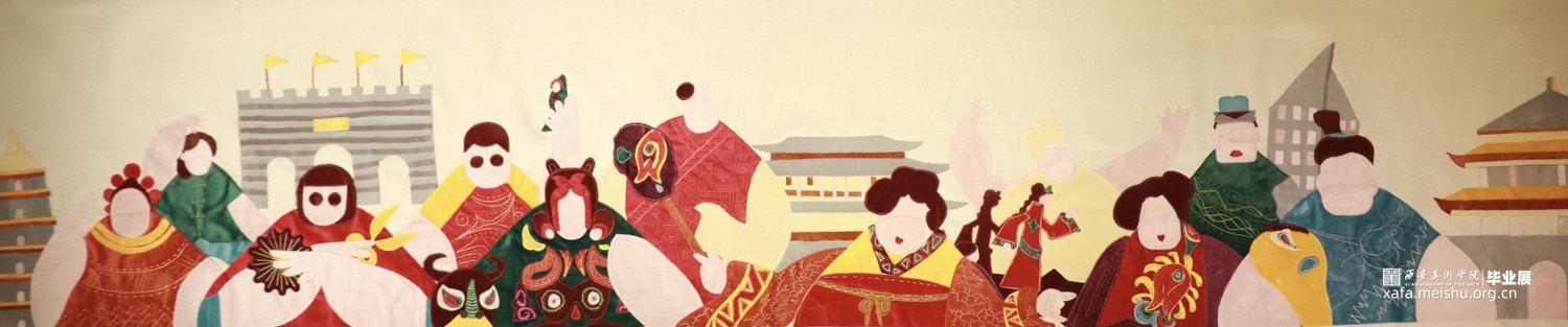 “远赴人间惊鸿宴,一睹大唐盛世颜”。大唐是我国历史上一个繁荣的辉煌时期,大唐的美无与伦比。唐人、唐诗、唐韵,光芒万丈。唐城、唐街、唐塔,千古流芳。作品采用大写意手法,将非遗人物与大唐建筑相结合,艺术趣味与丰腴之美相结合,古老民间艺术与现代装饰艺术相结合,梦幻般还原那个唯美的大唐。