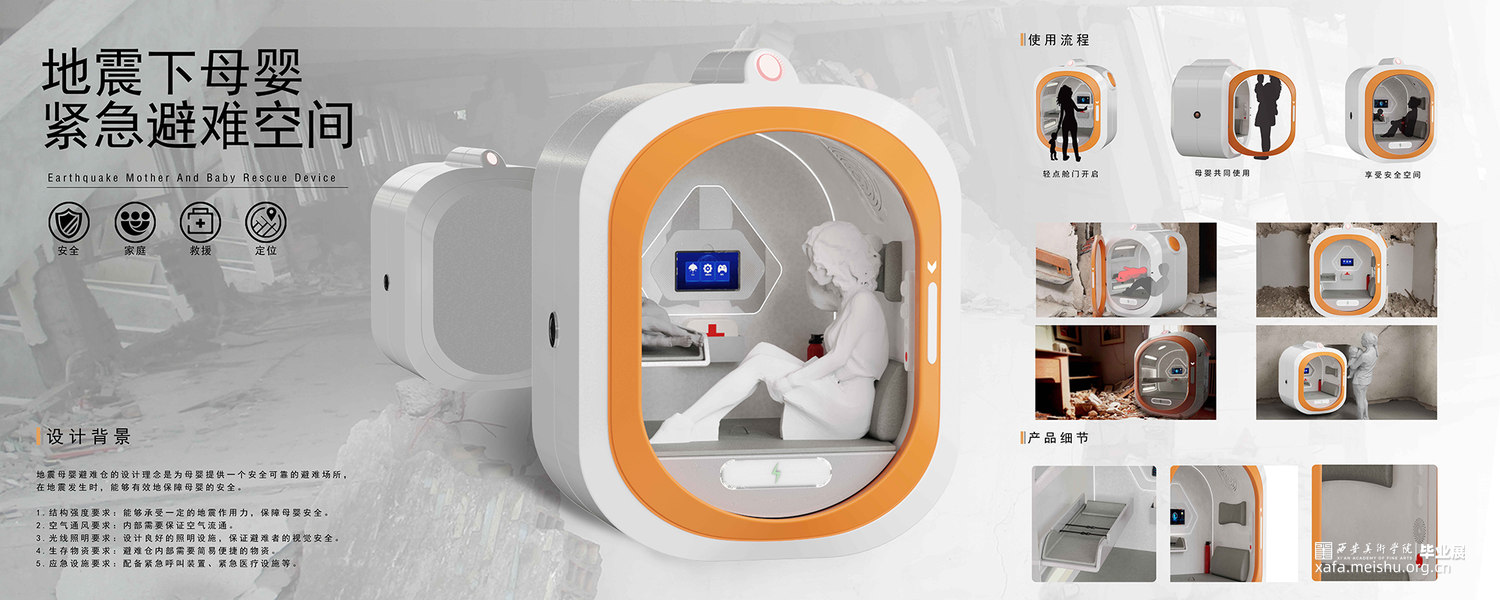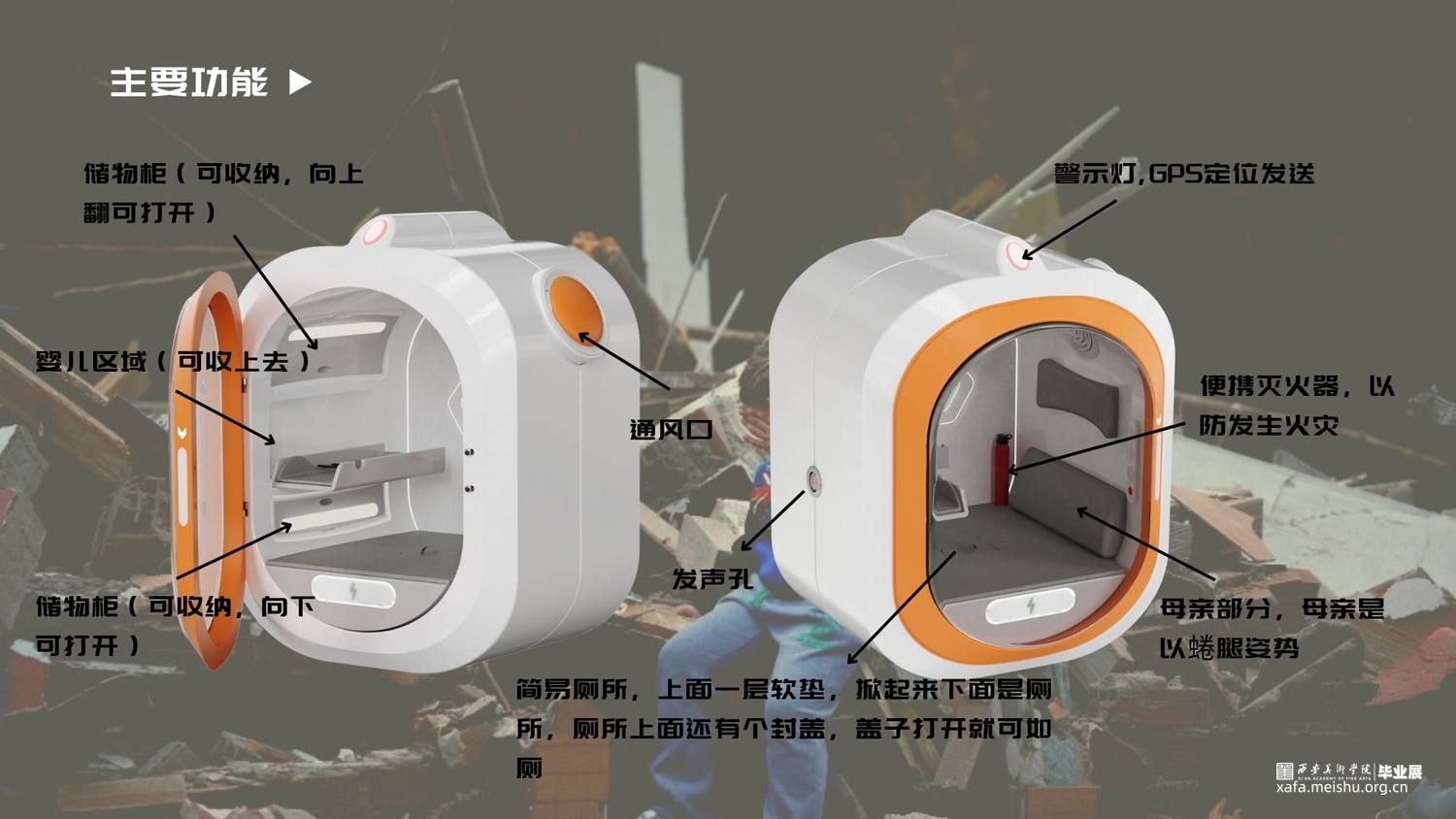 本设计基于母婴在地震中的逃生需求,配备了可躲避碎石保证母婴人身安全