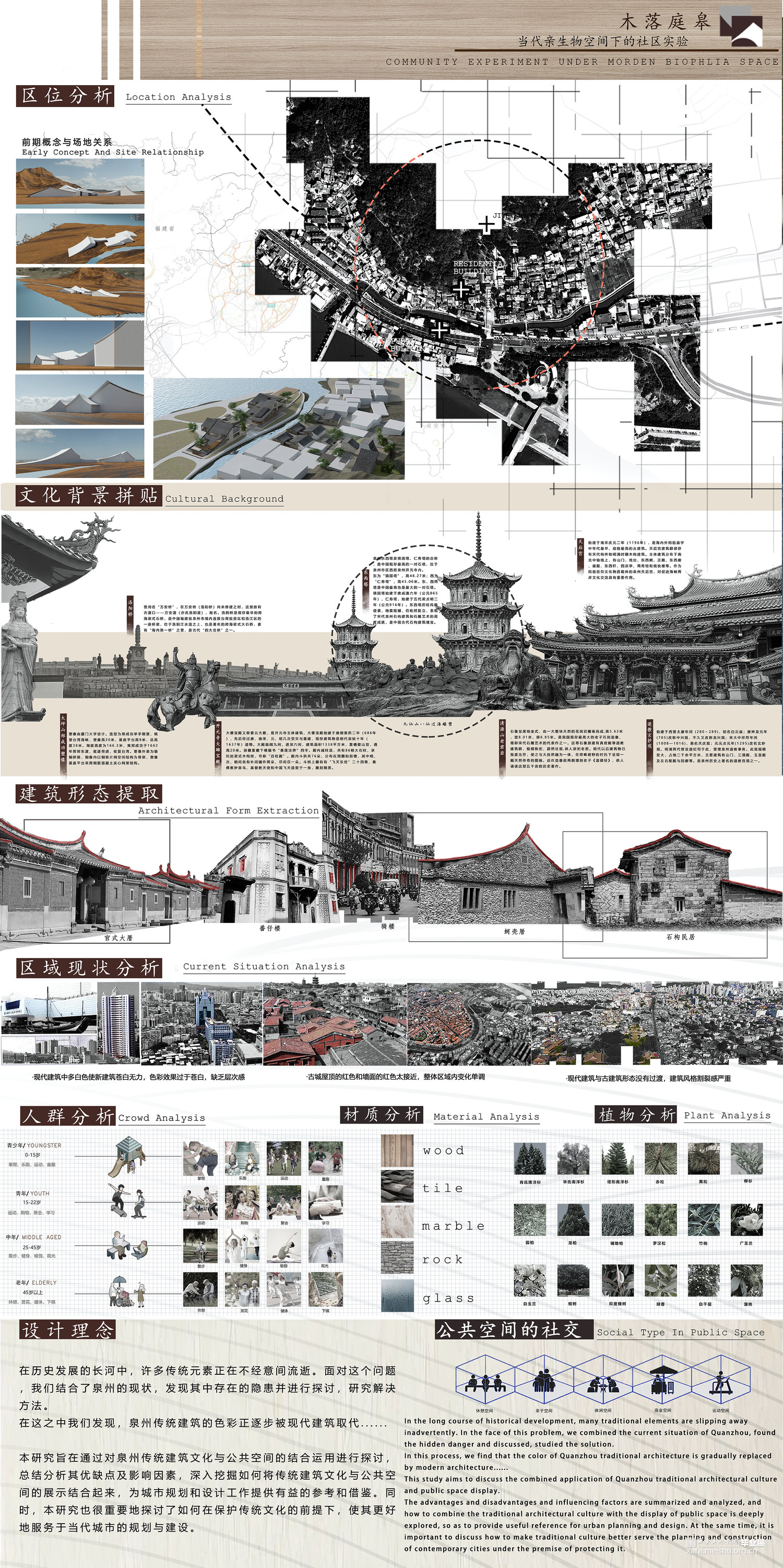 因此,研究如何保护和传承泉州传统建筑风貌,尤其是如何将它转译和应用到现代的设计当中,变得非常必要和紧迫。同时,利用亲生物材料的空间应用可以有效地解决传统建筑在质感、视觉等方面的问题,弥补了传统建筑保护和传承上的不足,有利于推动泉州传统建筑风貌在现代设计中的运用。通过研究泉州传统建筑风貌转译与亲生物材料的空间应用,有助于为传统建筑的保护和传承提供新的思路和方法,对于城市可持续发展和文化遗产保护具有重要的意义。