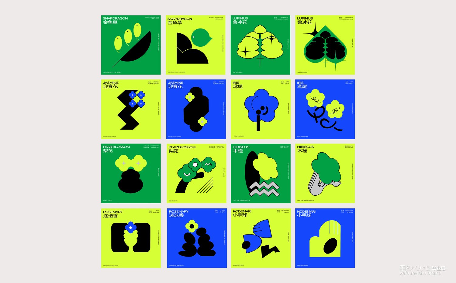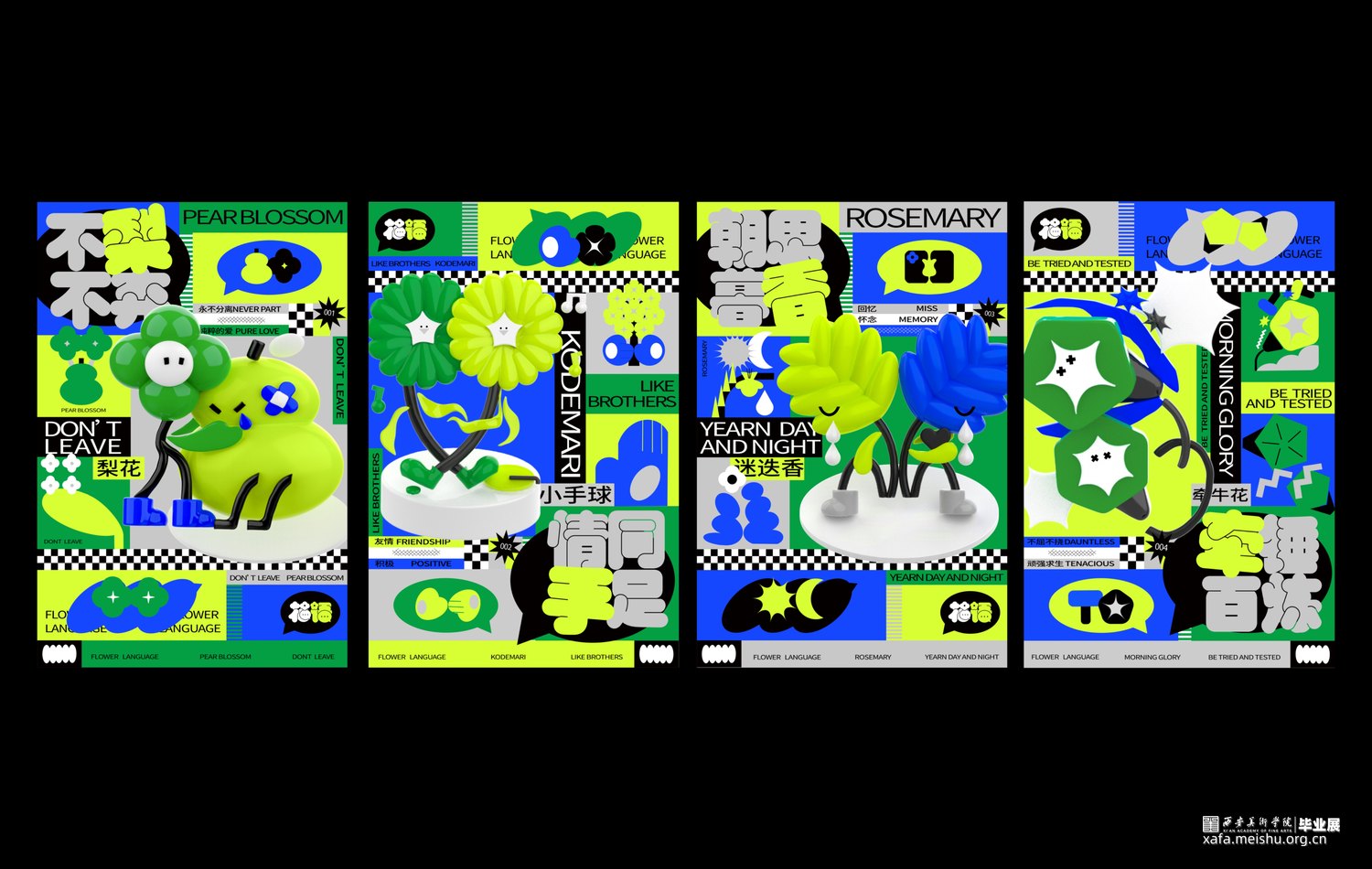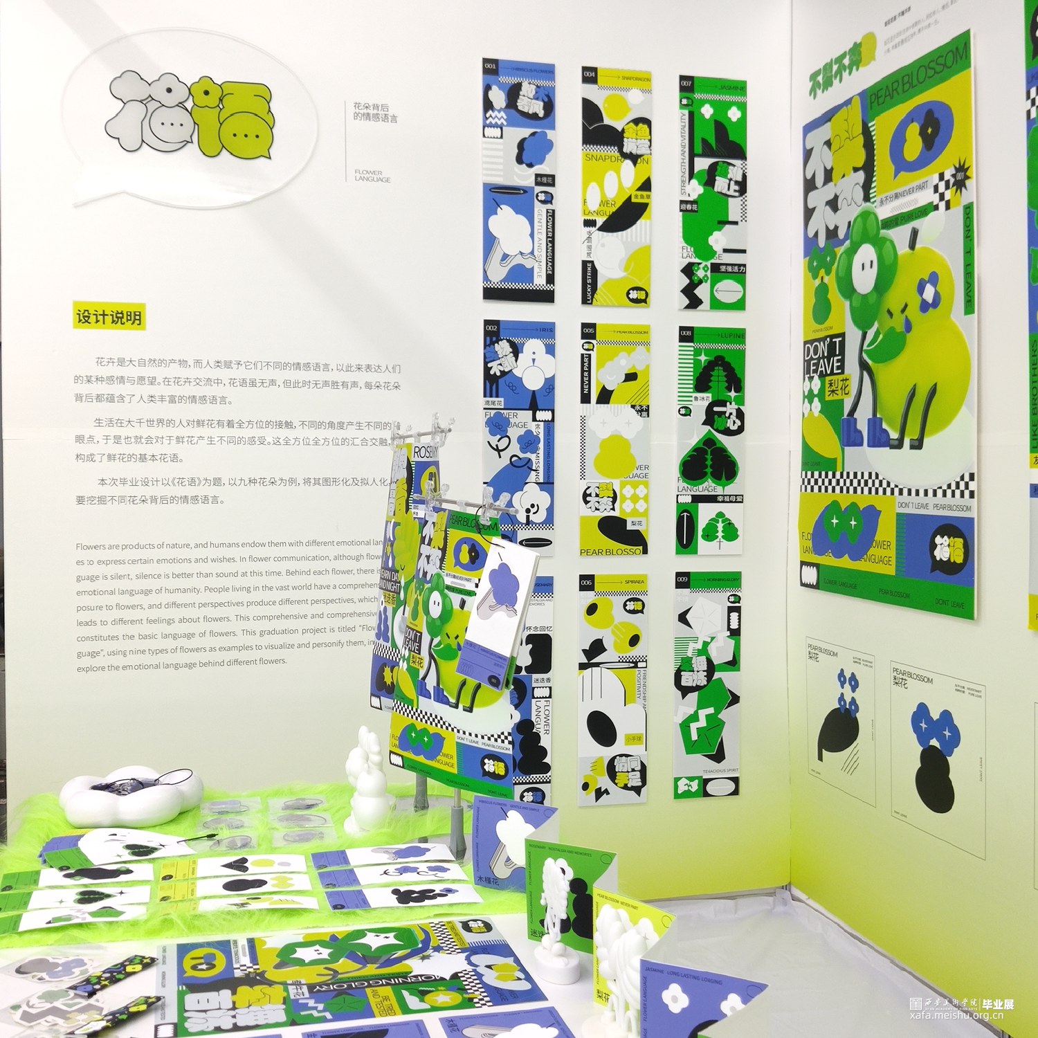 花卉是大自然的产物,而人类赋予它们不同的情感语言,以此来表达人们的某种感情与愿望。在花卉交流中,花语虽无声,但此时无声胜有声,每朵花朵背后都蕴含了人类丰富的情感语言。本次毕业设计以《花语》为题,以九种花朵为例,将其图形化及拟人化,挖掘不同花朵背后的情感语言。